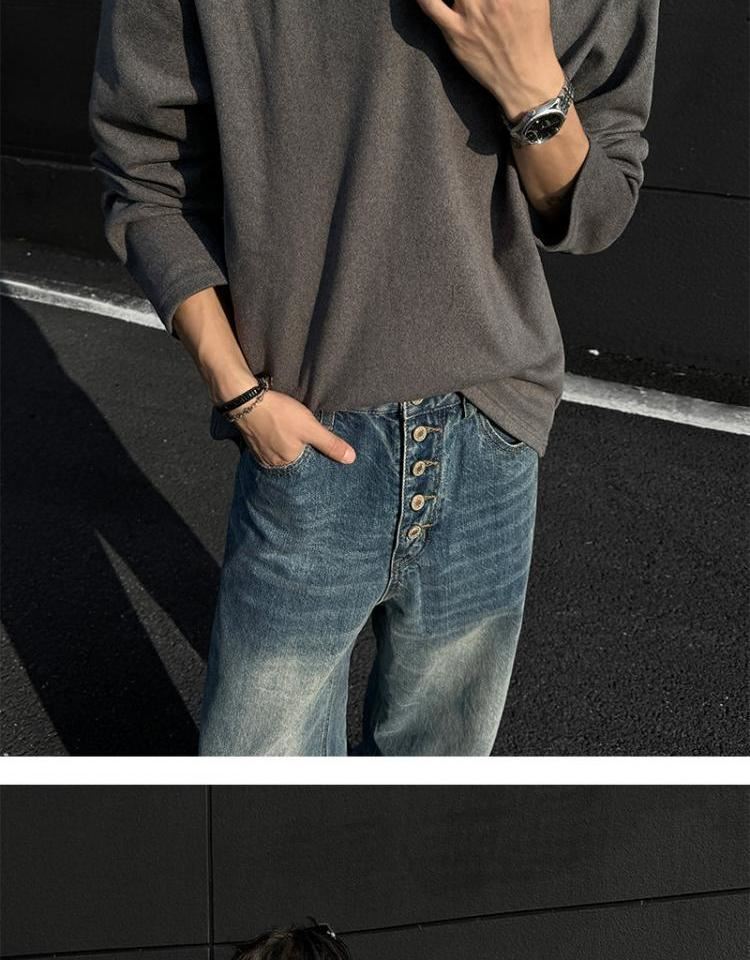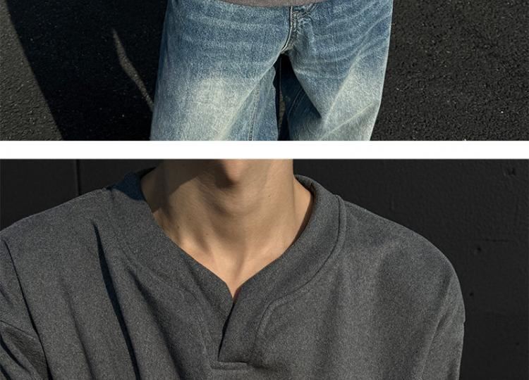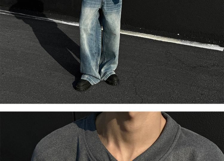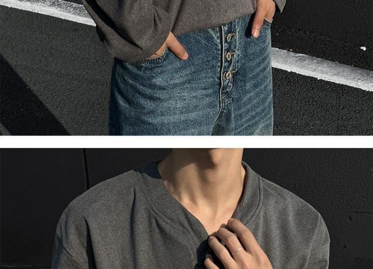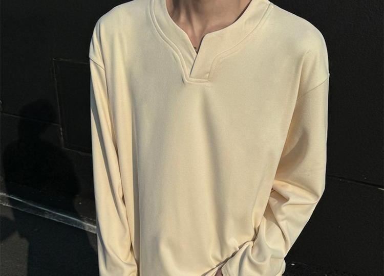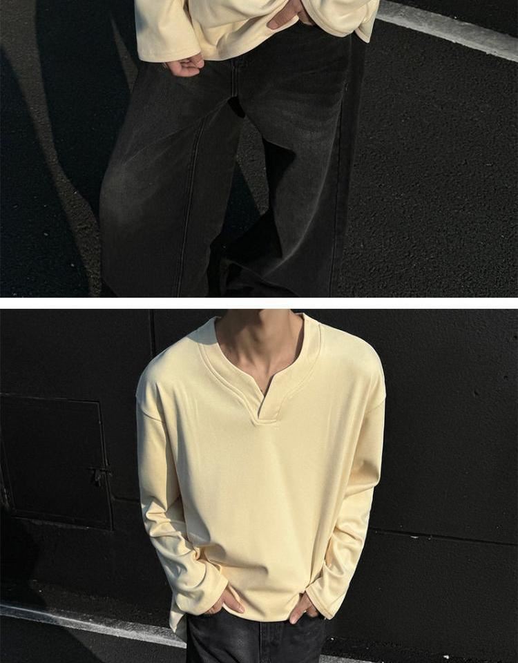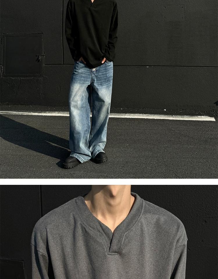 독일 벨벳 블랙 긴팔 티셔츠 남성용 가을 및 겨울 미국 무거운 V 넥 스웨터 클렌핏 Hoodless 내베이스 셔츠스토어 가기