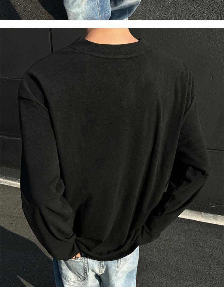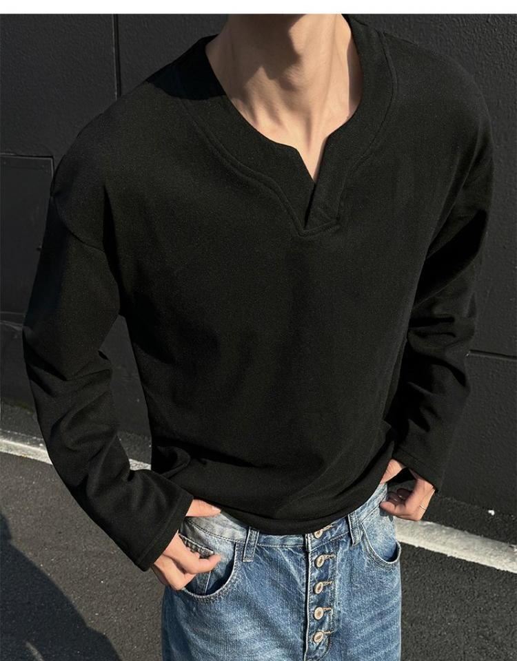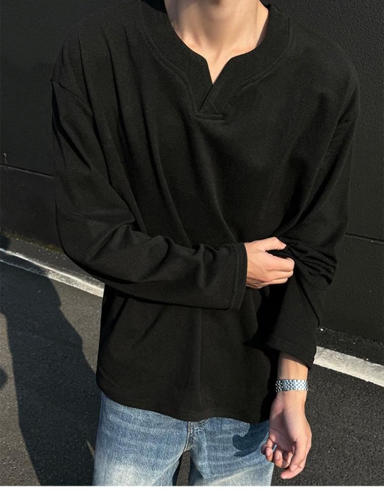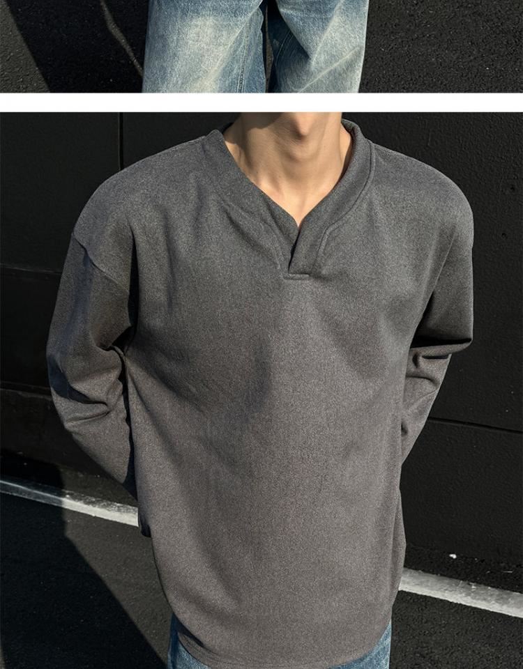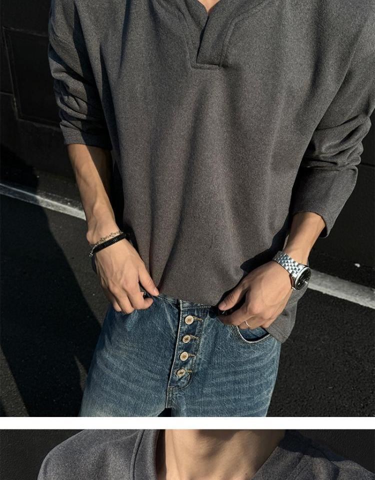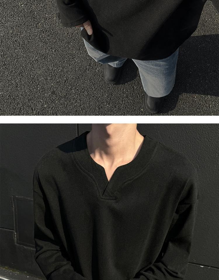 독일 벨벳 블랙 긴팔 티셔츠 남성용 가을 및 겨울 미국 무거운 V 넥 스웨터 클렌핏 Hoodless 내베이스 셔츠