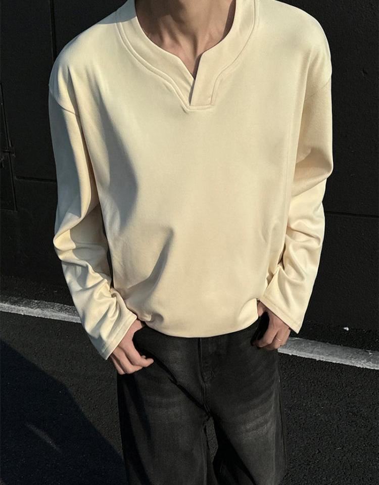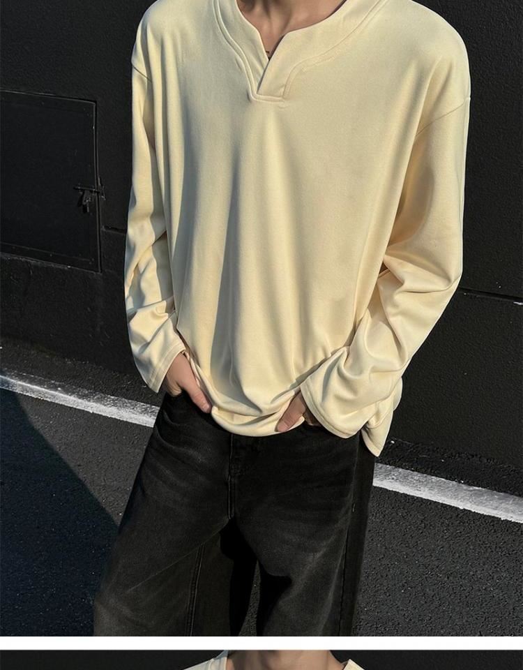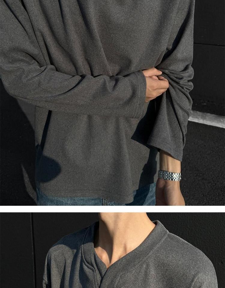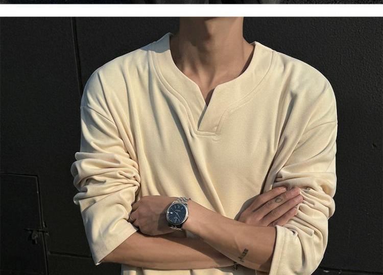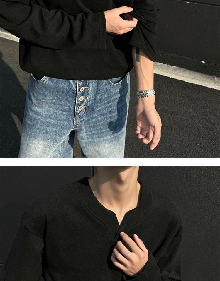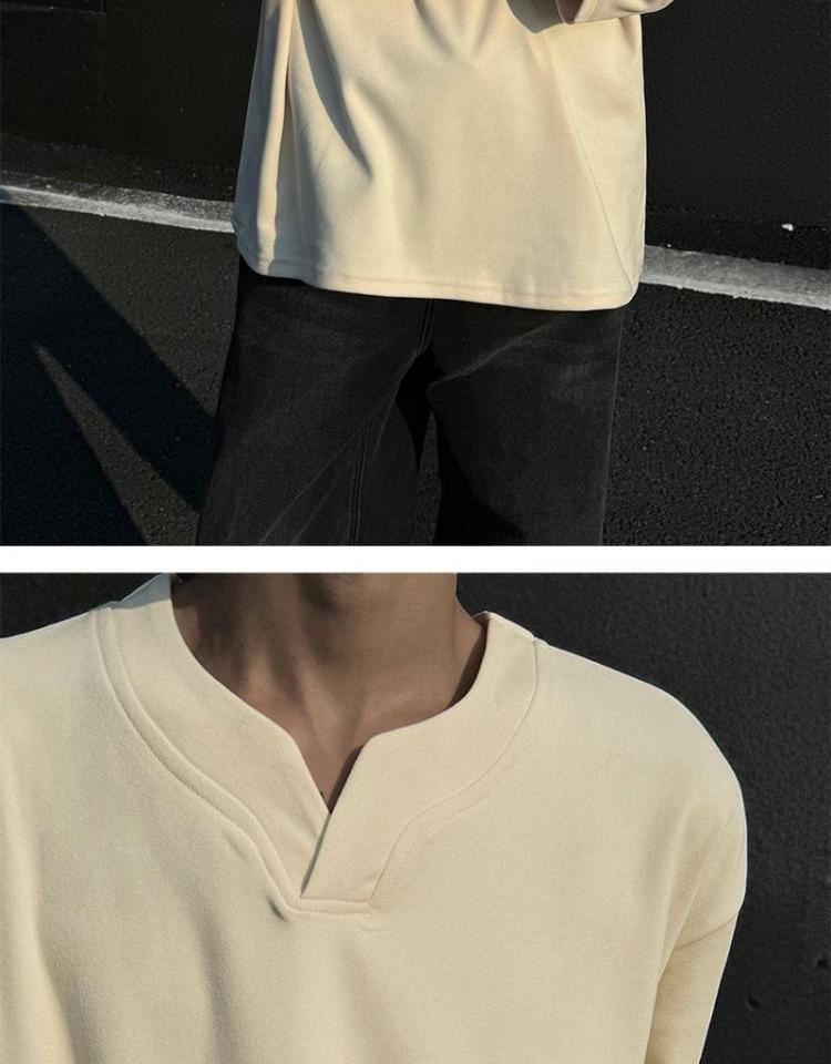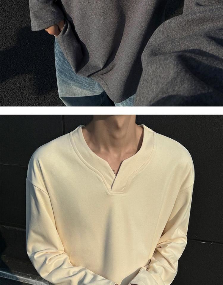 독일 벨벳 블랙 긴팔 티셔츠 남성용 가을 및 겨울 미국 무거운 V 넥 스웨터 클렌핏 Hoodless 내베이스 셔츠