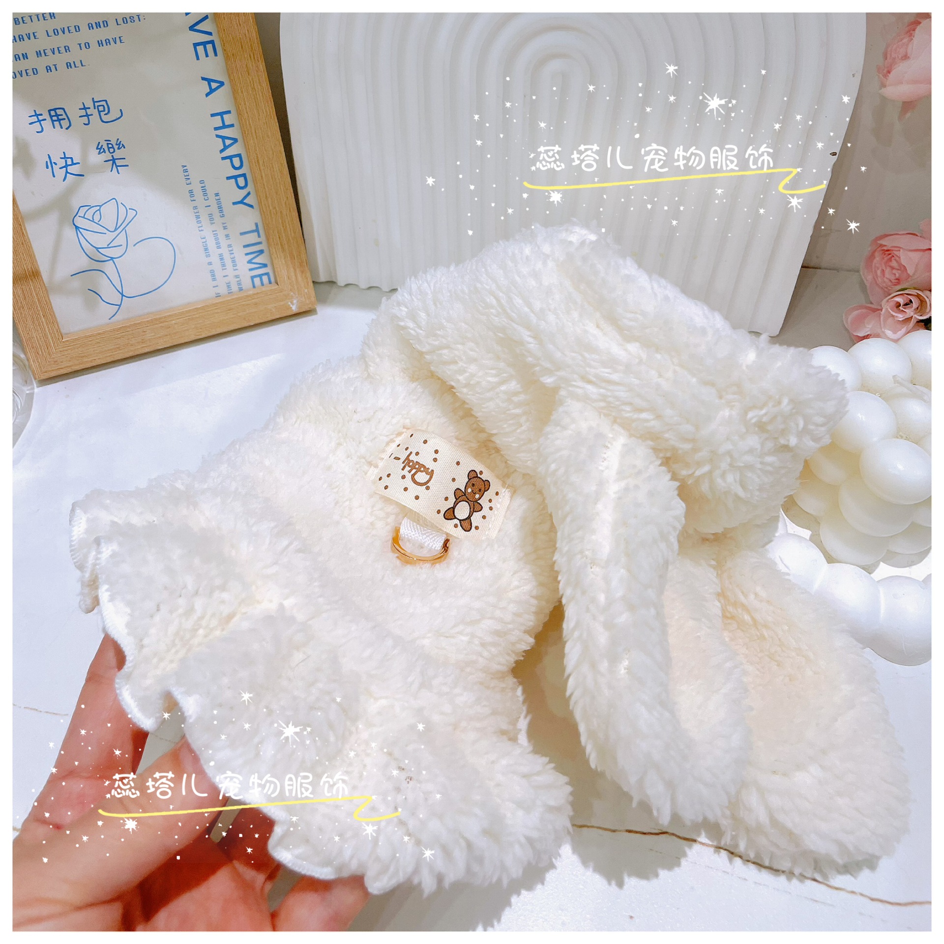 강아지 겨울 옷 두꺼운 더블 레이어 벨벳 귀여운 토끼 귀 후드 코튼 패딩 코트 바디 요크셔 마르 시스스토어 가기