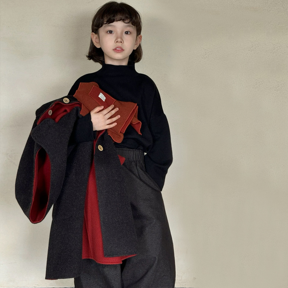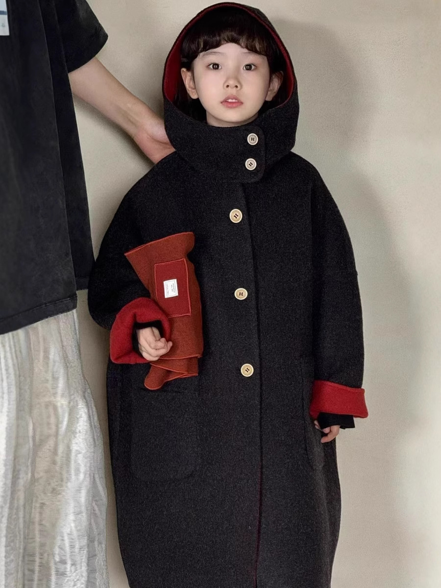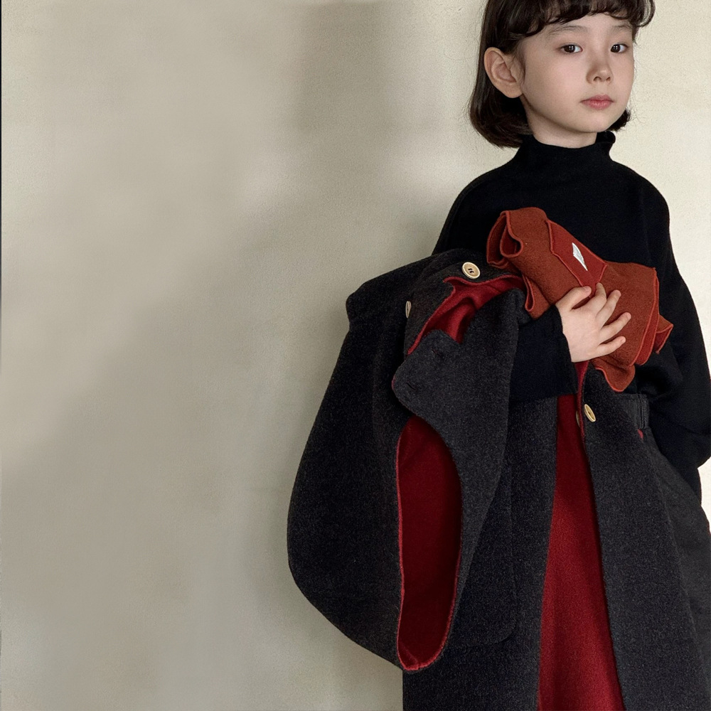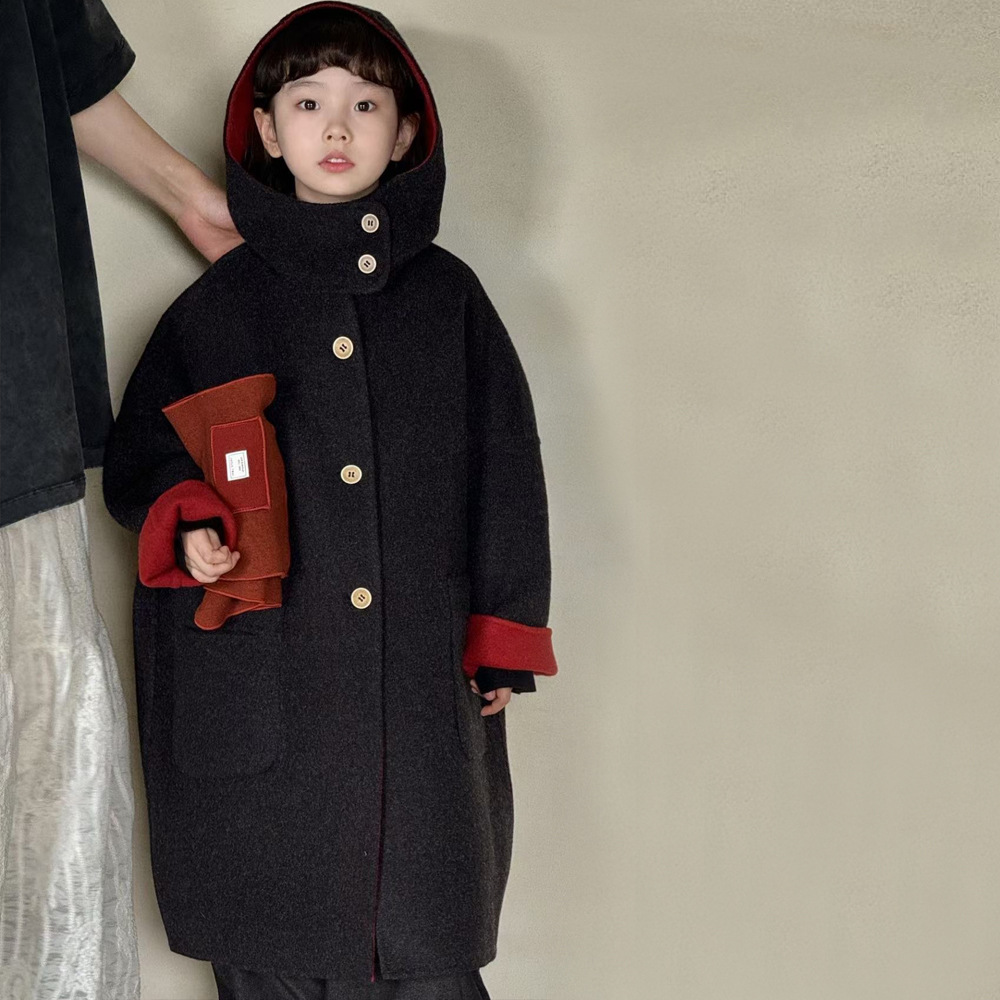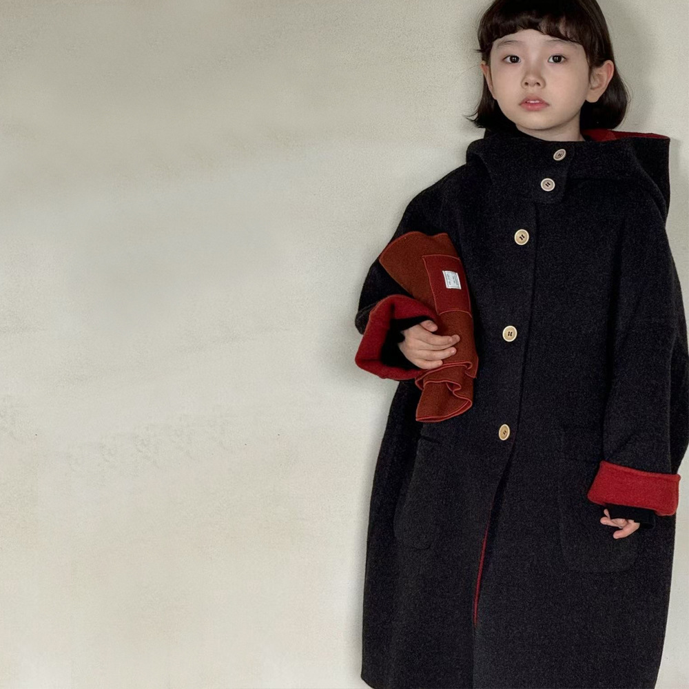 소녀 코트 양면 모직 코트 가을 및 겨울 어린이 양면 중장기 겨울 코트 중대형 어린이 울 블렌드 탑