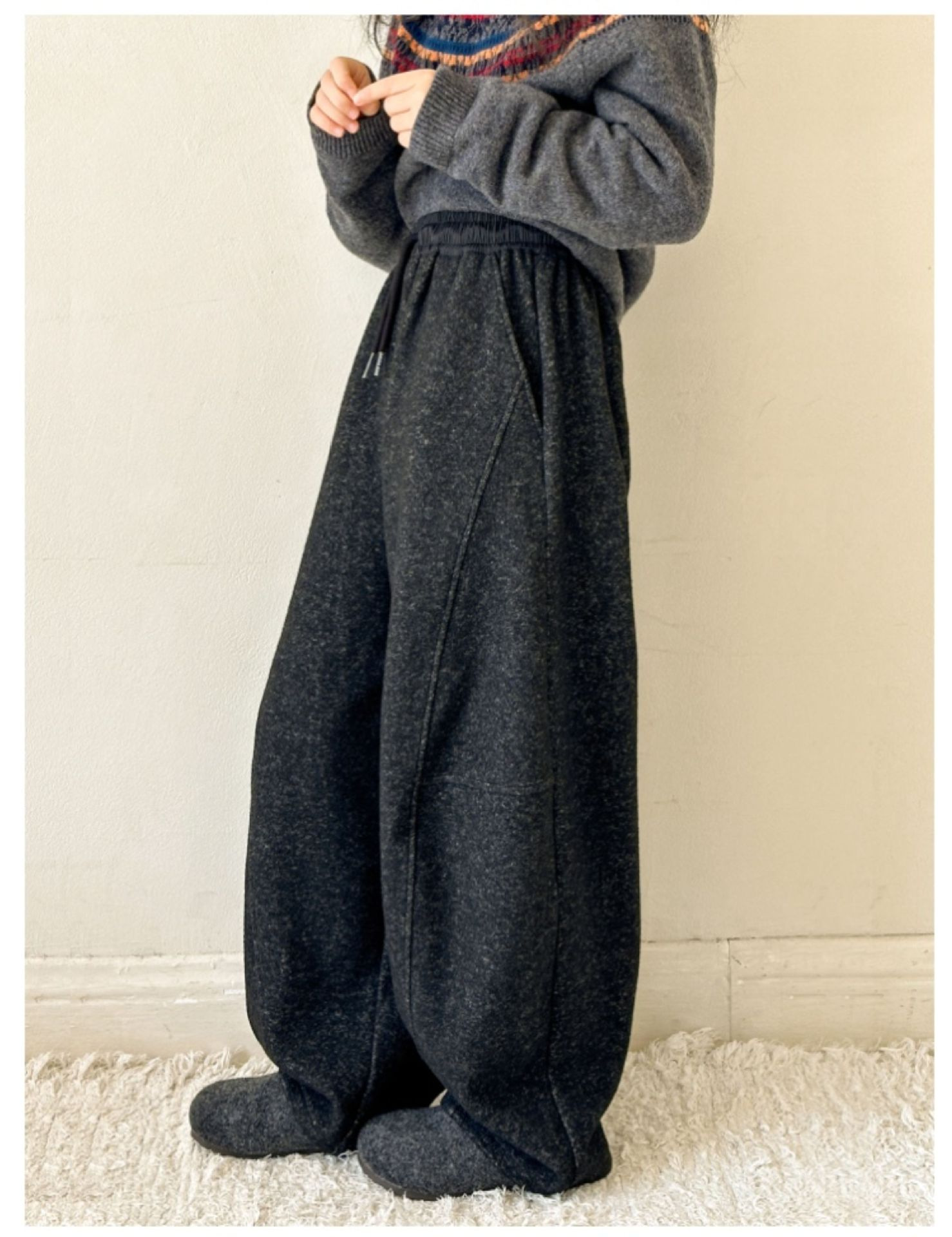 • 다크 그레이 원피스 플리스 팬츠