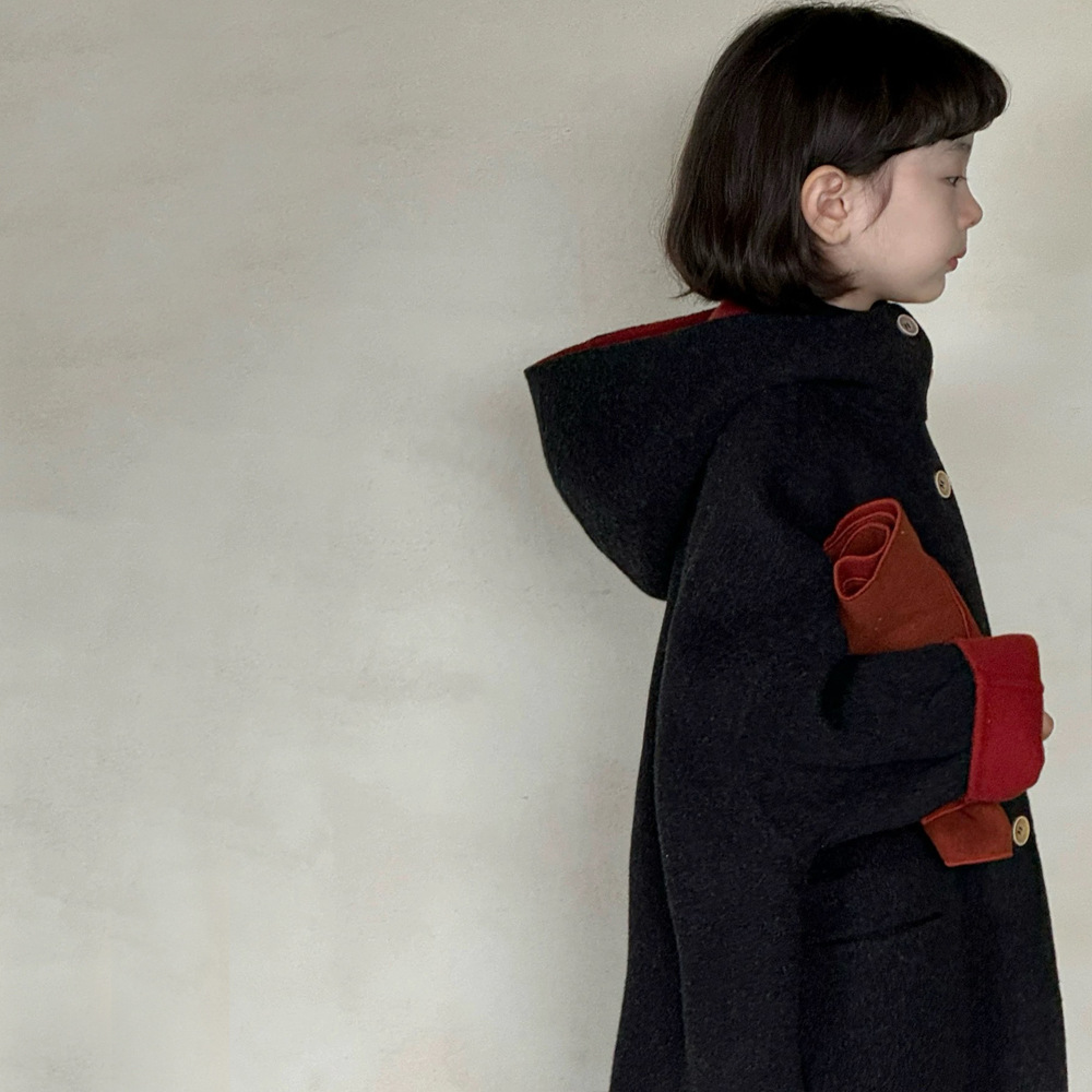 소녀 코트 양면 모직 코트 가을 및 겨울 어린이 양면 중장기 겨울 코트 중대형 어린이 울 블렌드 탑스토어 가기