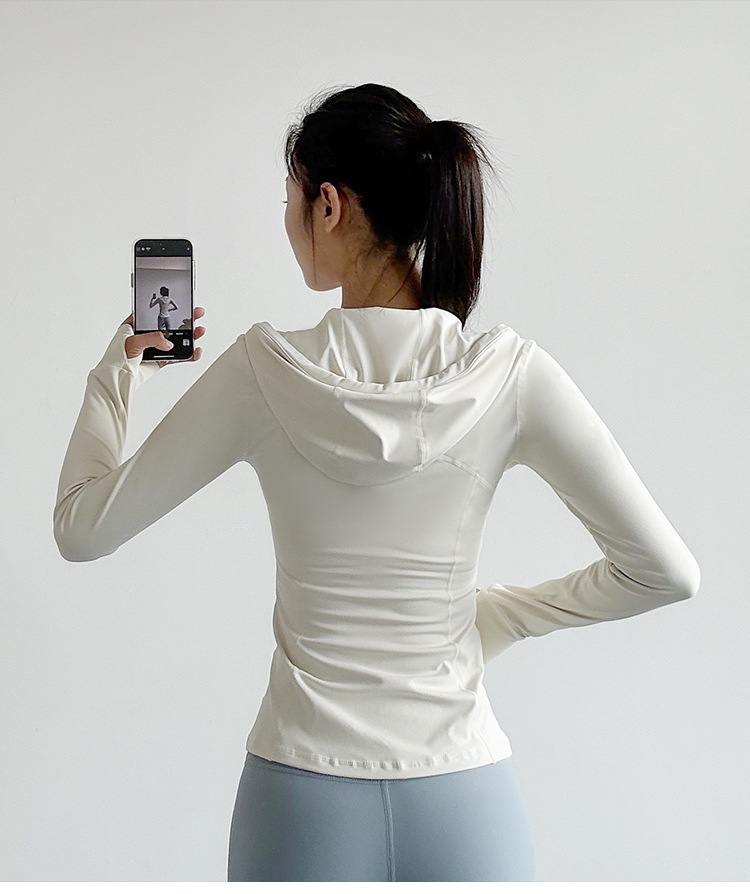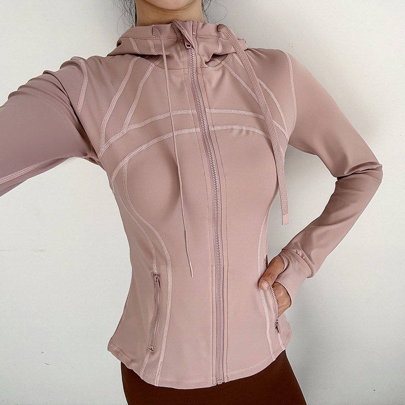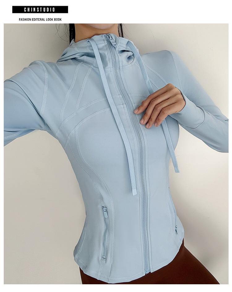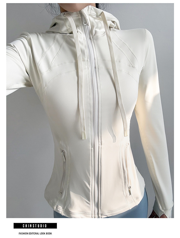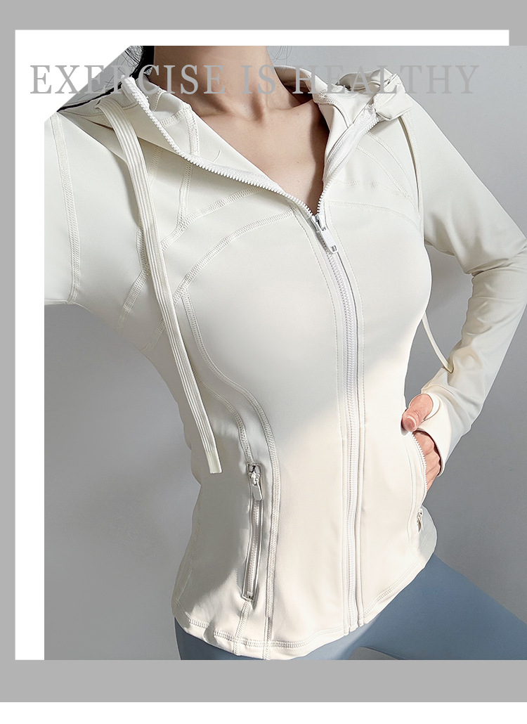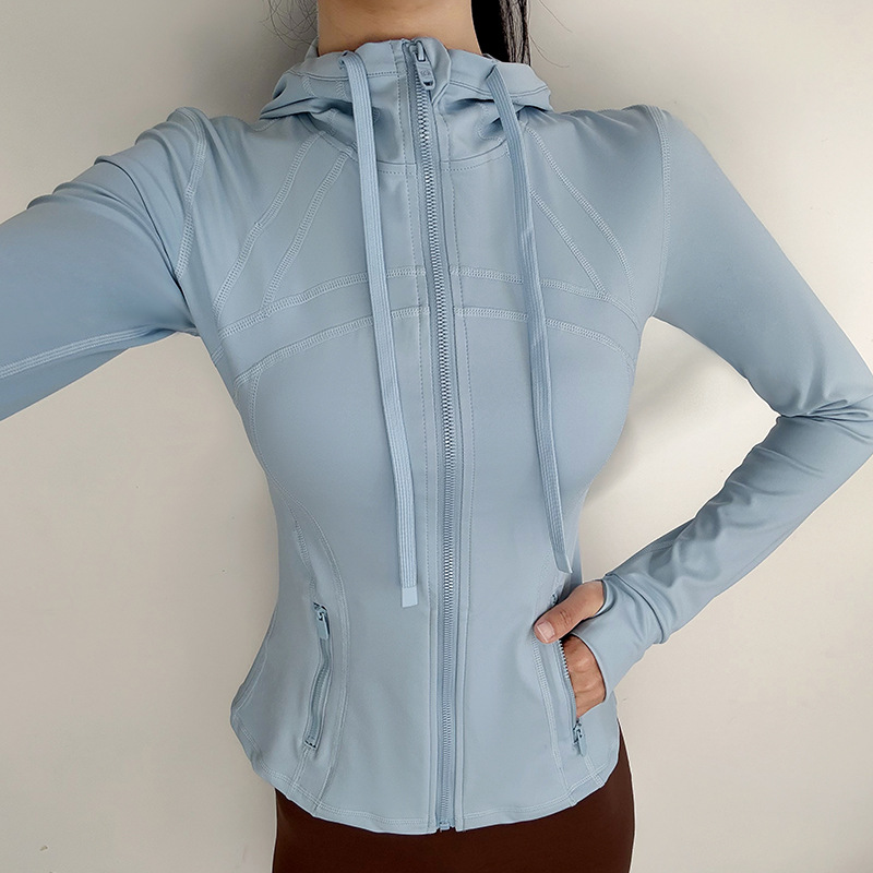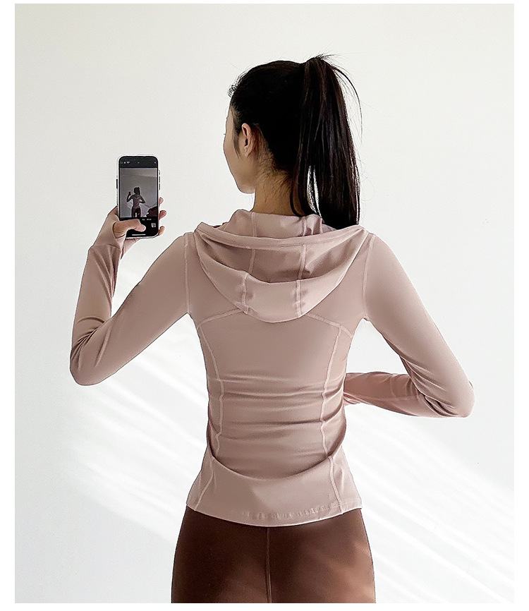 슬림핏 후드 스포츠 재킷 여성의 가을과 겨울 새로운 스트레치 요가 세트 긴 소매 퀵 드라이 피트니스 러닝 트레이닝 탑스토어 가기