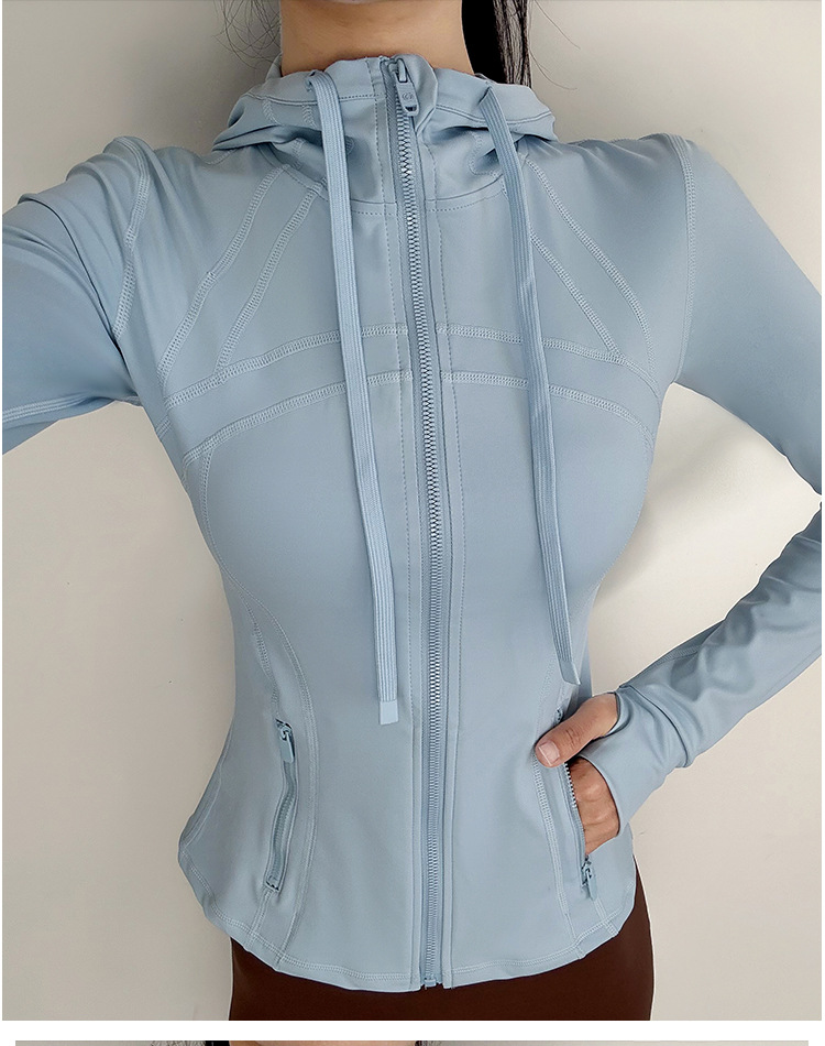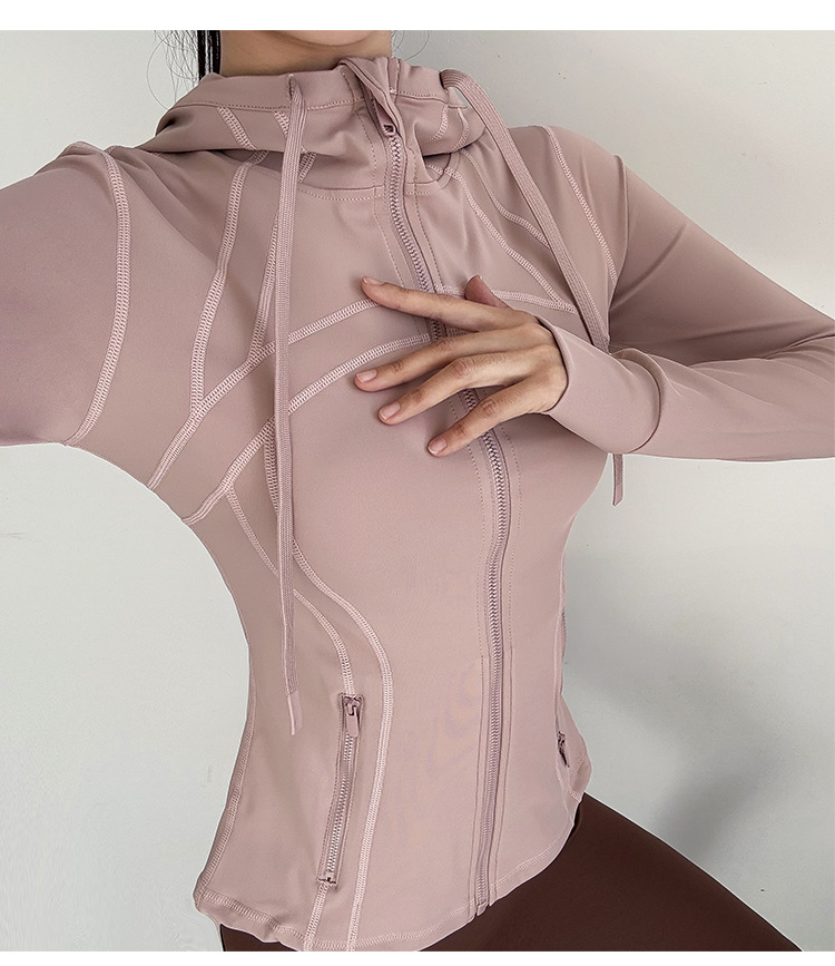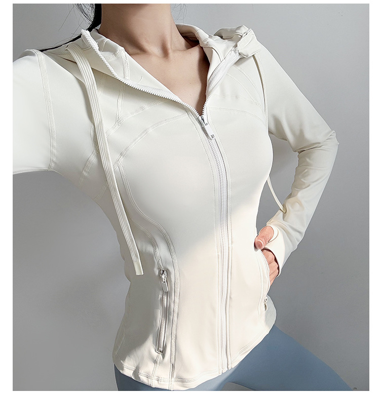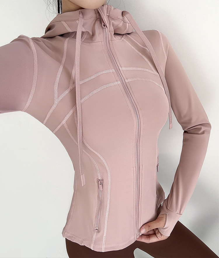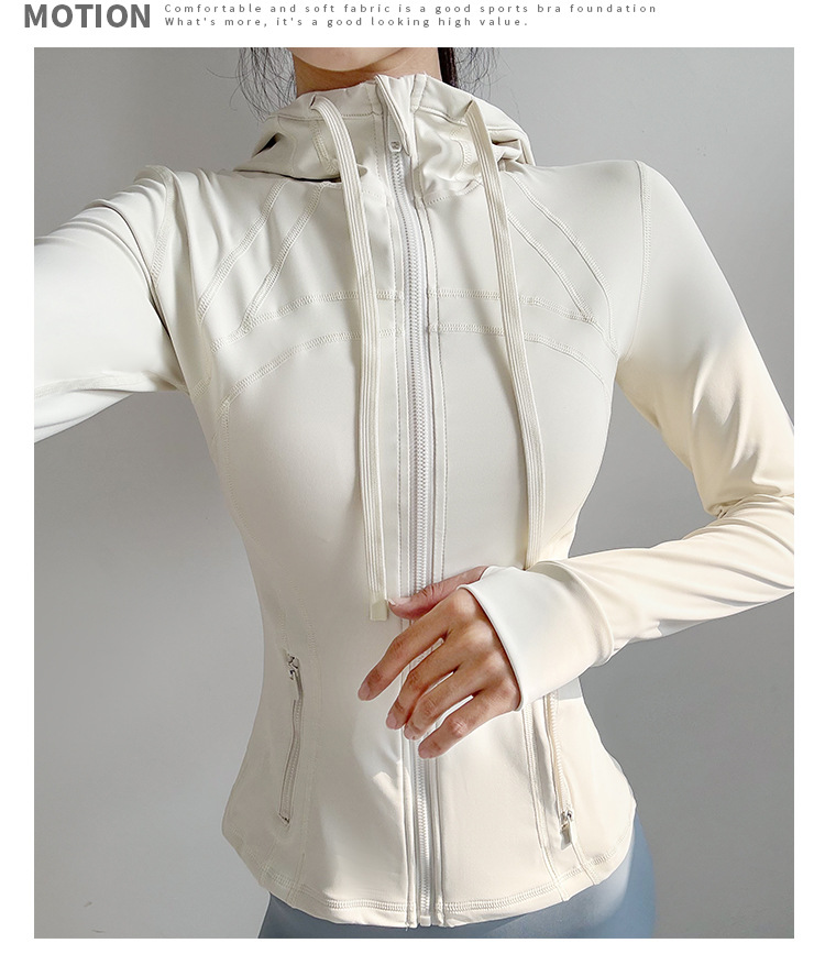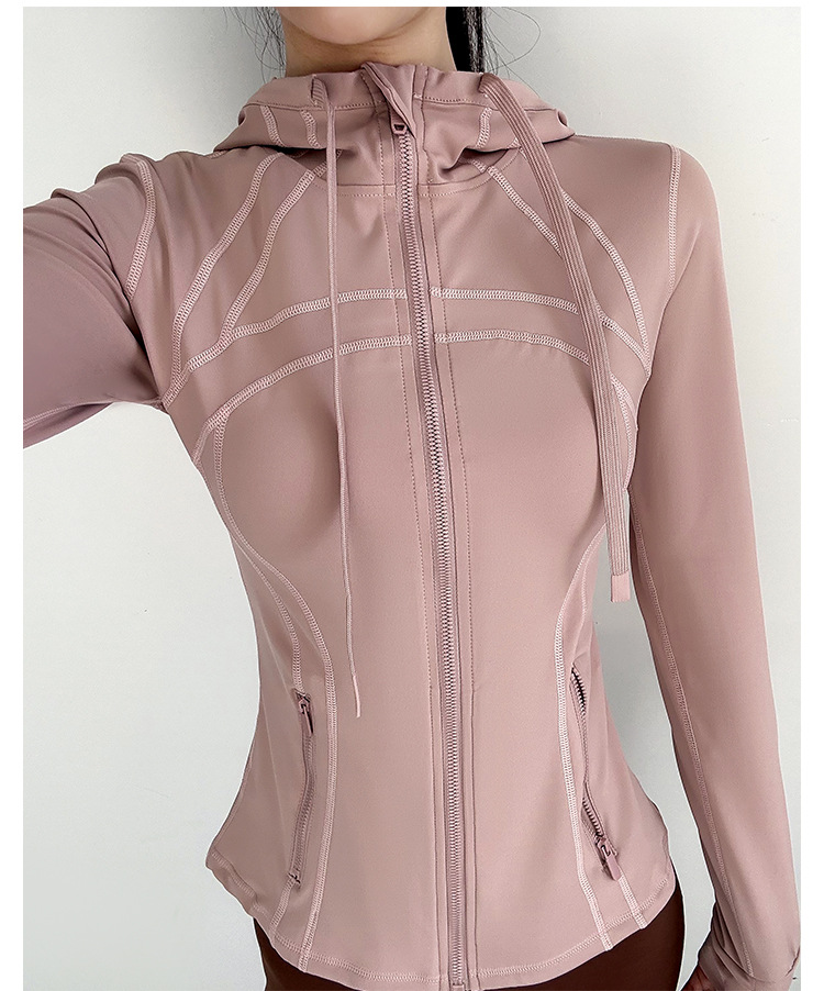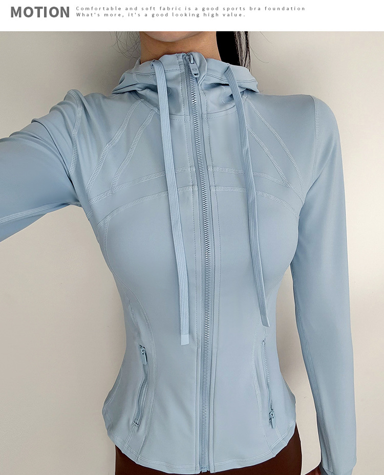 슬림핏 후드 스포츠 재킷 여성의 가을과 겨울 새로운 스트레치 요가 세트 긴 소매 퀵 드라이 피트니스 러닝 트레이닝 탑스토어 가기