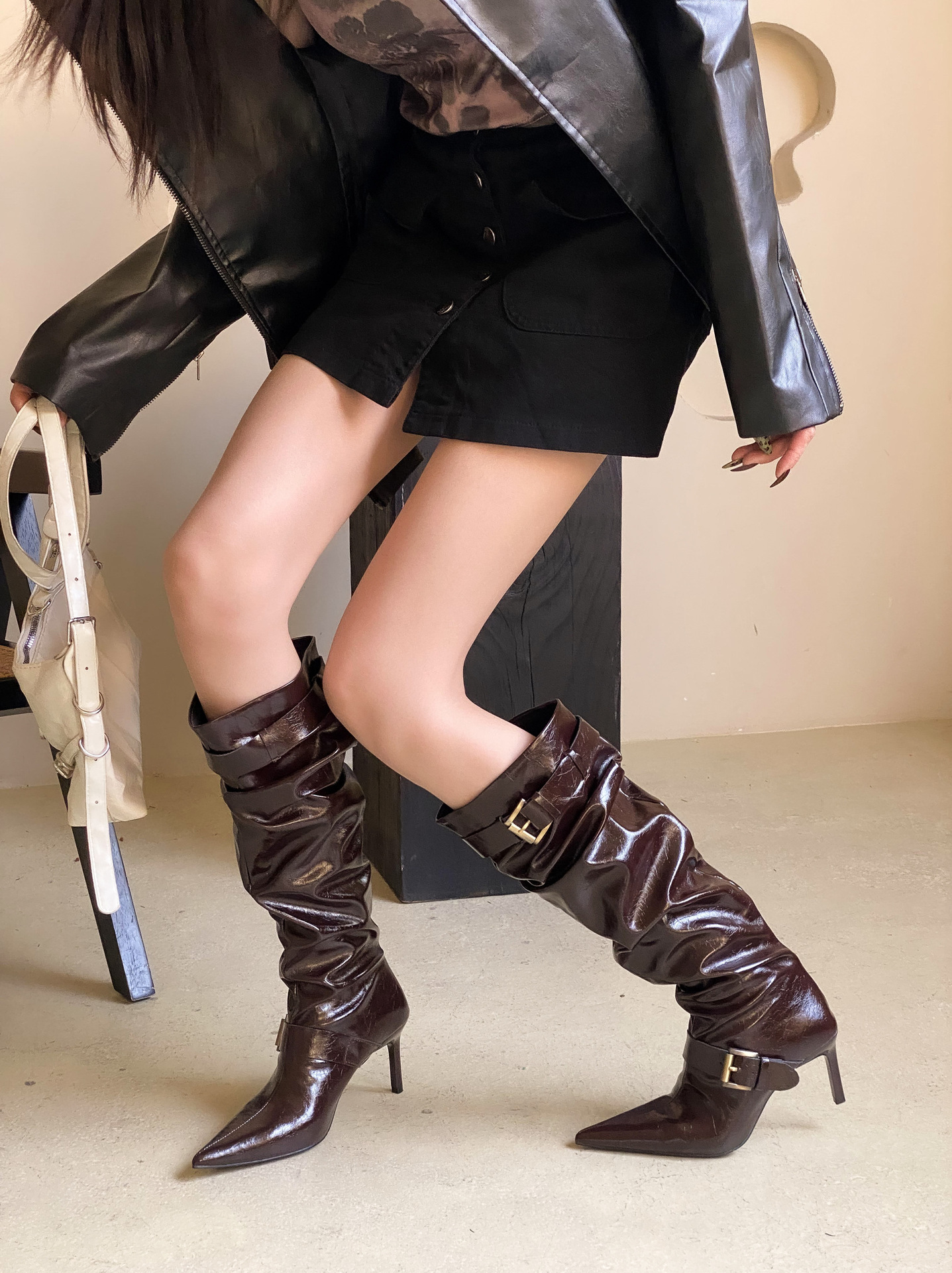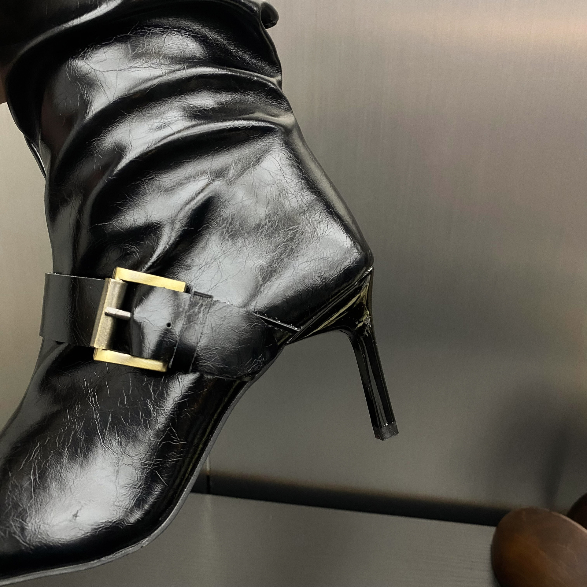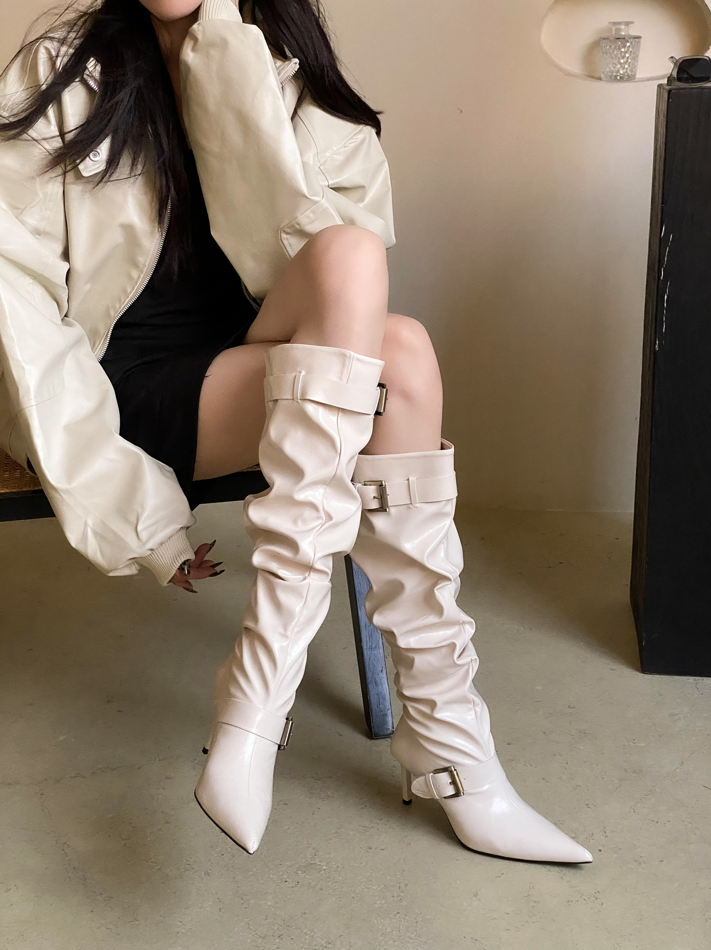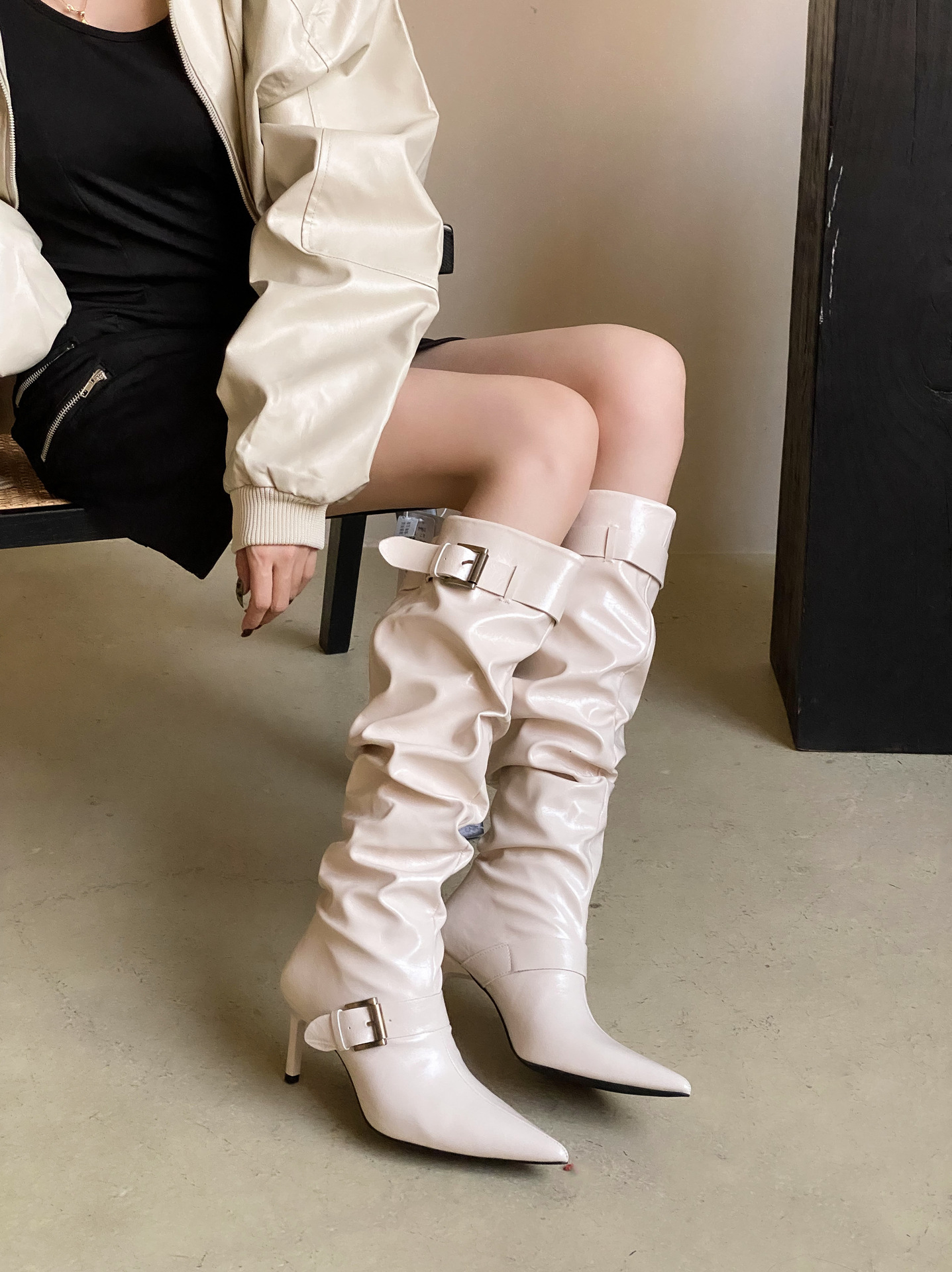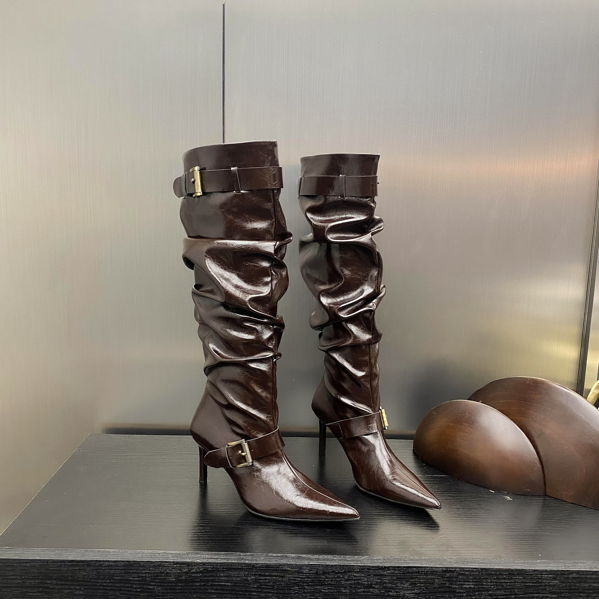 2024 가을 및 겨울 새로운 도착 벨트 버클 얇은 힐 미드 힐 하이힐 부츠 주름 여성 부츠 힙 부츠 마틴 부츠 웨스턴 부츠스토어 가기