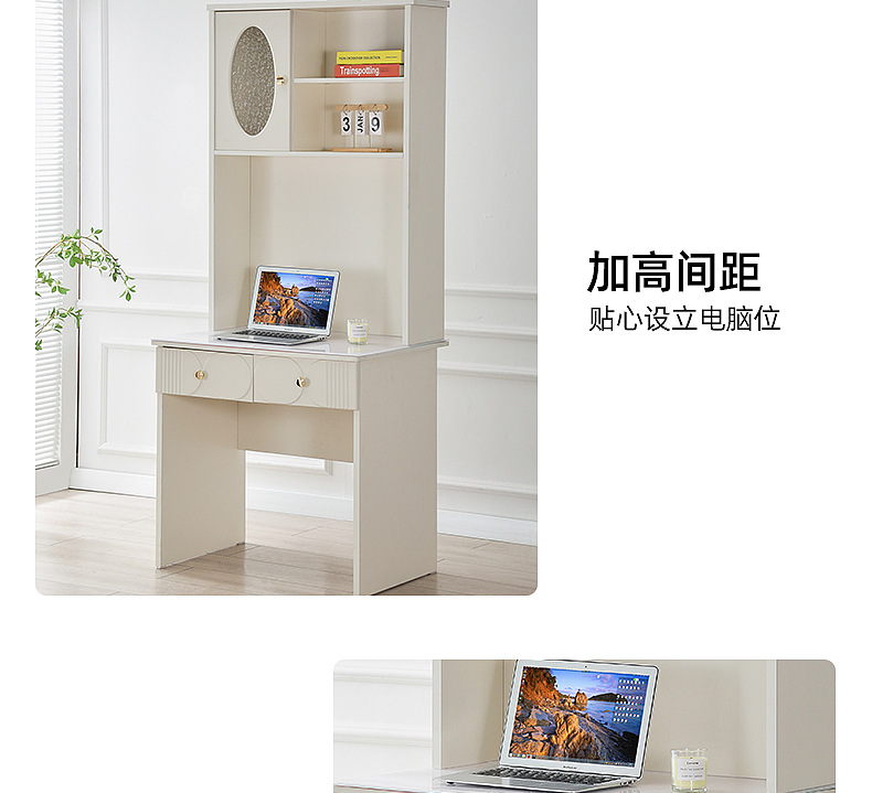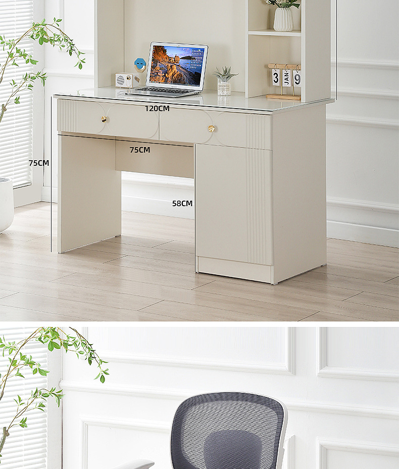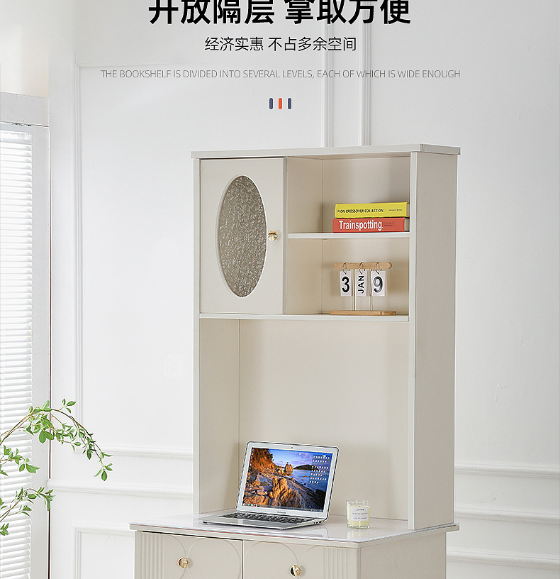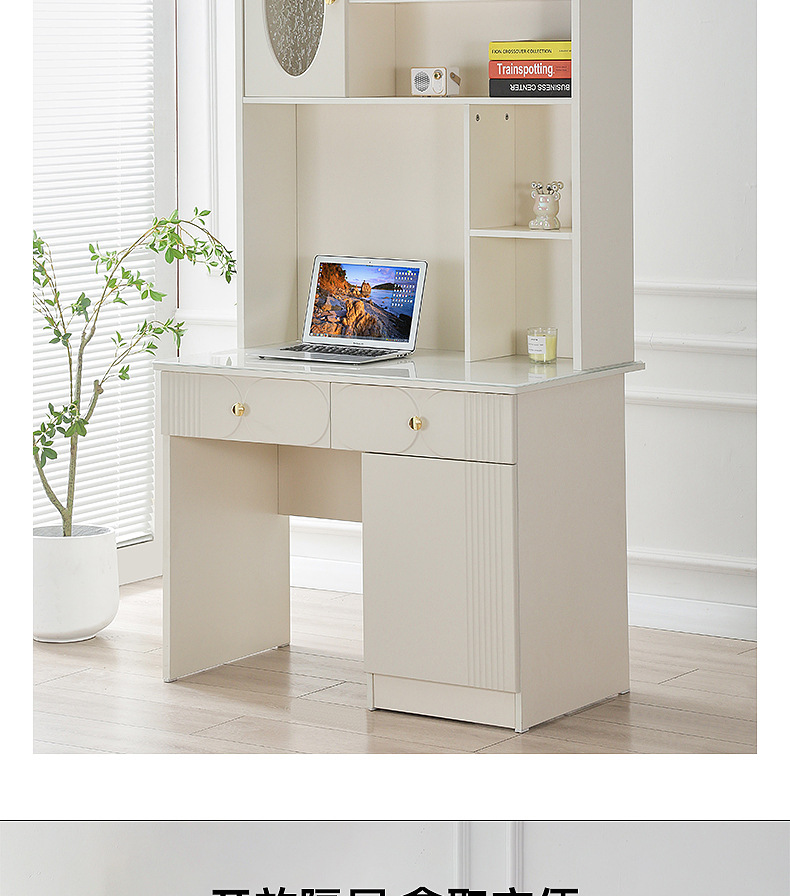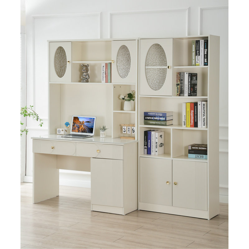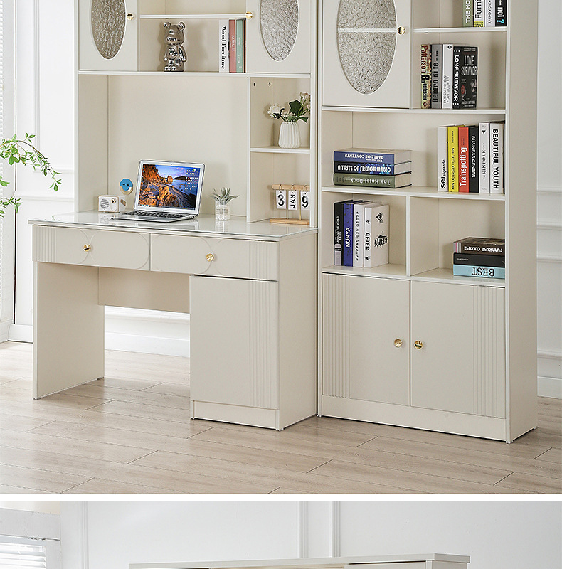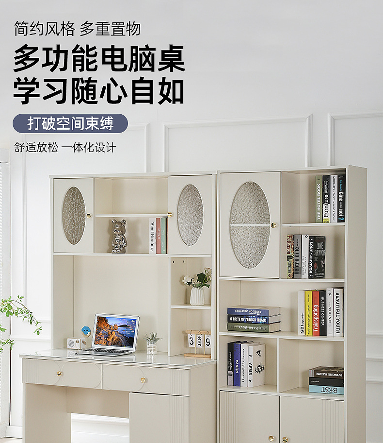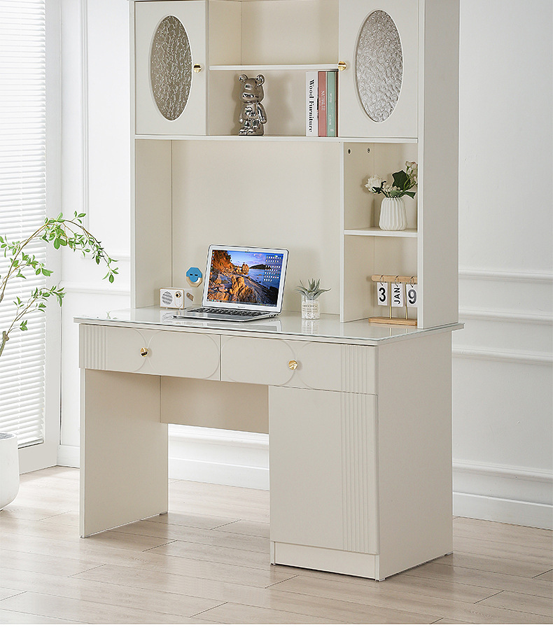 컴퓨터 책상 책장 통합 세트 따뜻한 흰색 간단한 현대 침실 책상 학생 가정 학습 다기능 테이블
