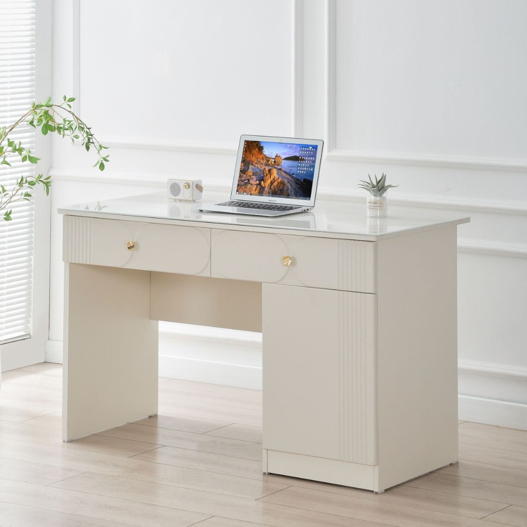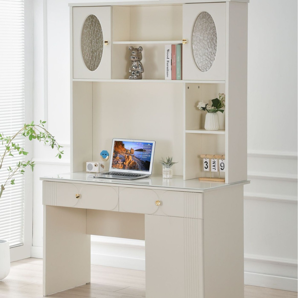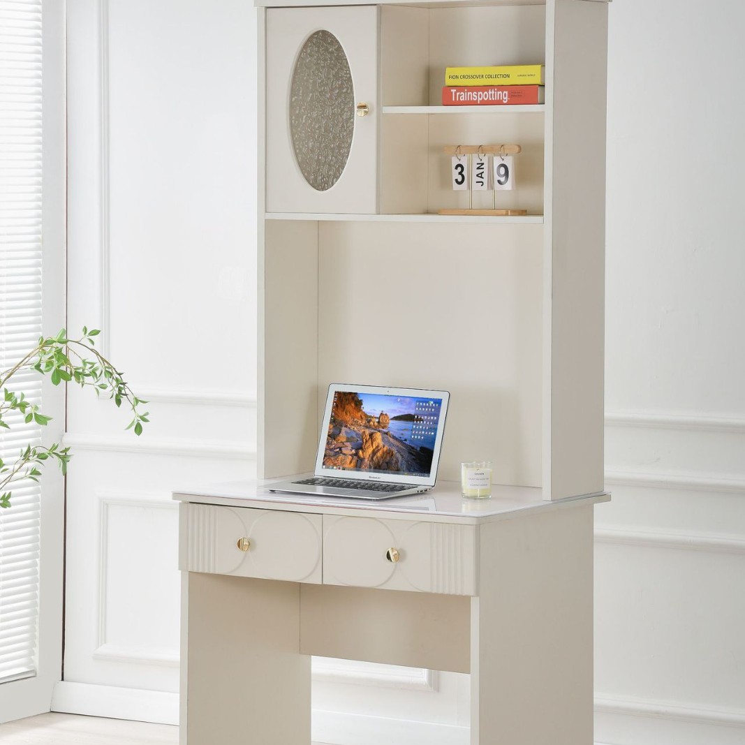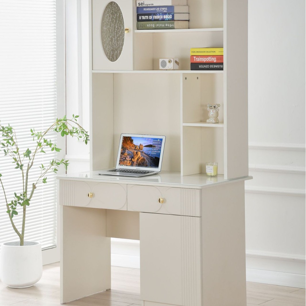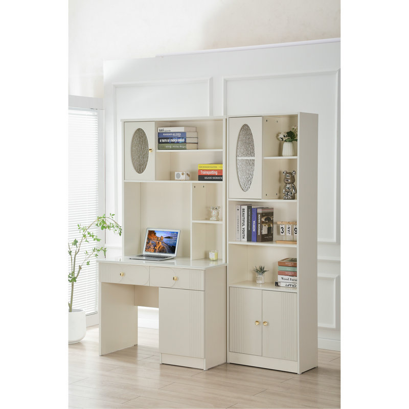 컴퓨터 책상 책장 통합 세트 따뜻한 흰색 간단한 현대 침실 책상 학생 가정 학습 다기능 테이블