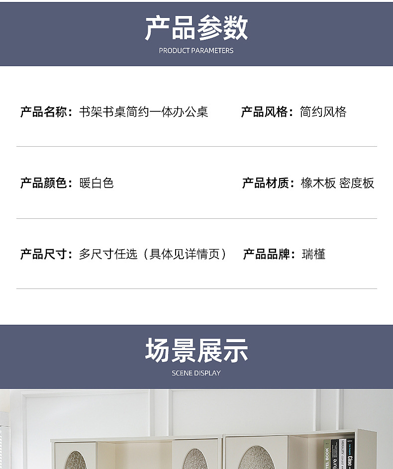 컴퓨터 책상 책장 통합 세트 따뜻한 흰색 간단한 현대 침실 책상 학생 가정 학습 다기능 테이블스토어 가기