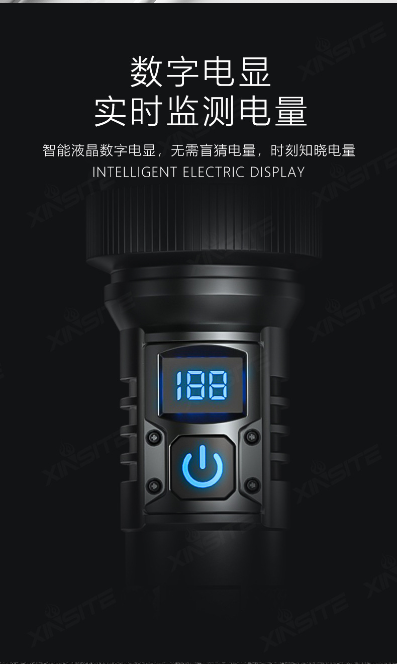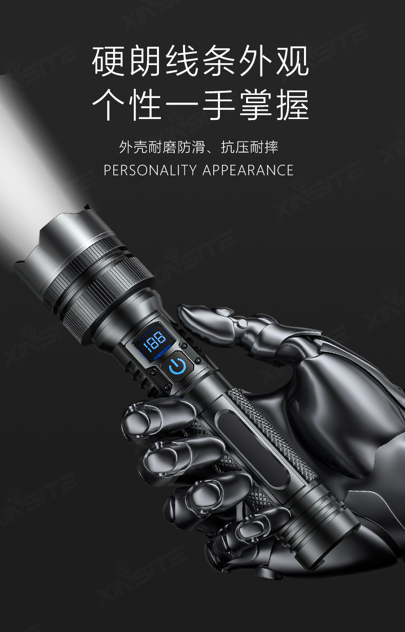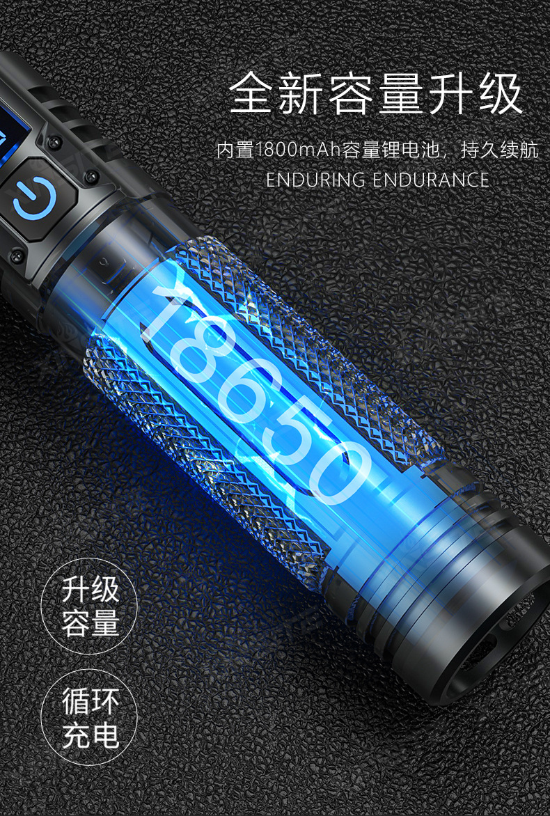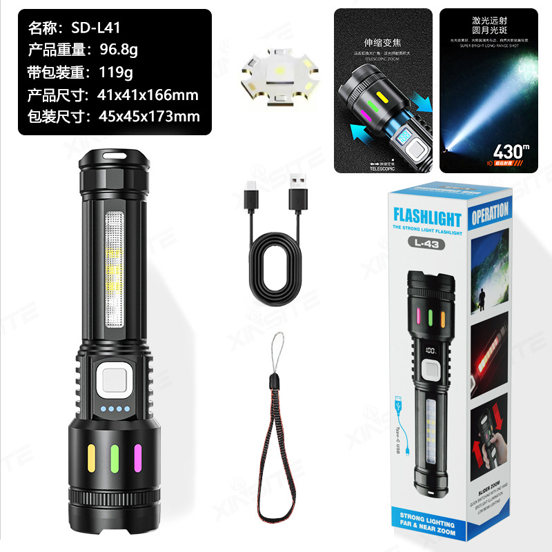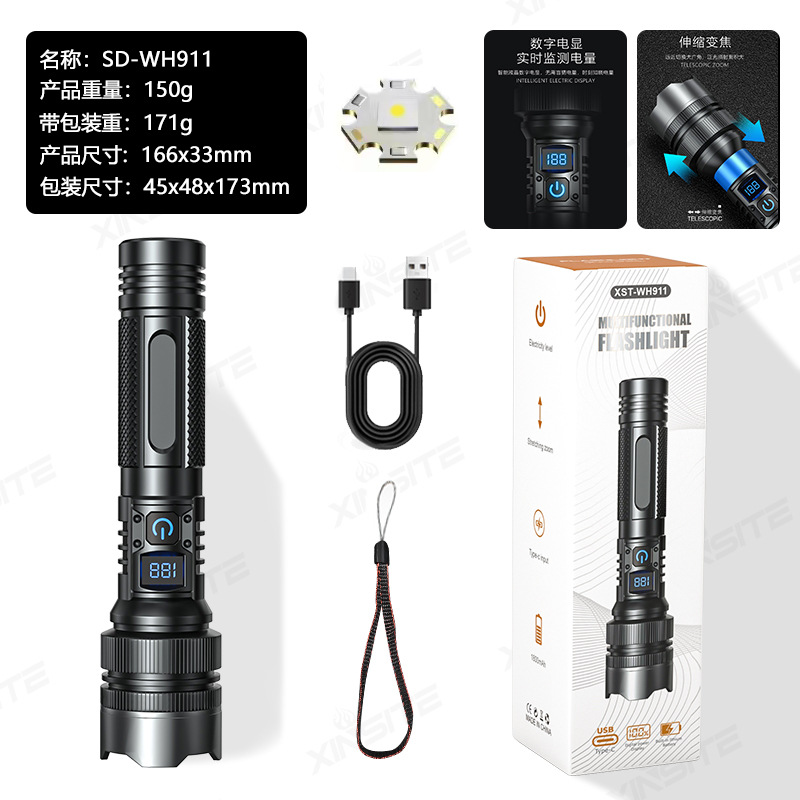 국경 간 LED 강한 빛 장거리 줌 USB 충전식 손전등 야외 캠핑 비상 조명 전기 디스플레이 휴대용 손전등스토어 가기