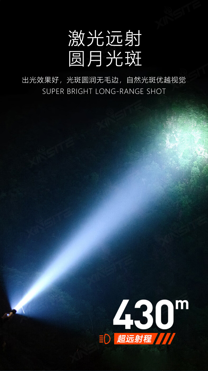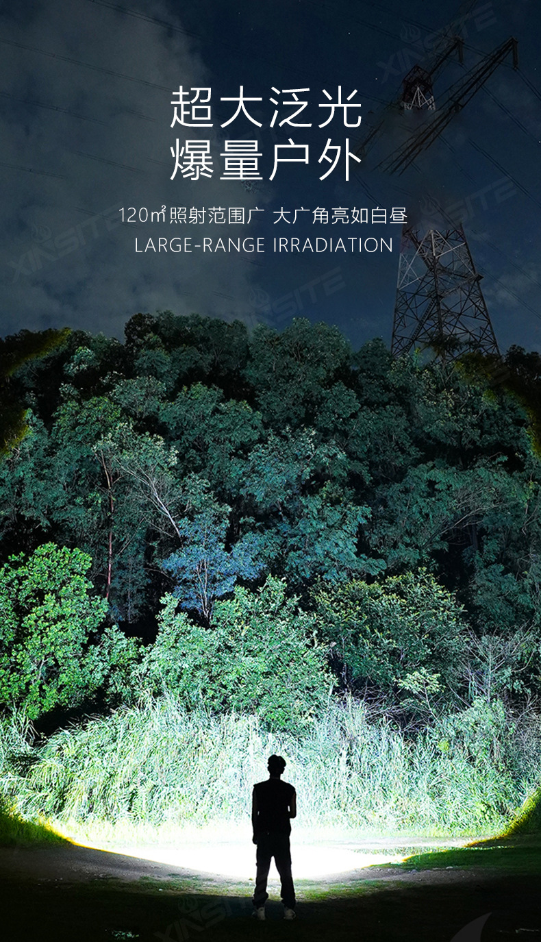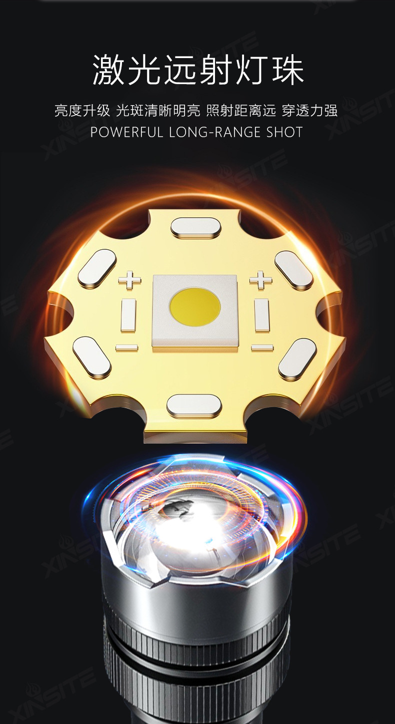 국경 간 LED 강한 빛 장거리 줌 USB 충전식 손전등 야외 캠핑 비상 조명 전기 디스플레이 휴대용 손전등스토어 가기