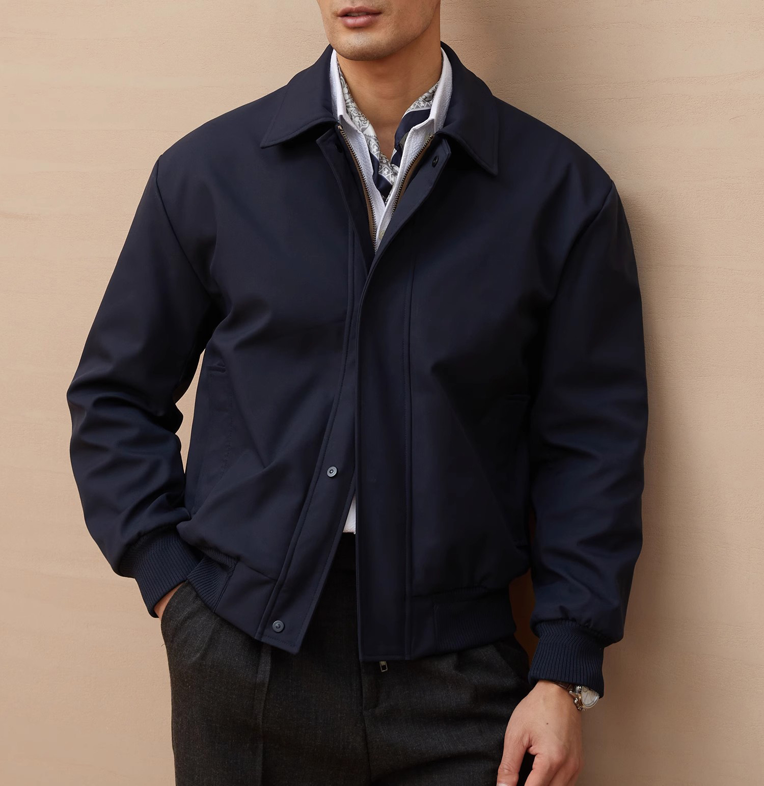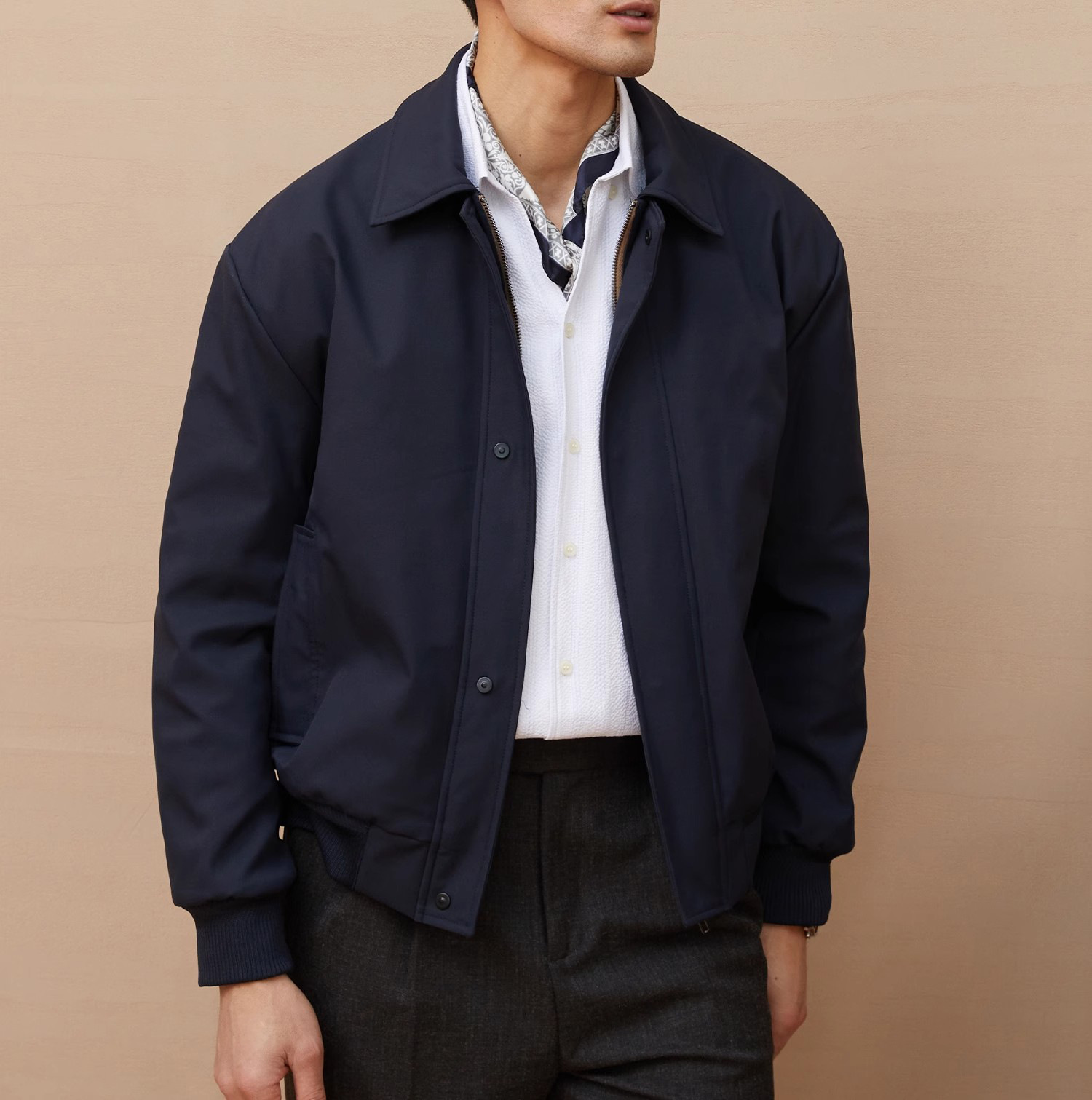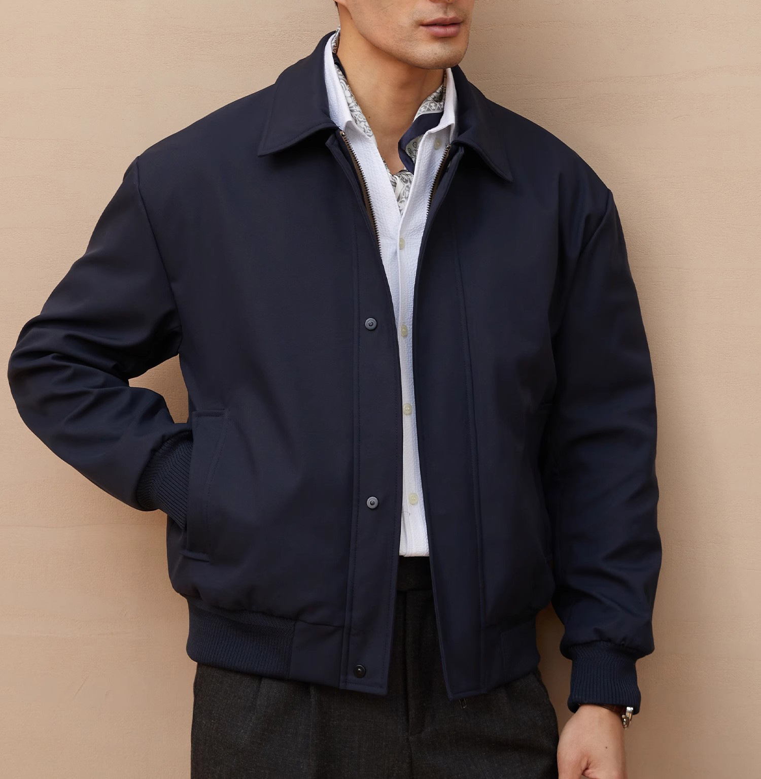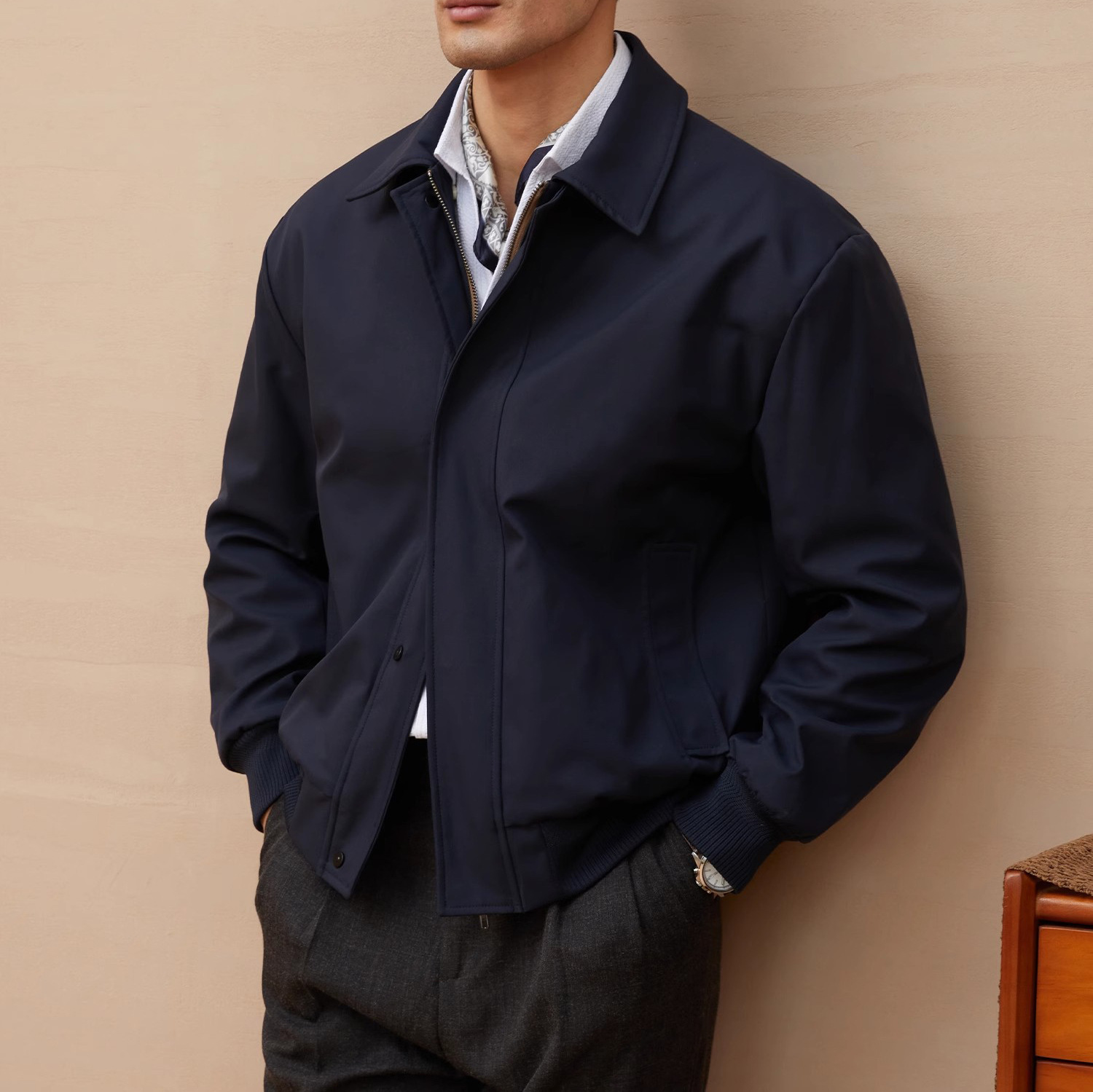 재고 이탈리아 스타일 올드 머니 스타일 메모리 패브릭 옷깃 재킷 남성 비즈니스 통근 자켓 가을