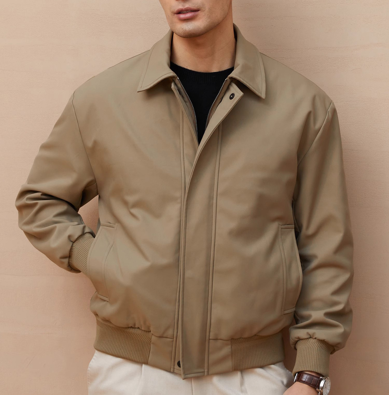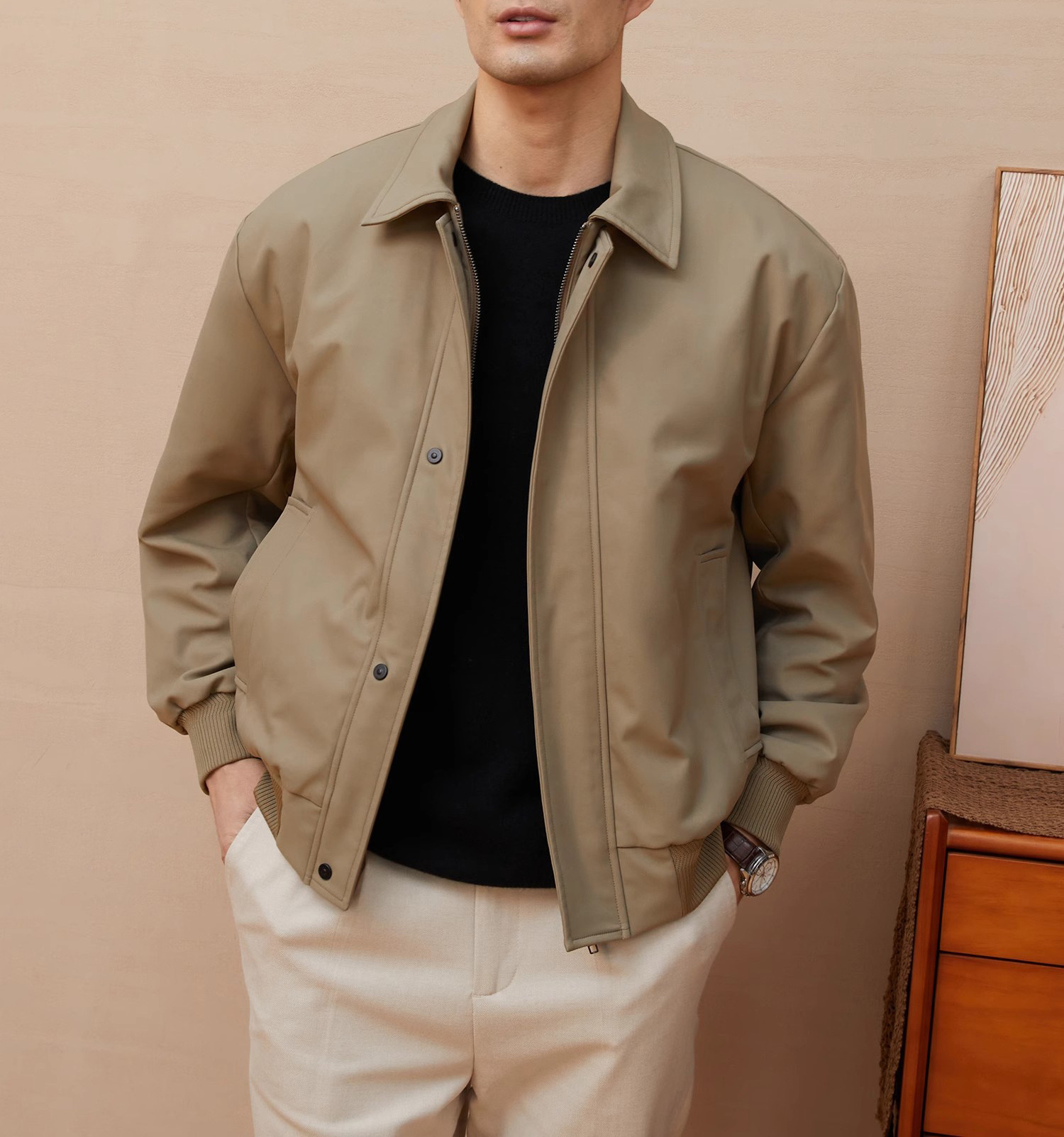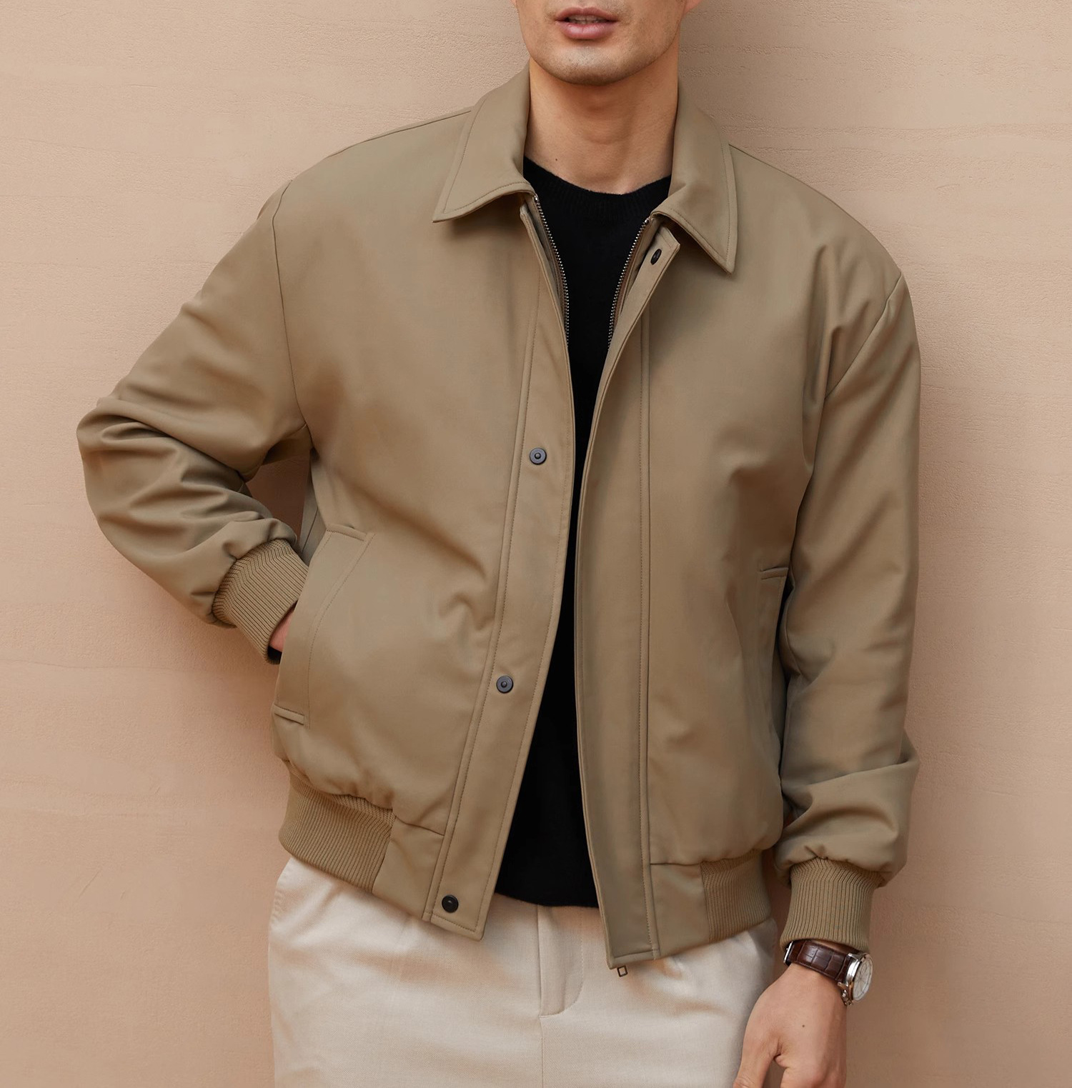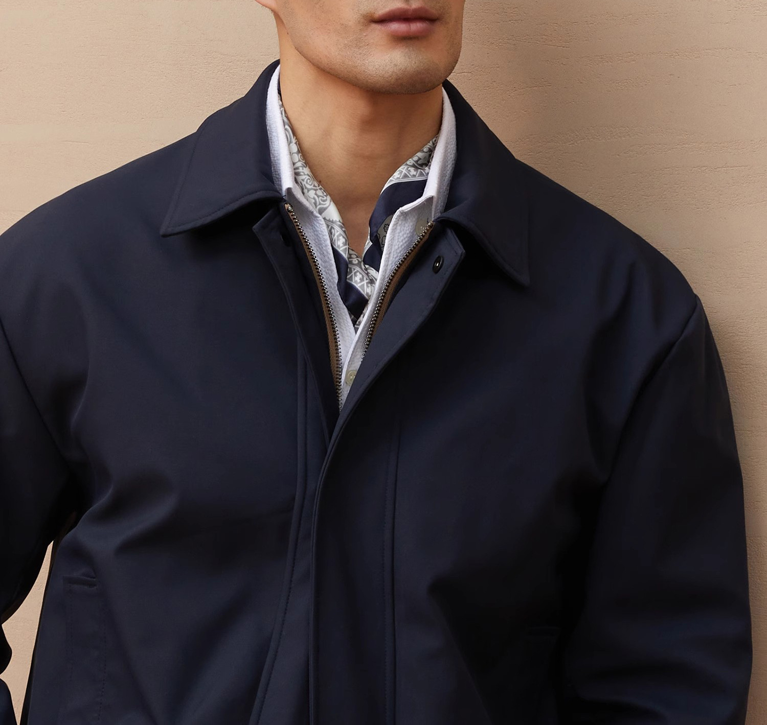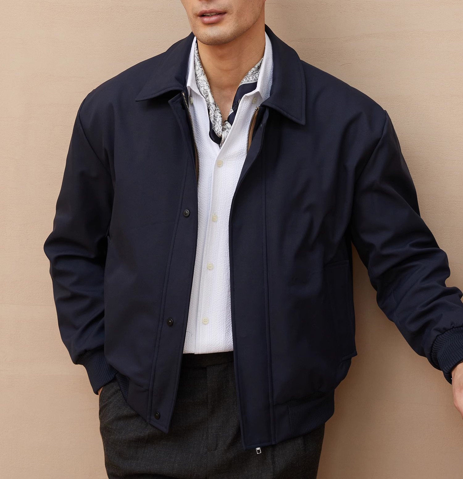재고 이탈리아 스타일 올드 머니 스타일 메모리 패브릭 옷깃 재킷 남성 비즈니스 통근 자켓 가을