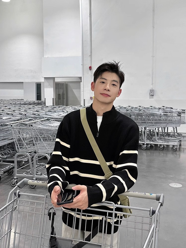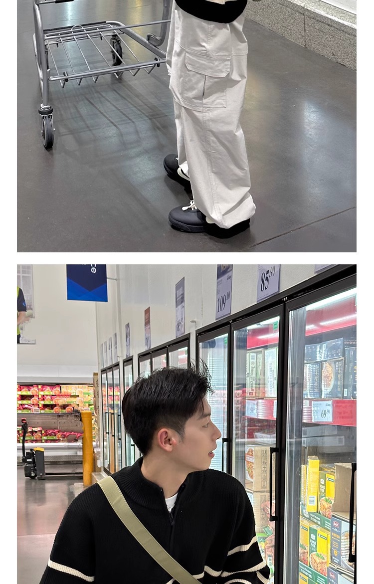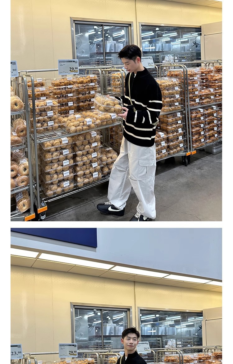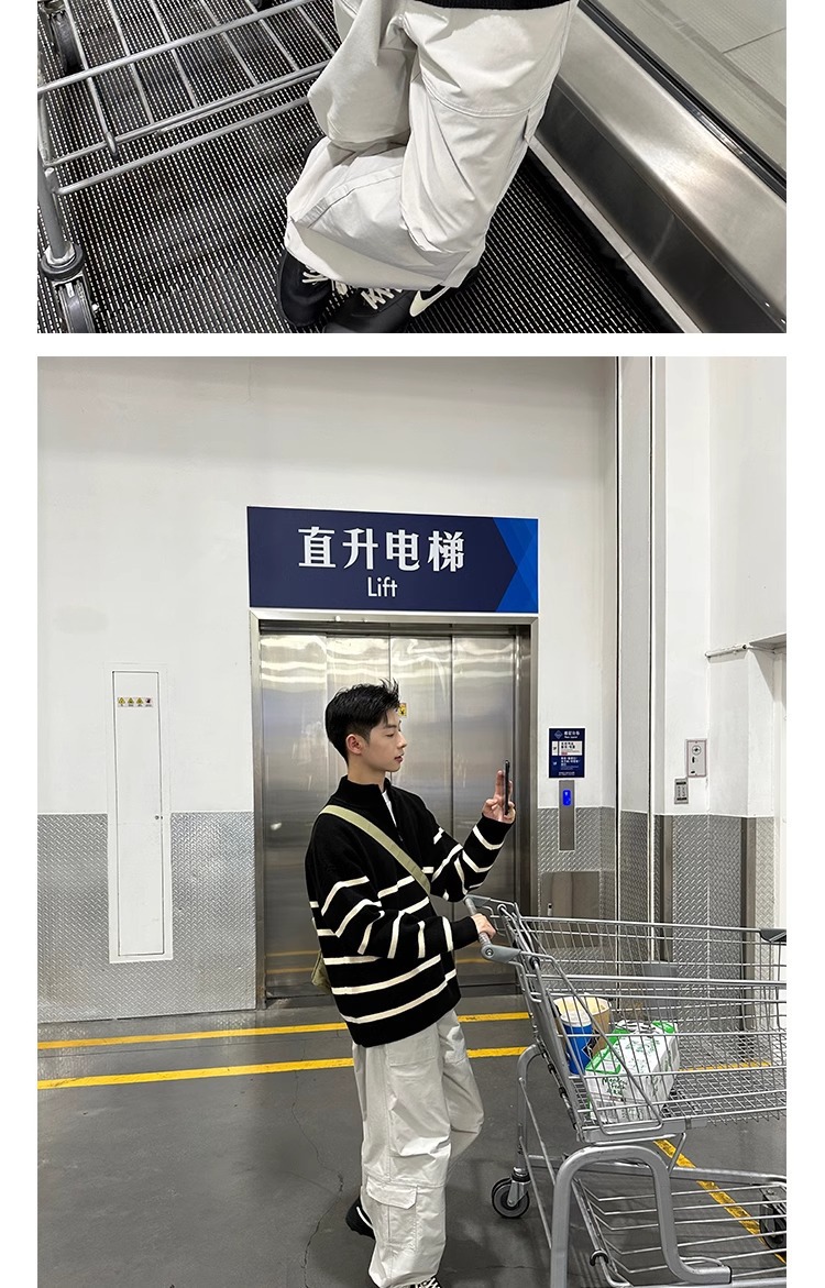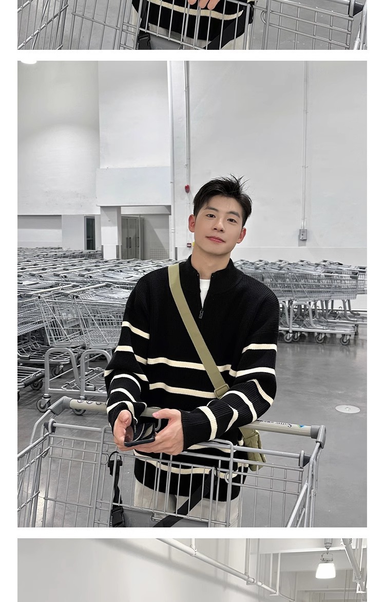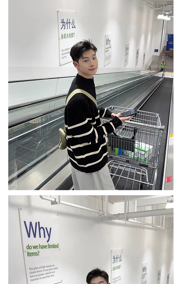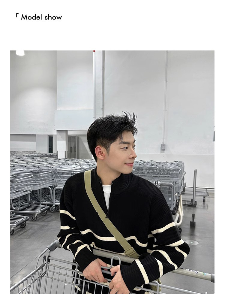 흑백 줄무늬 칼라 하프 Zip 순수 호주 울 남자 가을과 겨울 캐주얼 느슨한 게으른 스타일 풀오버 스웨터스토어 가기