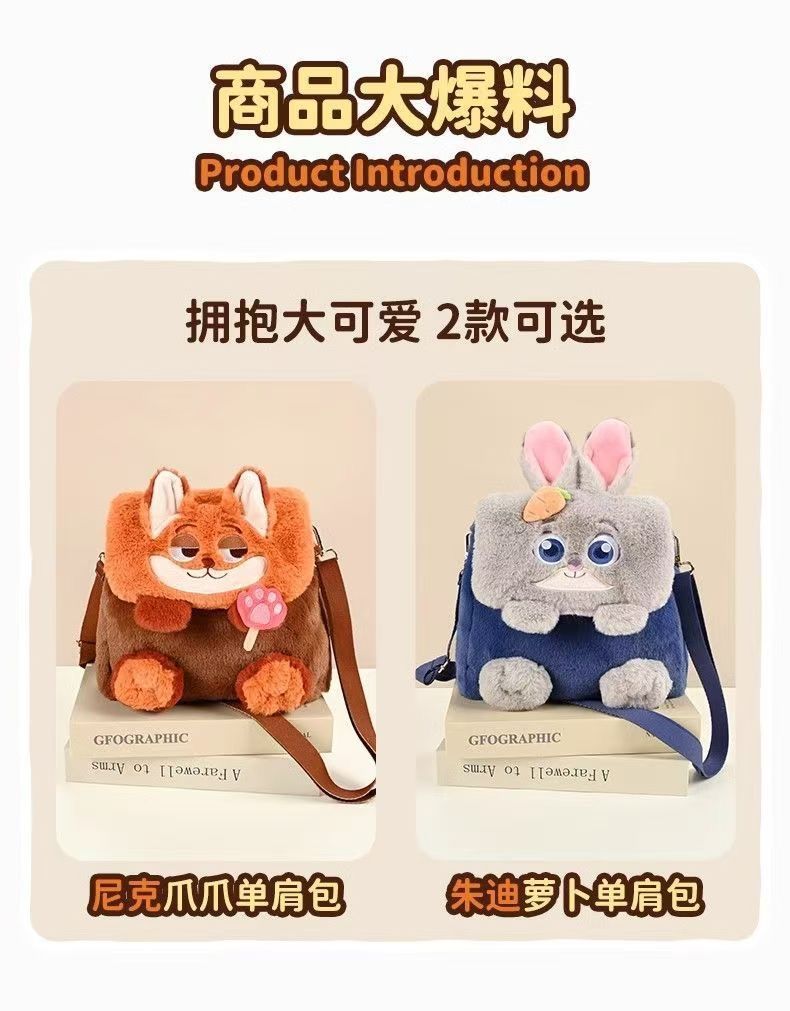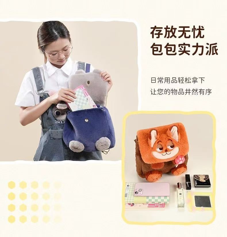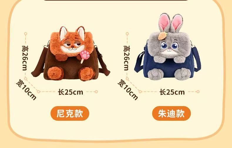 Zootopia 봉제 귀여운 주디 닉 플립 대용량 더블 어깨 크로스 바디 백 대용량스토어 가기