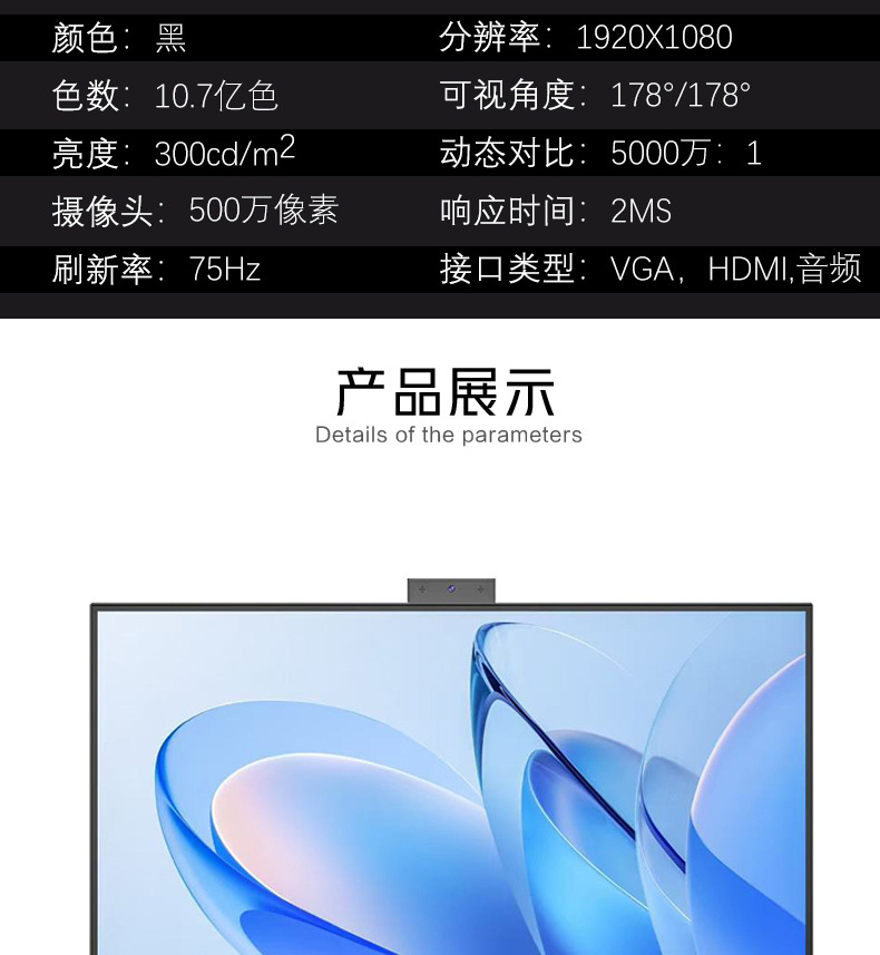 24 인치 데스크탑 컴퓨터 모니터 카메라 경계선없는 HD 벽 교수형 사무실 디자인 편리한 그림