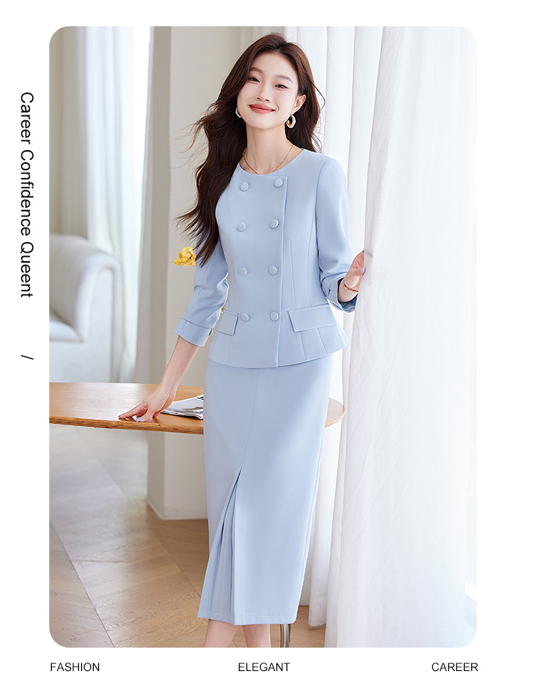 하이 엔드 블루 세트 원피스 여성 작은 향기로운 스타일 우아한 사교계 고급 전문 호스트 원피스 작업복