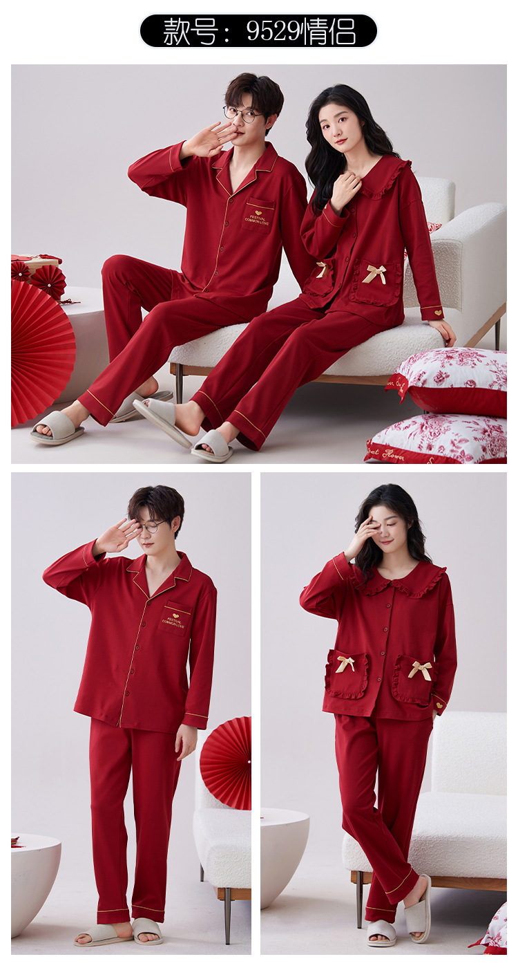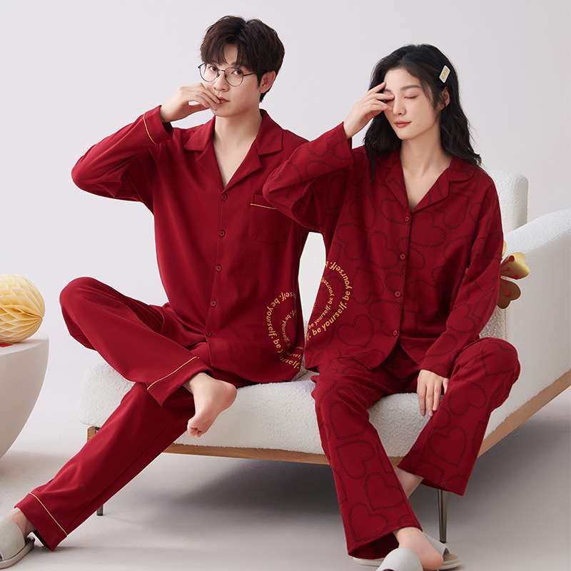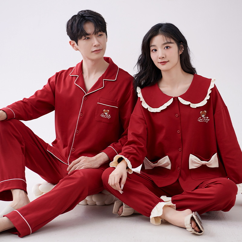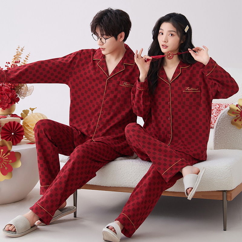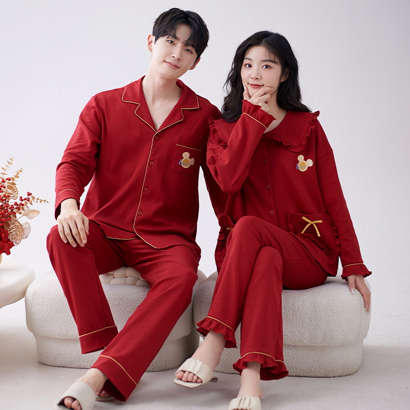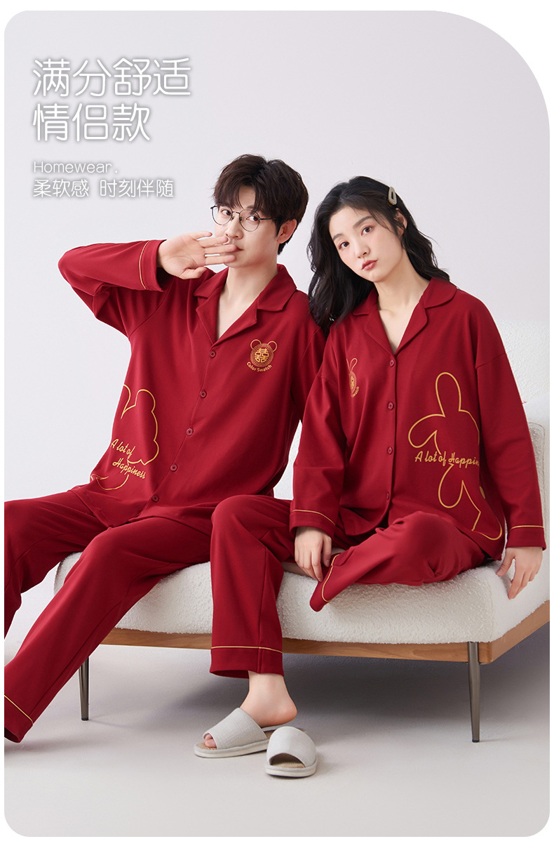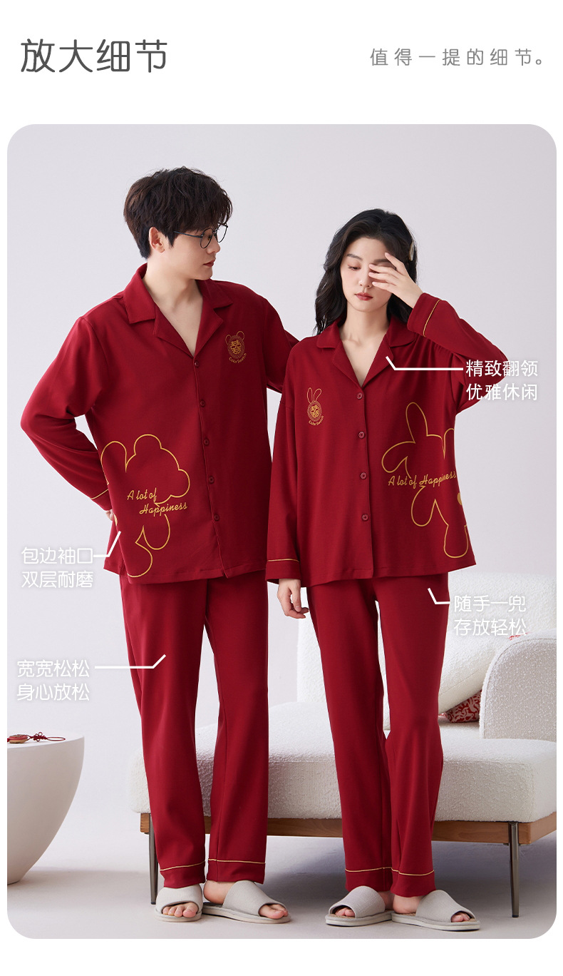 7A 항균 순면 커플 잠옷 결혼식 신혼년 레드 2024 새 세트 봄과 가을 가정 옷스토어 가기