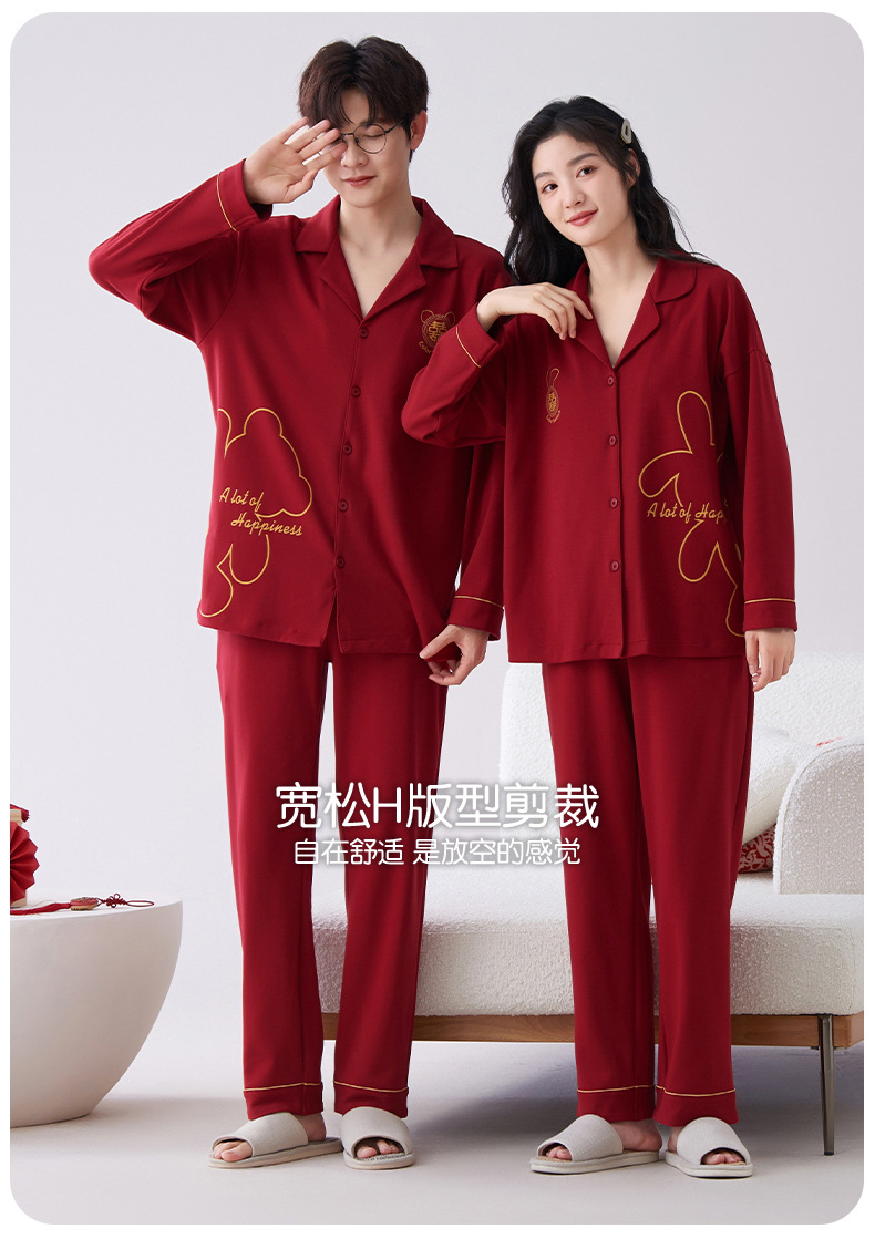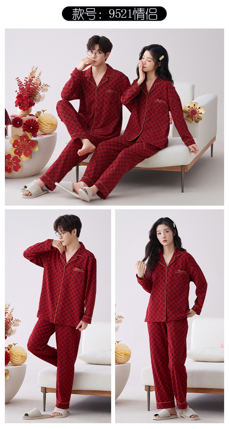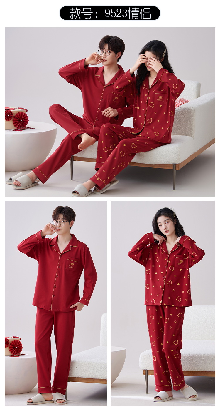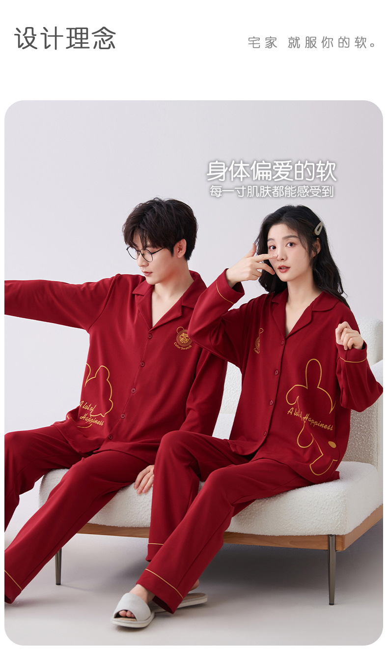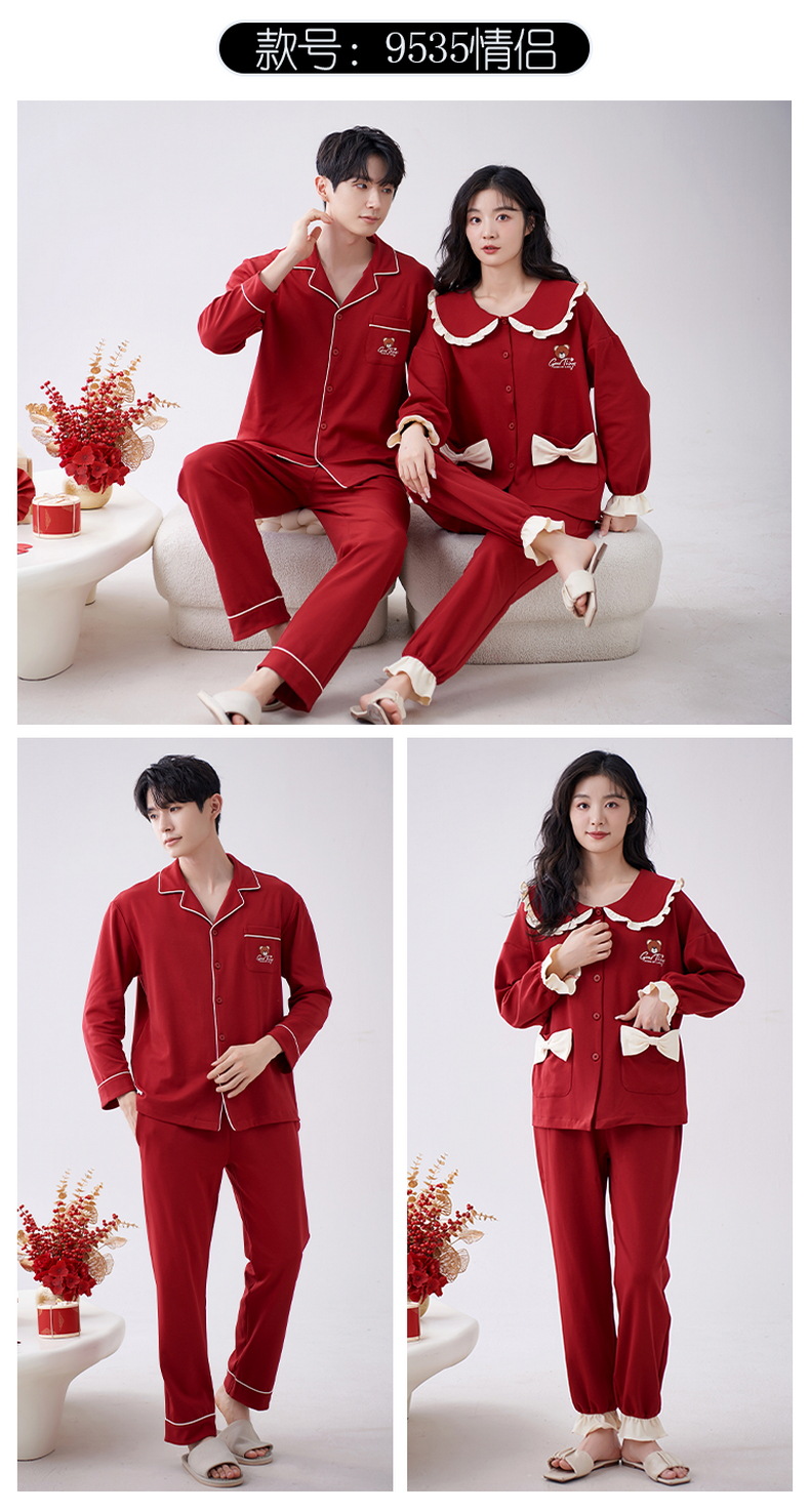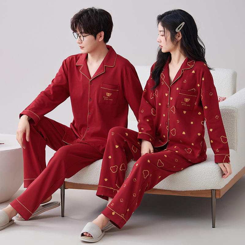7A 항균 순면 커플 잠옷 결혼식 신혼년 레드 2024 새 세트 봄과 가을 가정 옷스토어 가기