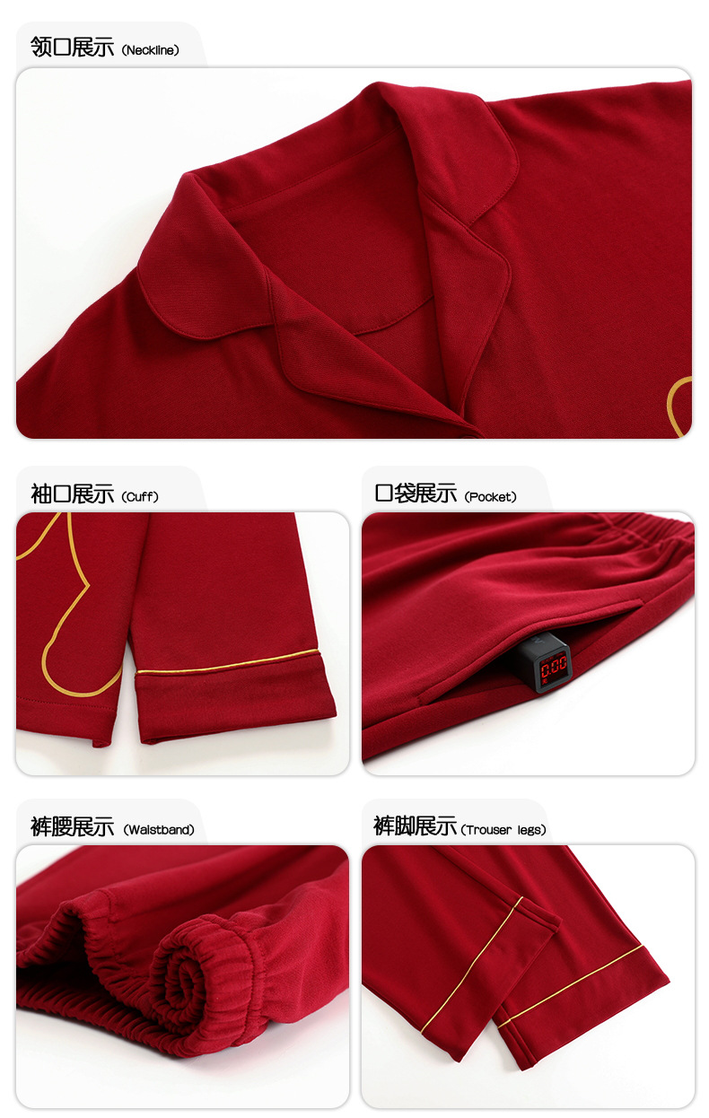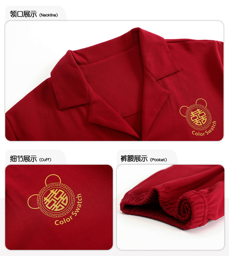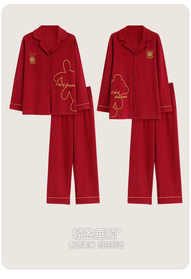 7A 항균 순면 커플 잠옷 결혼식 신혼년 레드 2024 새 세트 봄과 가을 가정 옷