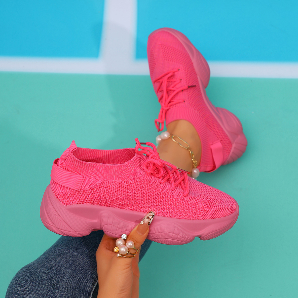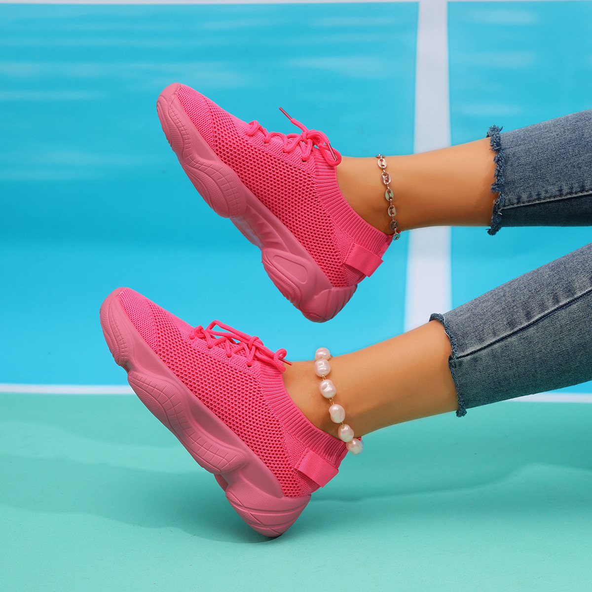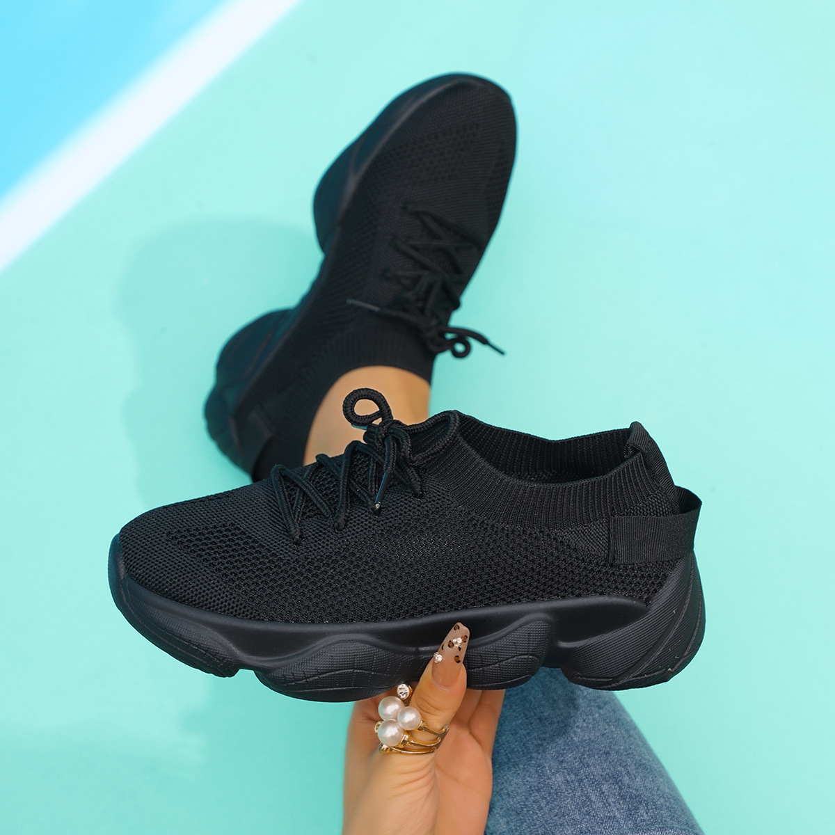 국경 간 뉴 플러스 사이즈 여성 신발 옷감 플랫 캐주얼 운동화 신발 레이스 업 플라이 짠 단색 신발 여성용 재고스토어 가기