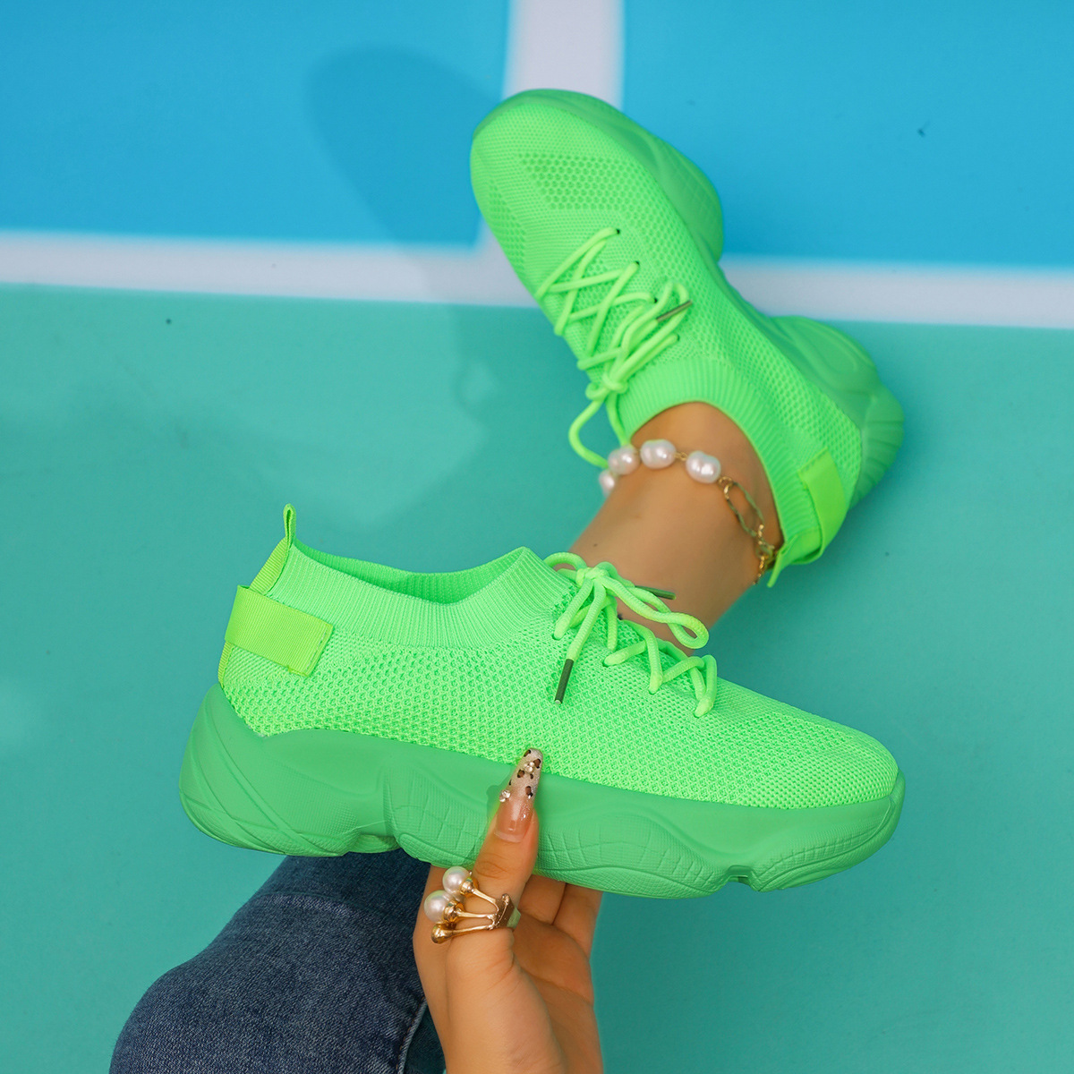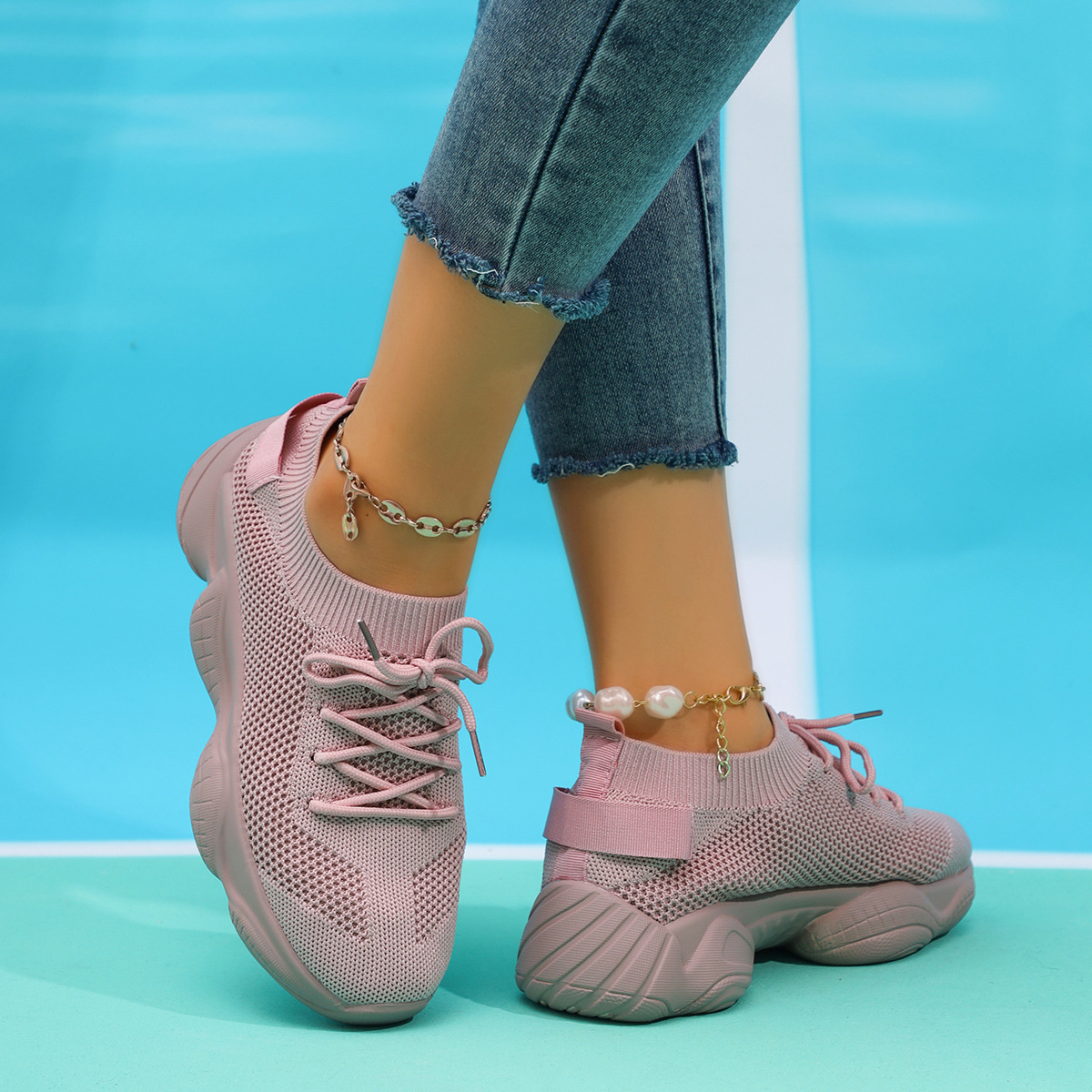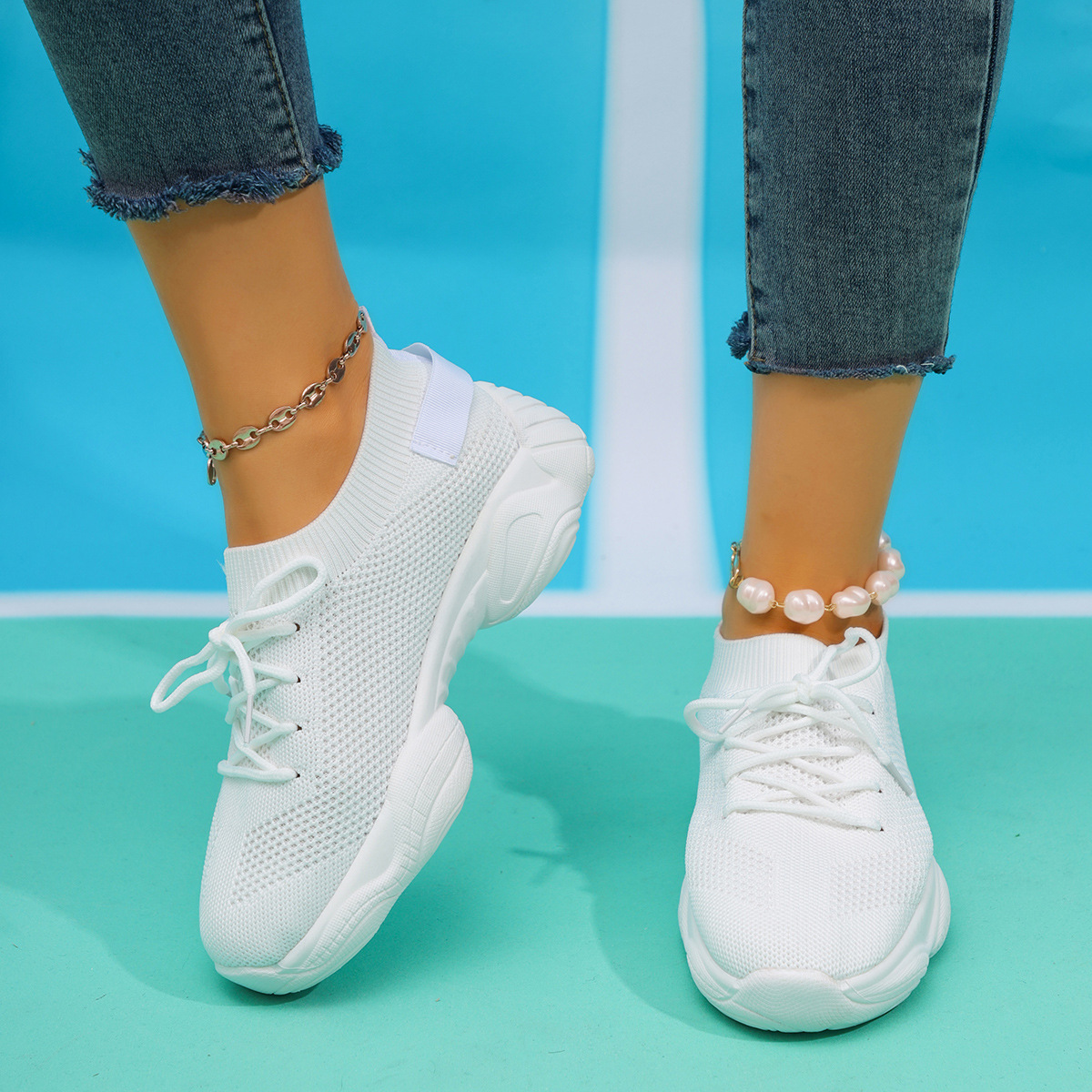 국경 간 뉴 플러스 사이즈 여성 신발 옷감 플랫 캐주얼 운동화 신발 레이스 업 플라이 짠 단색 신발 여성용 재고스토어 가기