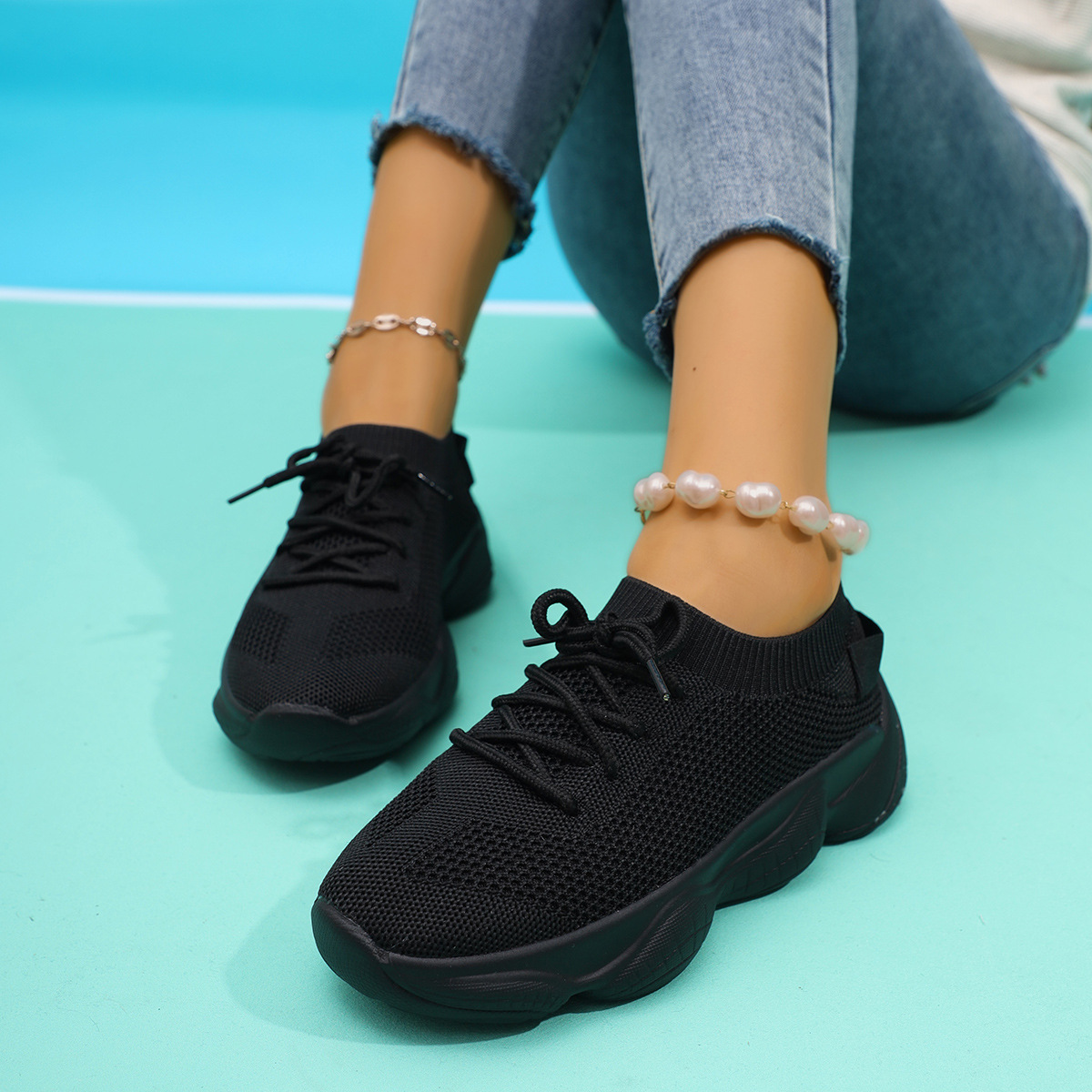 국경 간 뉴 플러스 사이즈 여성 신발 옷감 플랫 캐주얼 운동화 신발 레이스 업 플라이 짠 단색 신발 여성용 재고