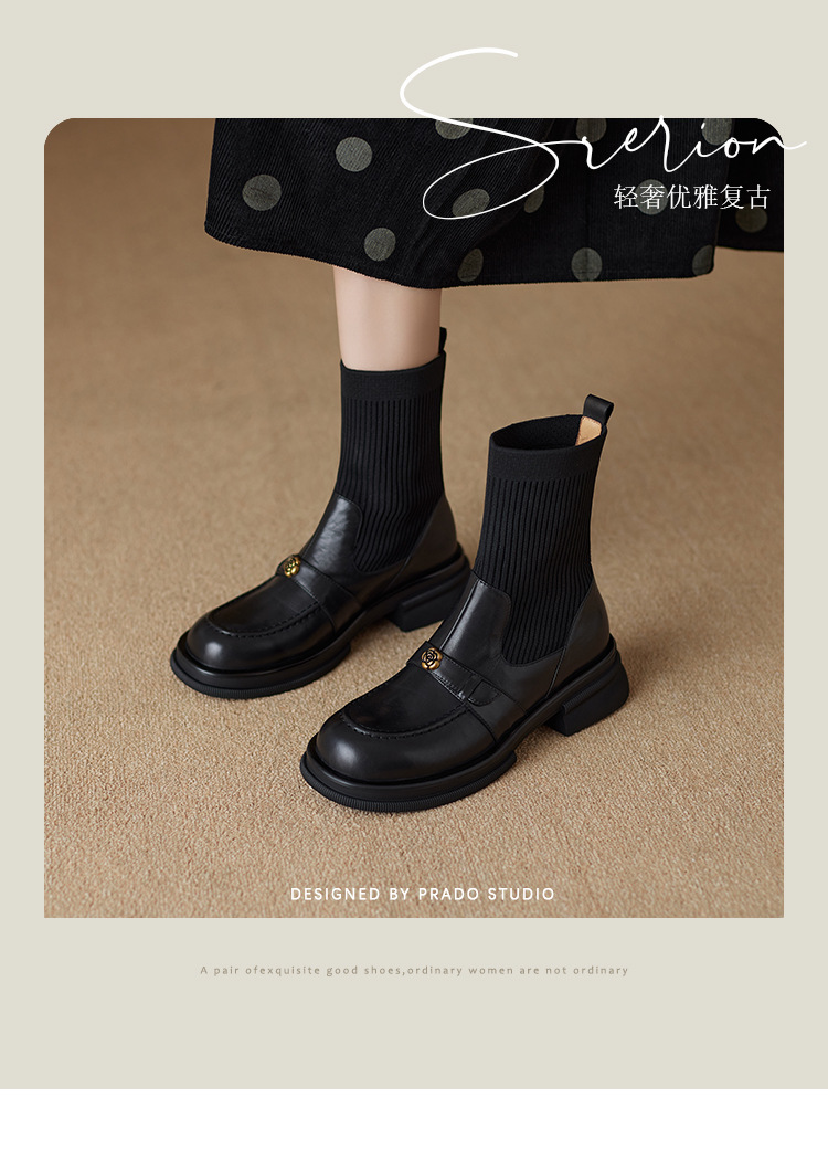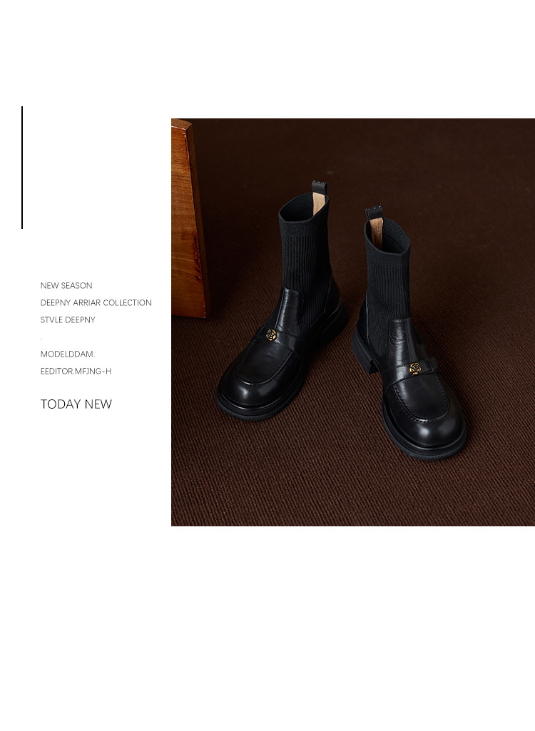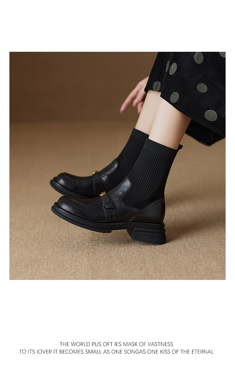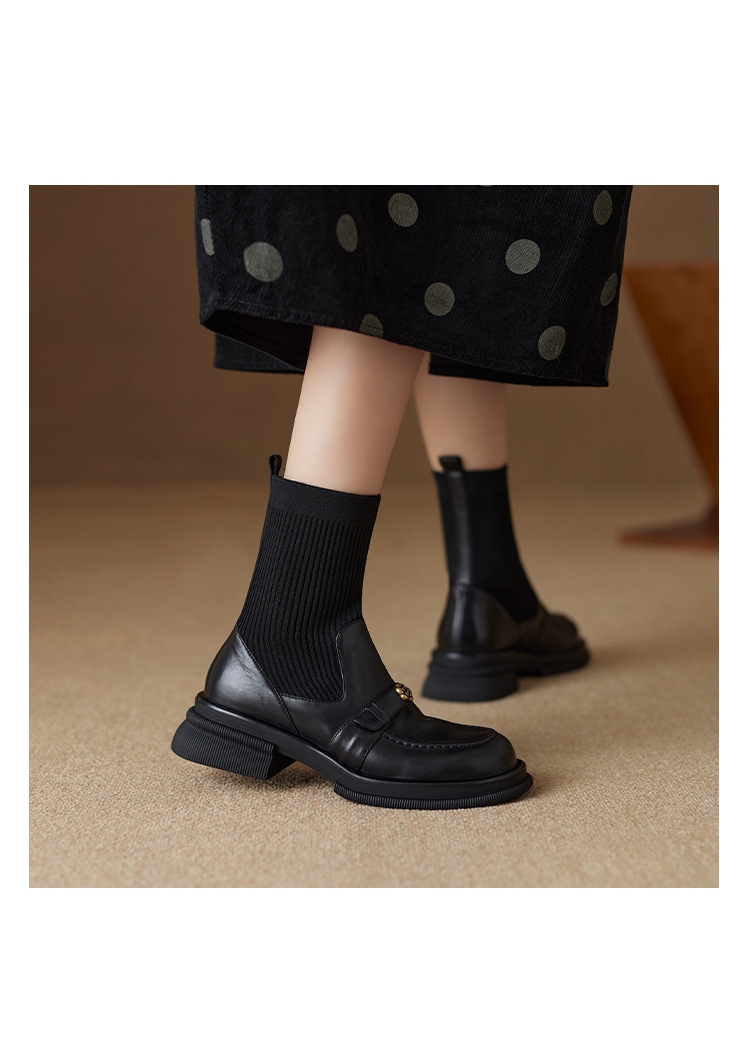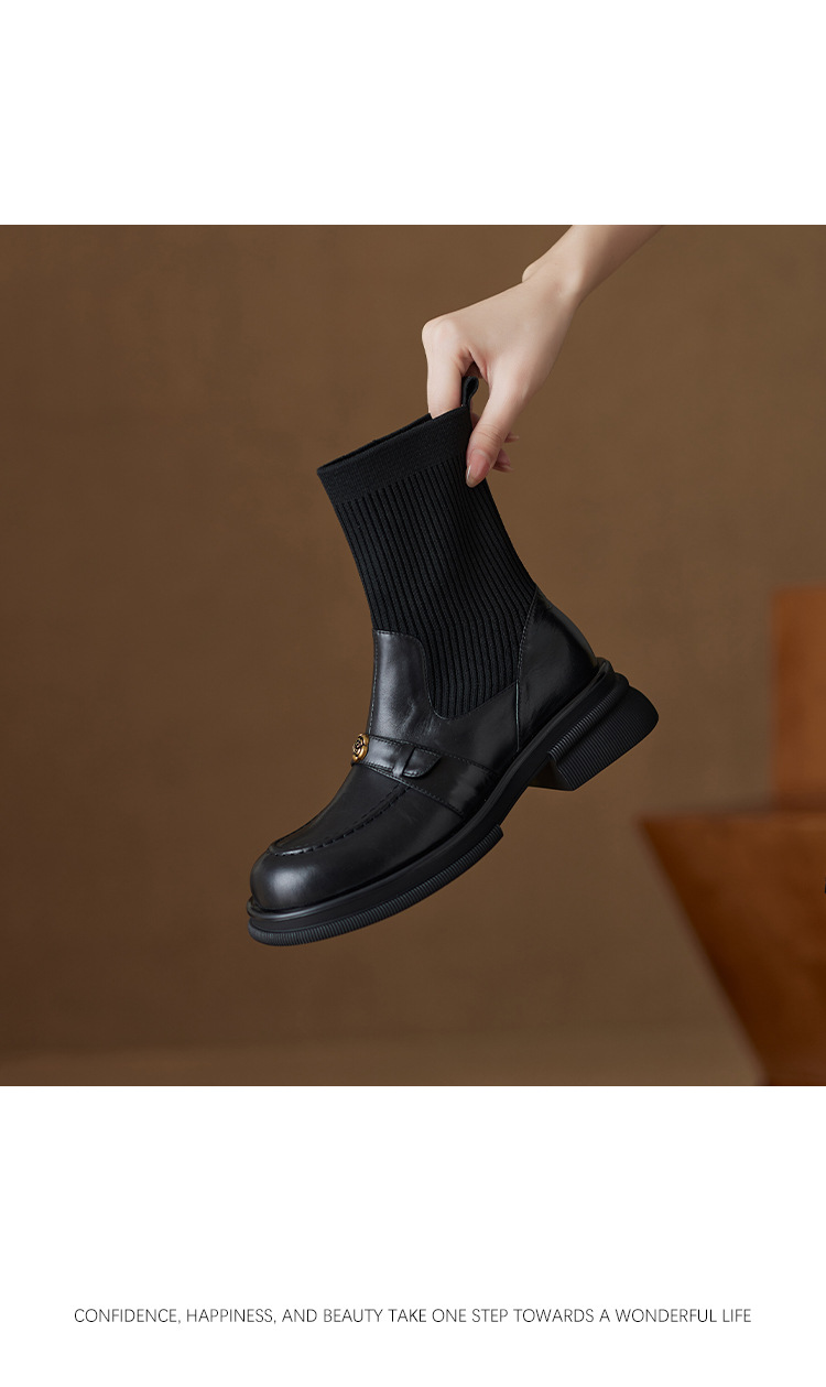 Nai Pai Martins 부츠 여성 가을 및 겨울 두꺼운 밑창 짧은 부츠 니트 스톰퍼 양말 새로운 스타일 두꺼운 굽 신발 프렌치 씬 부츠스토어 가기