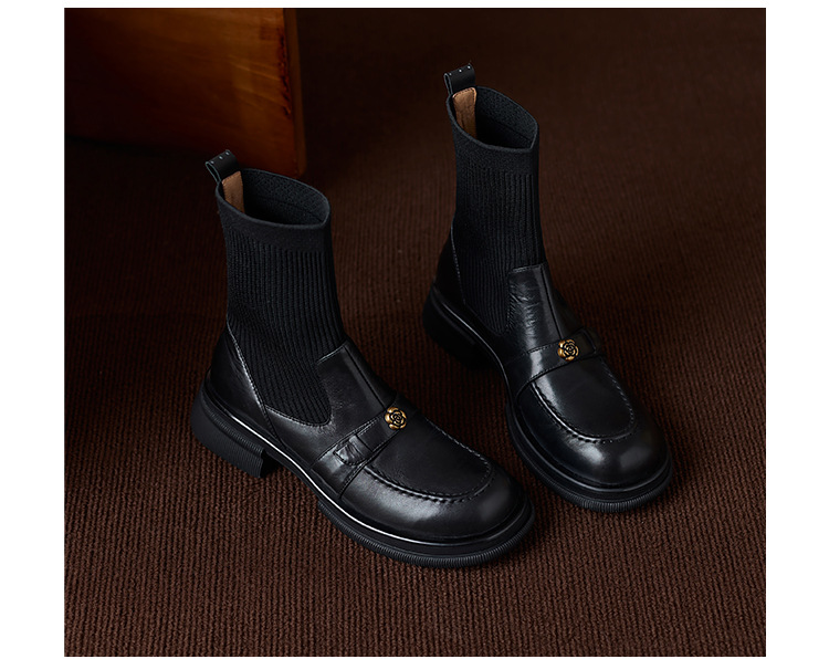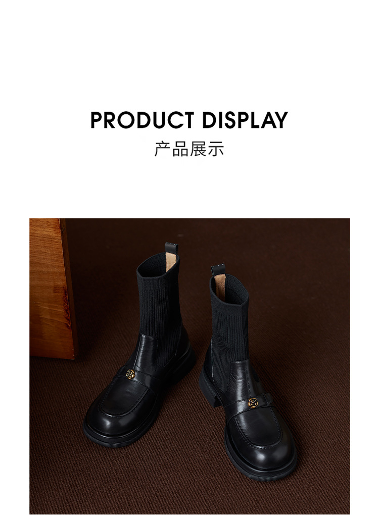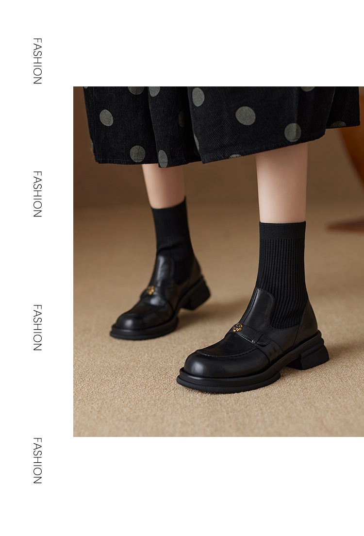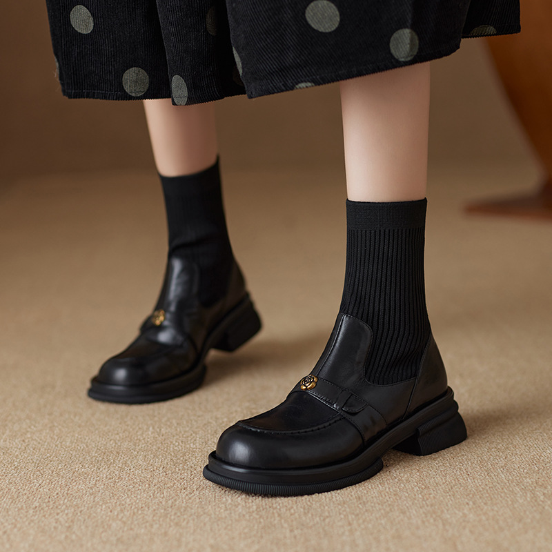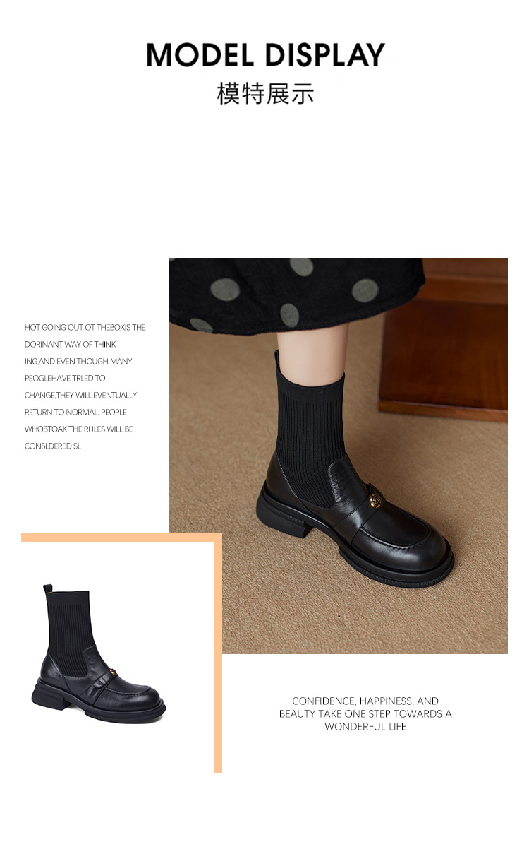 Nai Pai Martins 부츠 여성 가을 및 겨울 두꺼운 밑창 짧은 부츠 니트 스톰퍼 양말 새로운 스타일 두꺼운 굽 신발 프렌치 씬 부츠스토어 가기