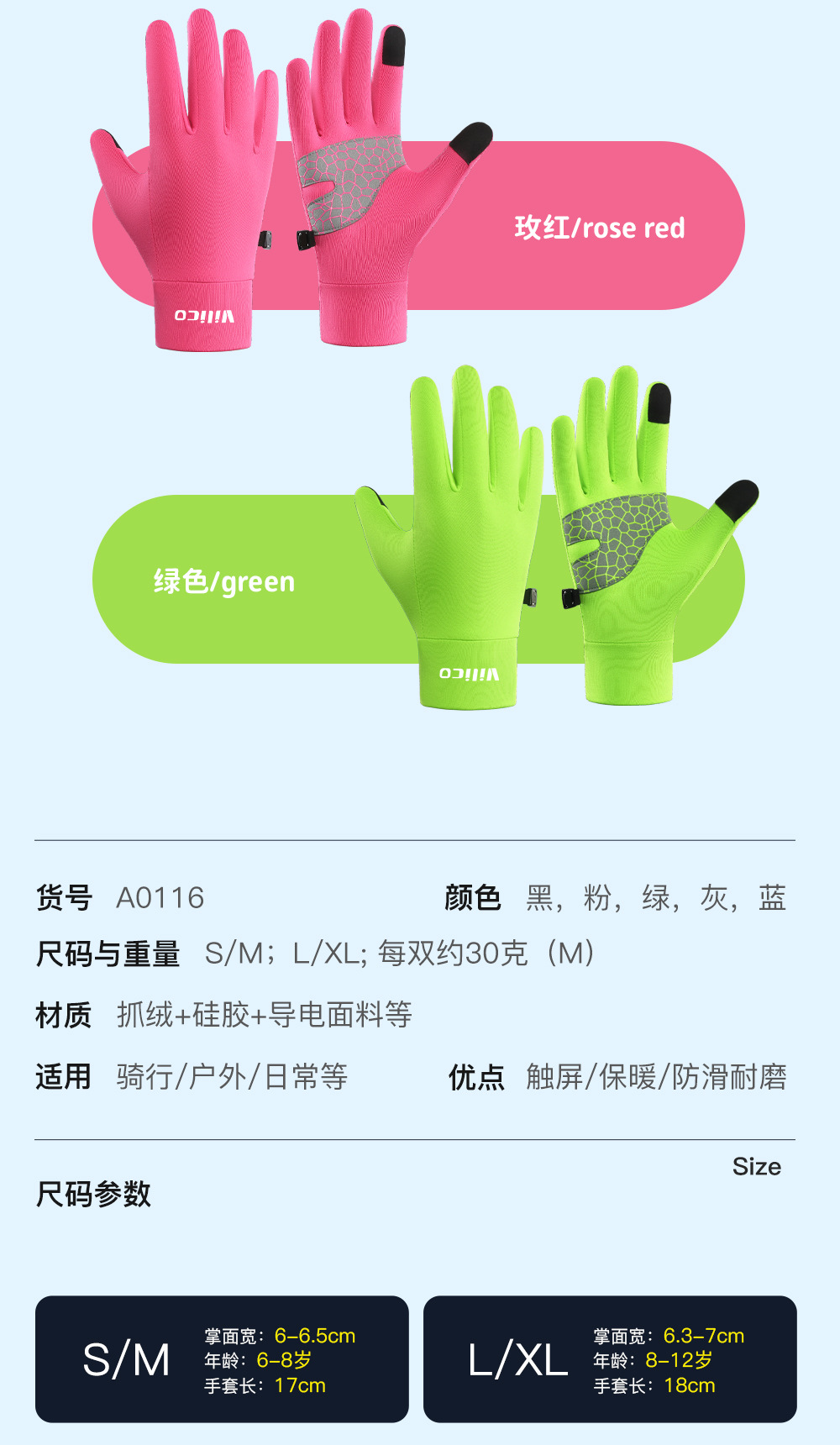 야외 부모-자식 가을과 겨울 어린이 스포츠 라이딩 터치 스크린 따뜻한 장갑 기모 냉장 자전거 도매