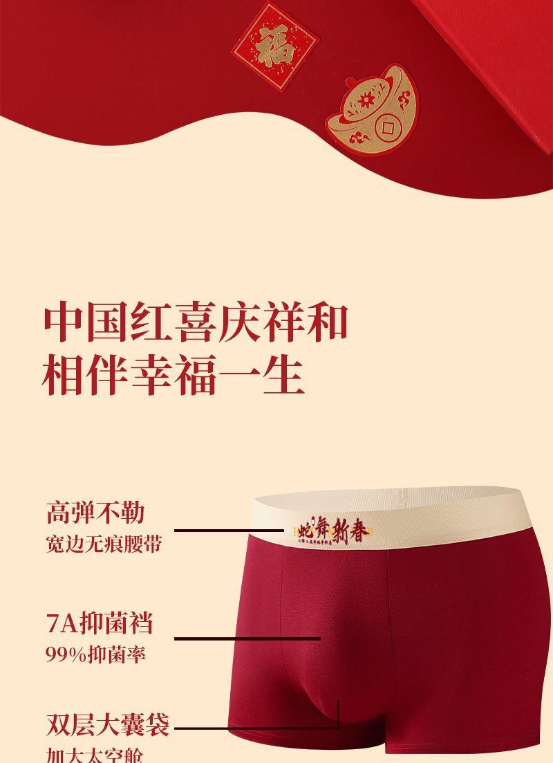 뱀의 해 남자 속옷 연못 순수한 면 항균 복서 피부 친화적 인 통기성 남성의 수분을 좋아하는 복서