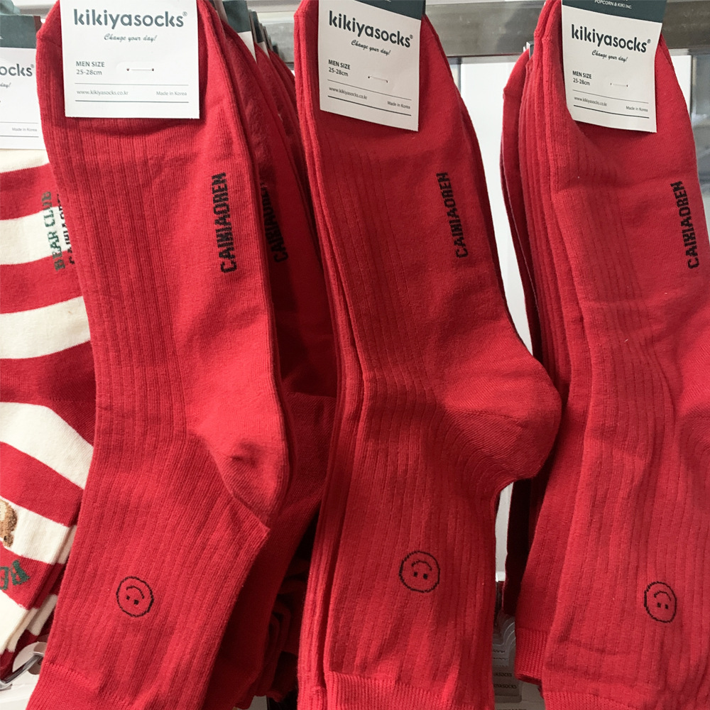 MWT007 한국 솔리드 컬러 양말 남자 가을 · 겨울 새 붉은 양말 범어년 동대문 남자 양말스토어 가기