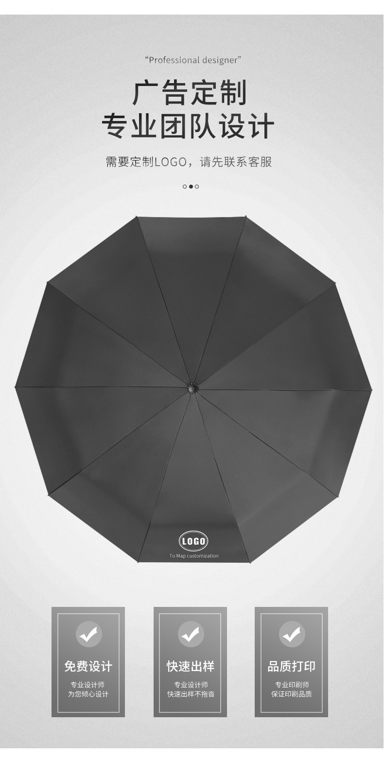 완전 자동 우산 10 뼈 3 배 비닐 차양 단색 광고 우산 맞춤 인쇄 로고 선물 비즈니스 우산