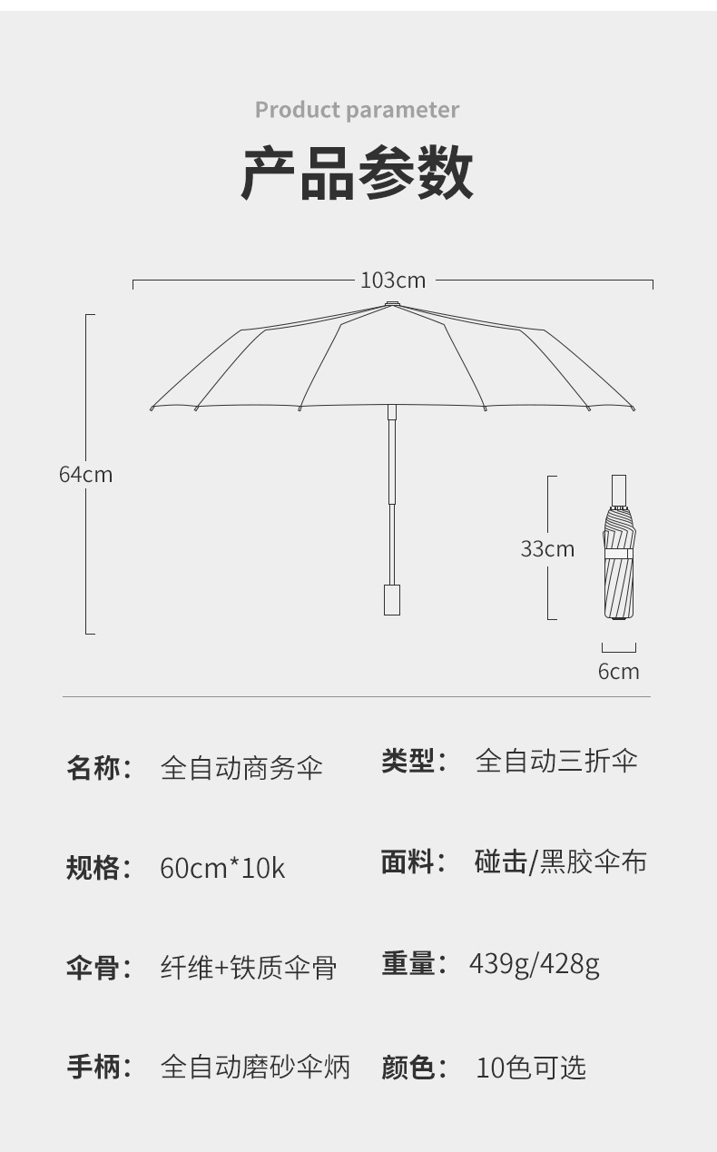 완전 자동 우산 10 뼈 3 배 비닐 차양 단색 광고 우산 맞춤 인쇄 로고 선물 비즈니스 우산스토어 가기