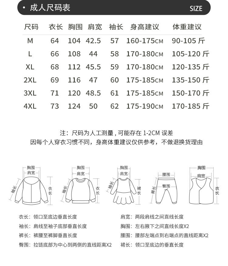 • 성인—4XL 사이즈