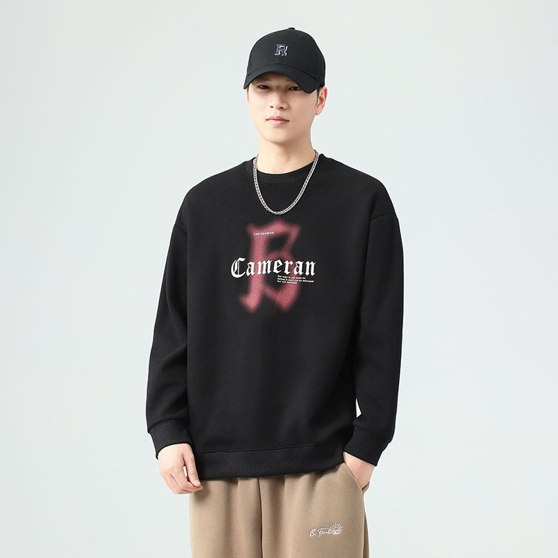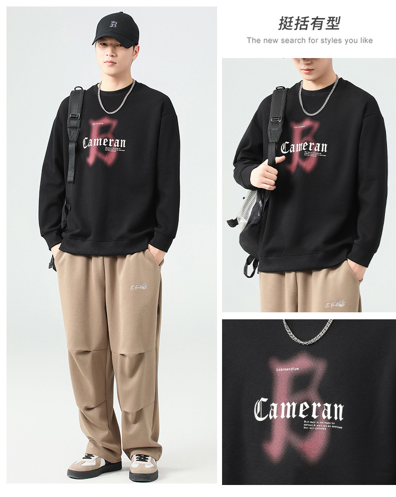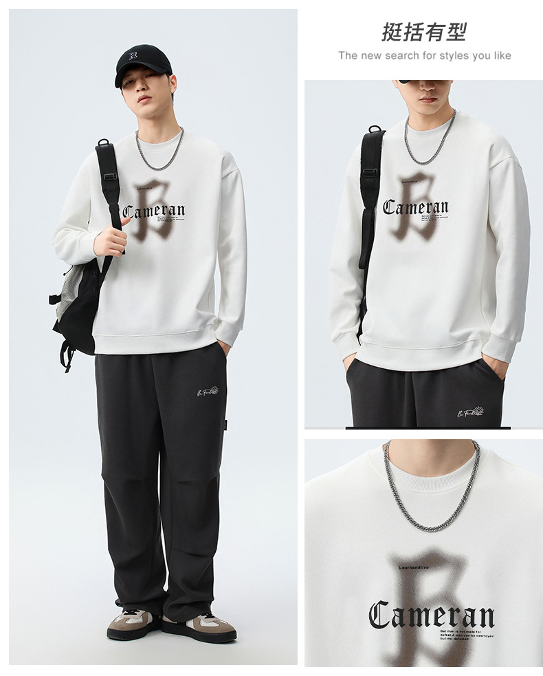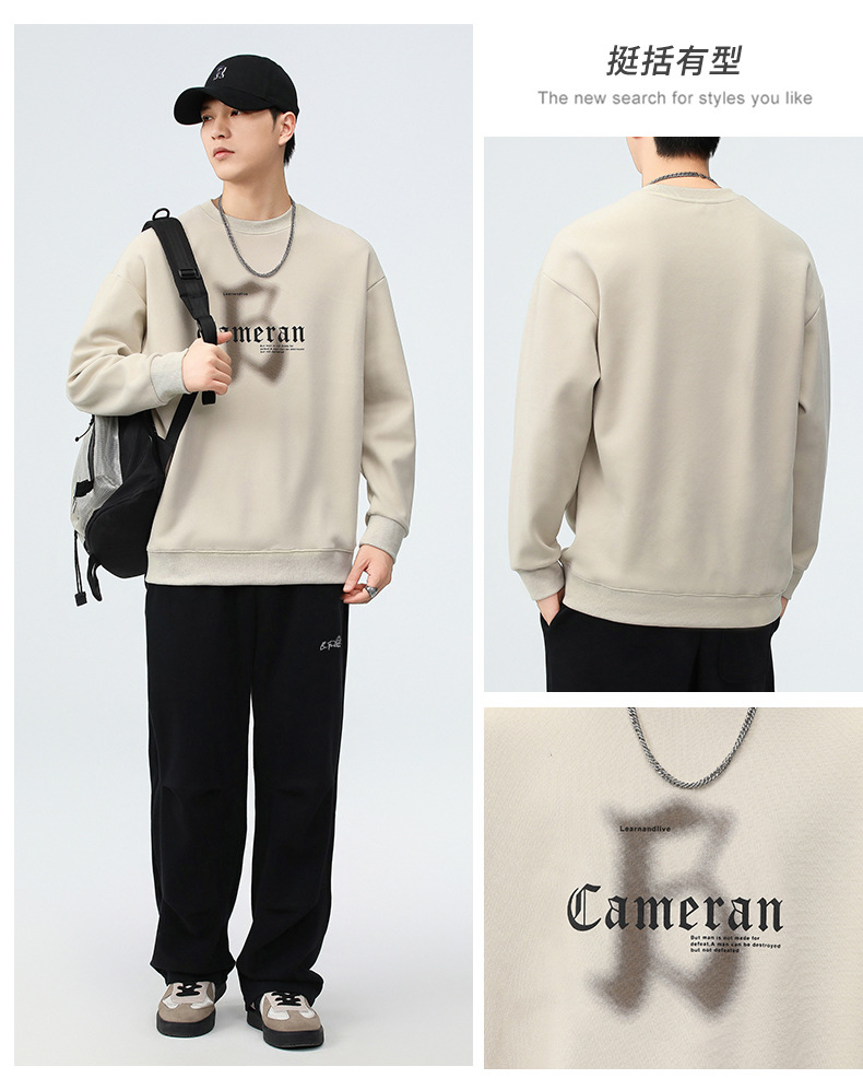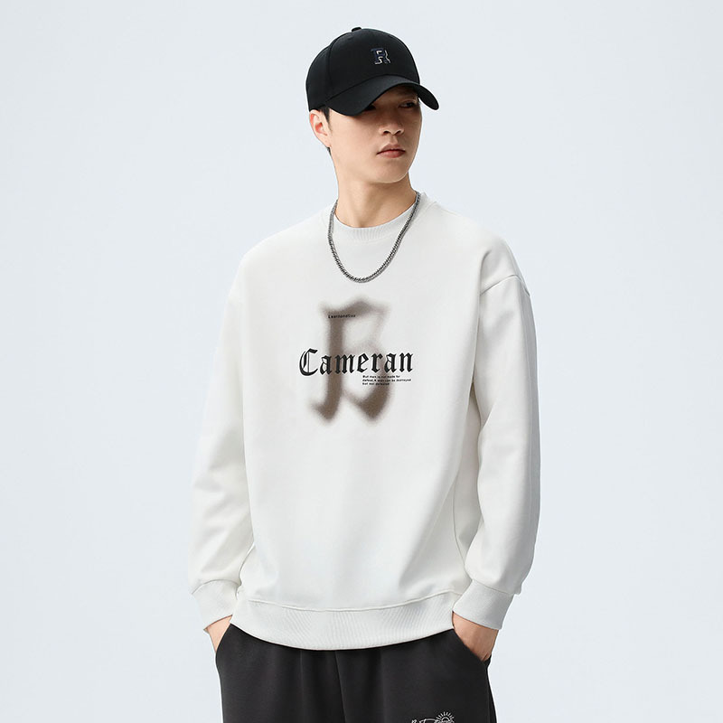 트렌디 브랜드 남성용 스웨트셔츠 봄 가을 루즈핏 라운드넥 긴팔 티셔츠 남성용 2025 신상 스포츠 캐주얼 상의