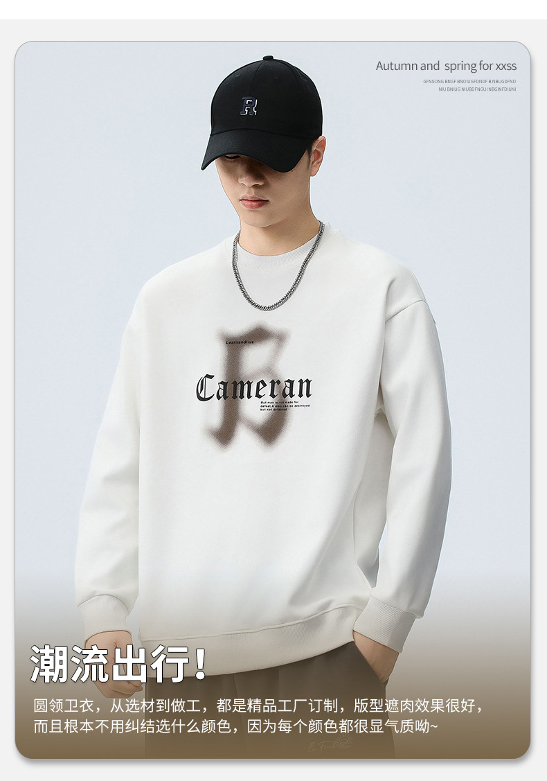 트렌디 브랜드 남성용 스웨트셔츠 봄 가을 루즈핏 라운드넥 긴팔 티셔츠 남성용 2025 신상 스포츠 캐주얼 상의스토어 가기