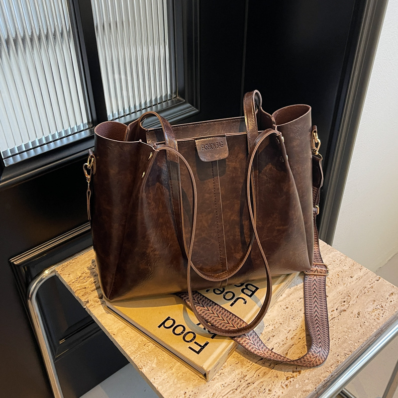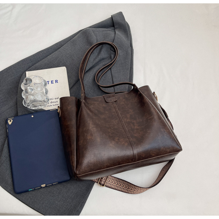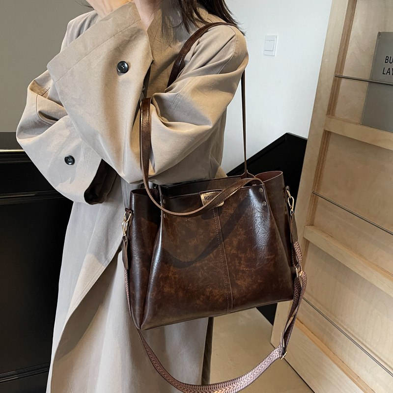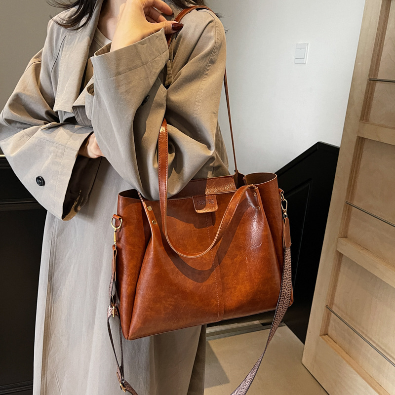 틈새 디자인 대용량 2024 새로운 여성 가을 겨울 한국 스타일 레트로 토트 백 유행 올 매치 캐주얼 심플스토어 가기