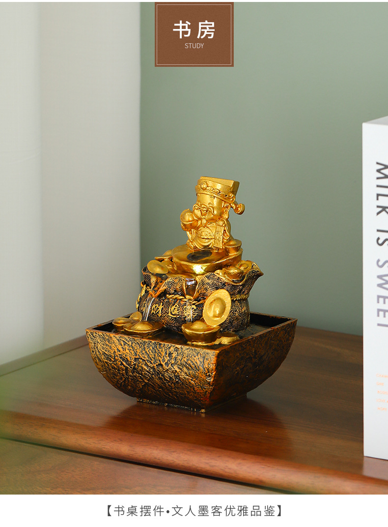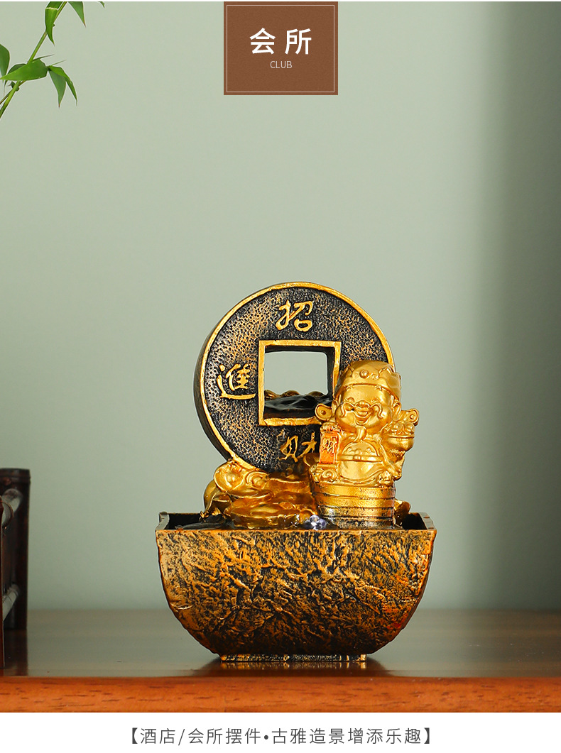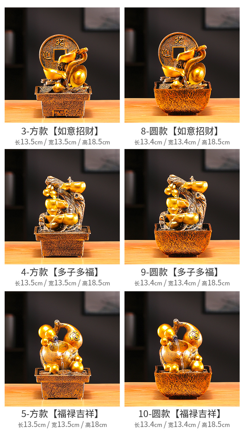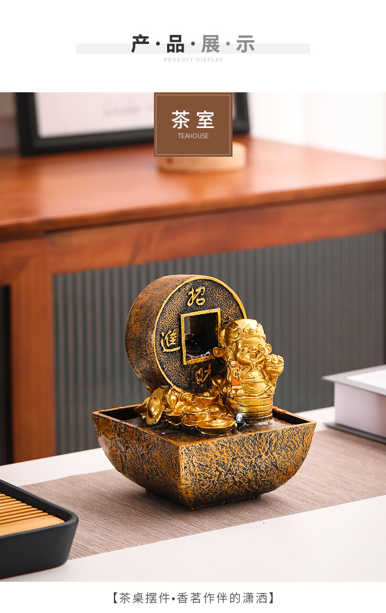 Xintianquan 행운의 흐르는 물 장식품 순환 물 사무실 거실 데스크탑 장식품 프론트 데스크 장식 집들이 선물