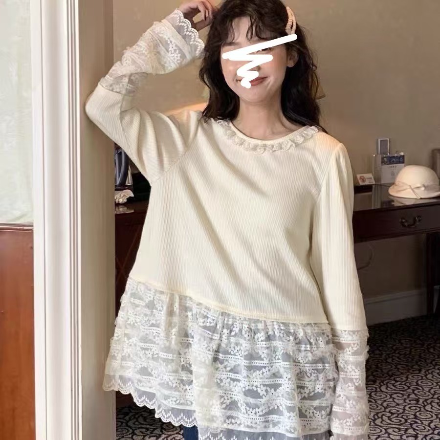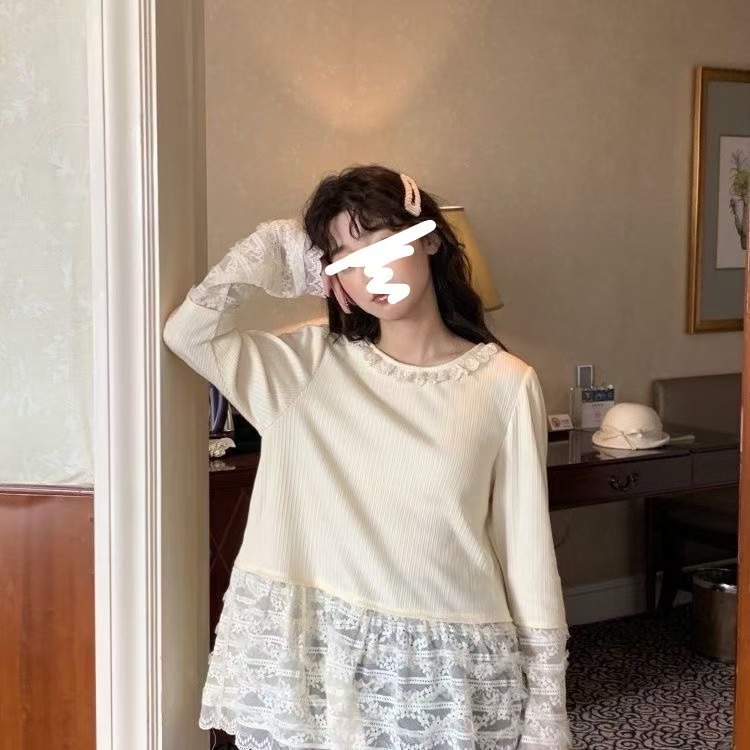달콤한 소녀 레이스베이스 셔츠 여성의 가을과 겨울 내부 긴 소매 틈새 디자인 바느질 머리 꼭대기 착용스토어 가기
