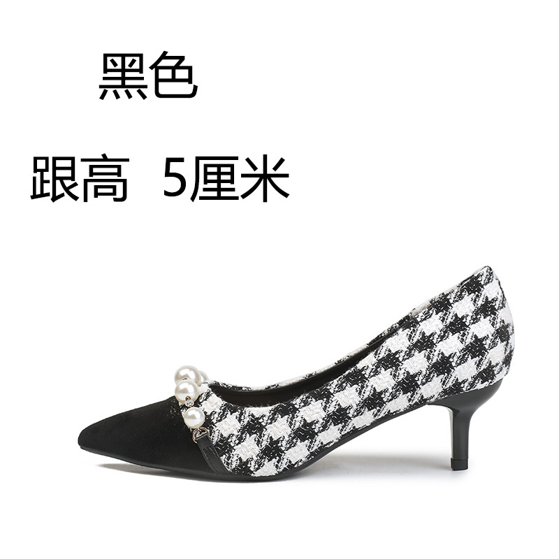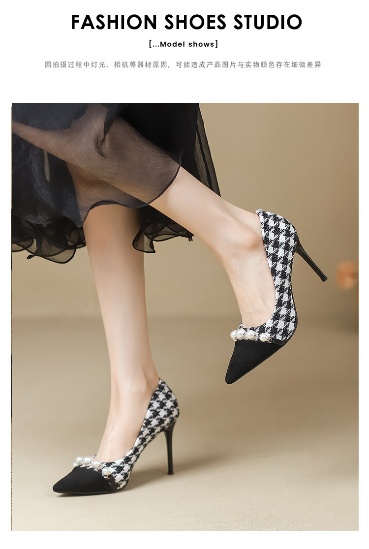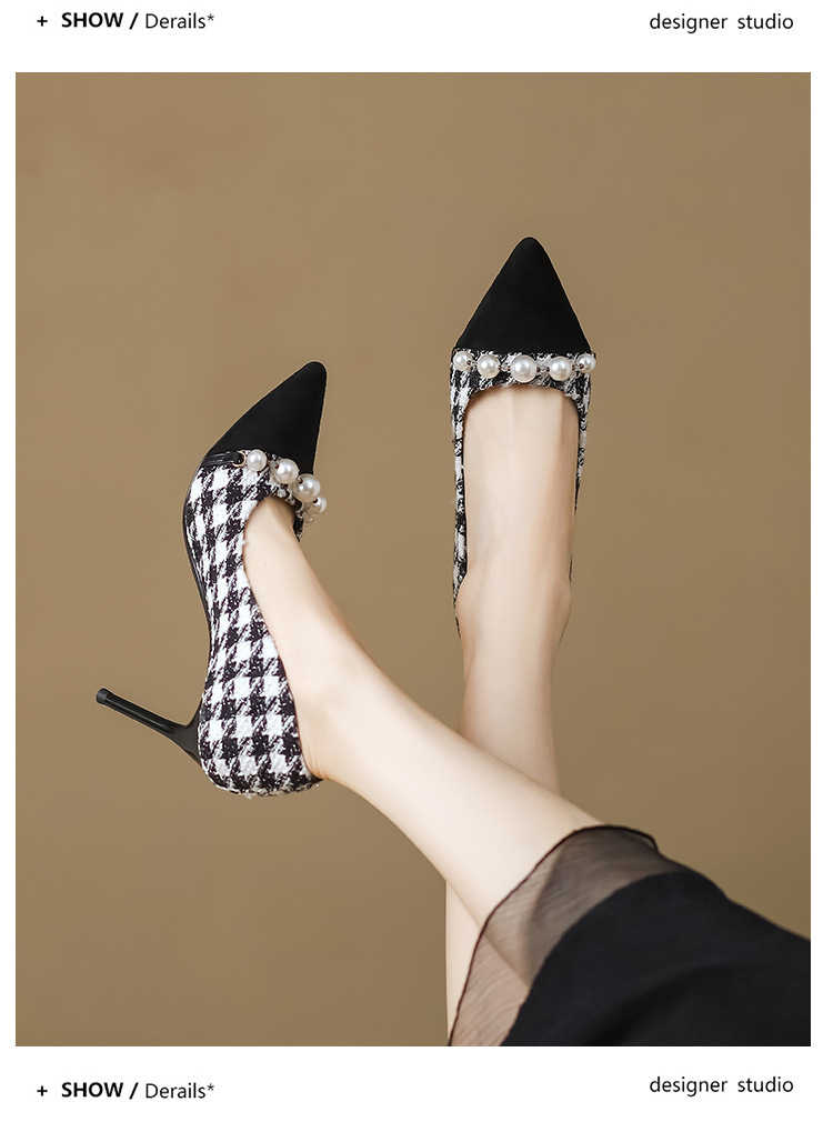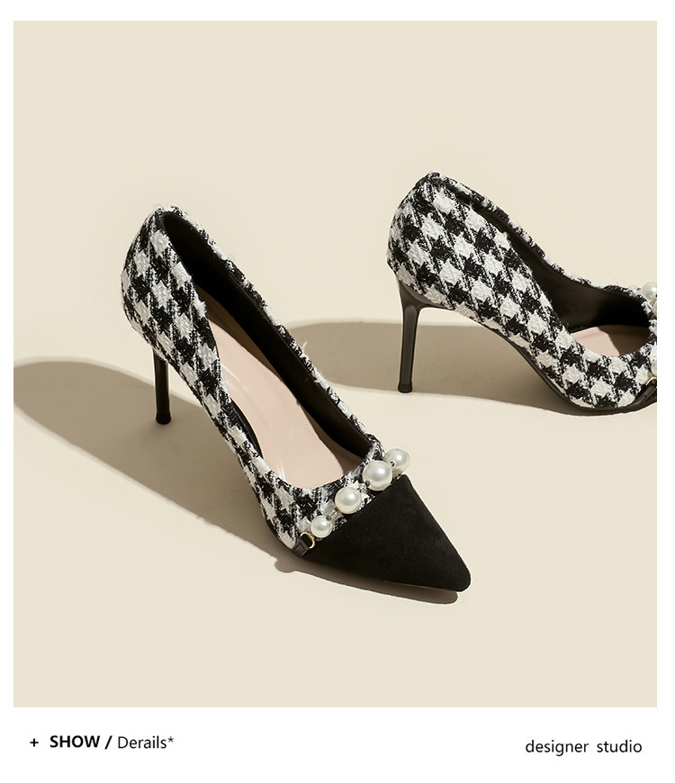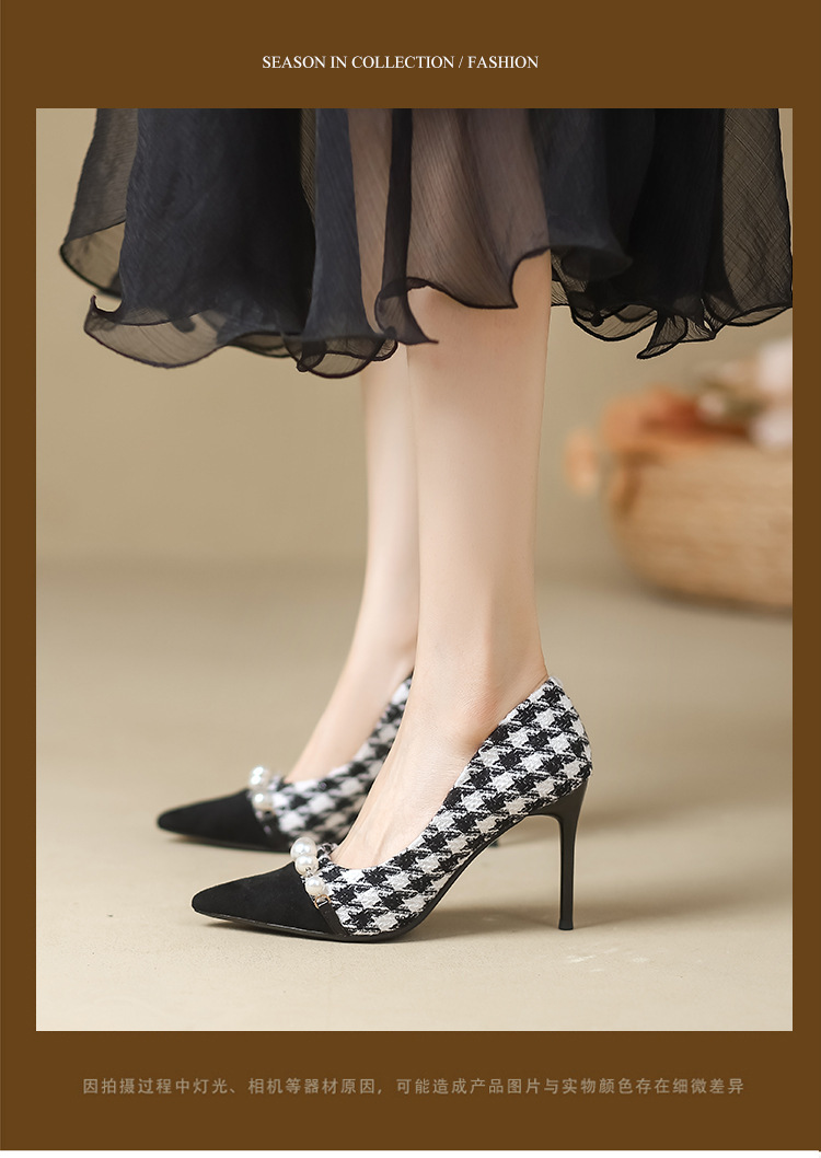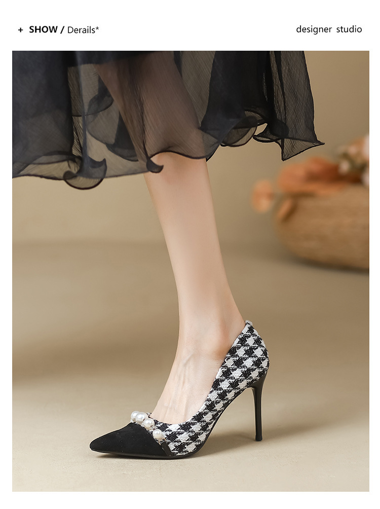 Houndstooth Maomao 하이힐 여자 2024 년 새로운 가을과 겨울 스틸레토 올 매치 전문 우아한 사교계 포인팅 싱글 레이어 신발 여성스토어 가기