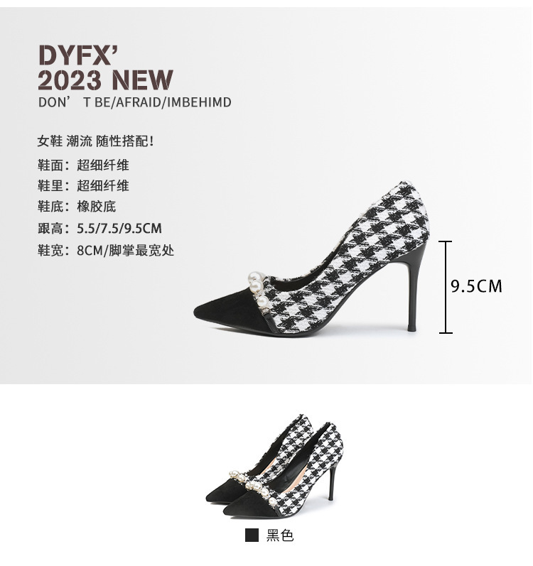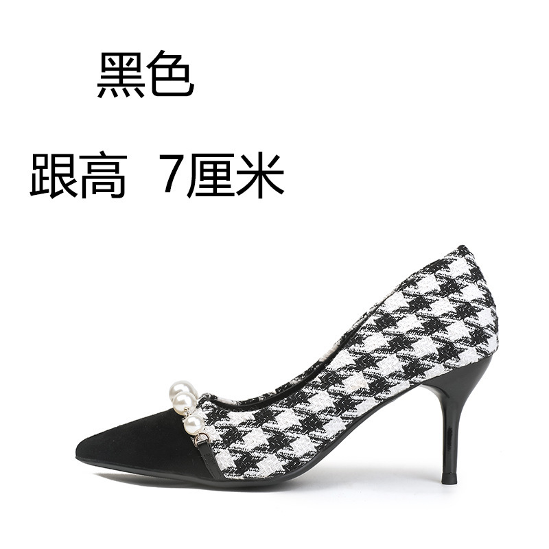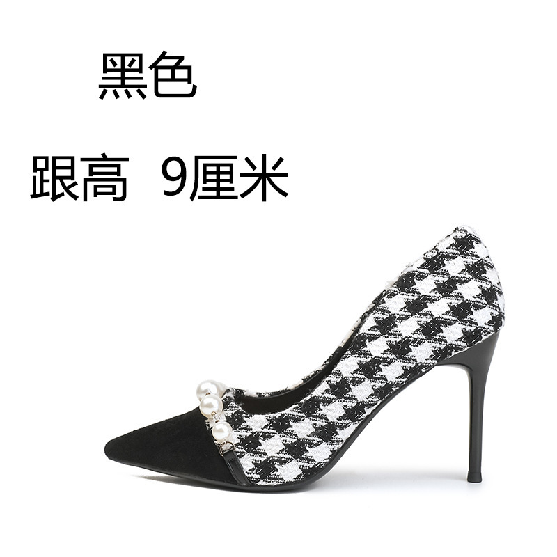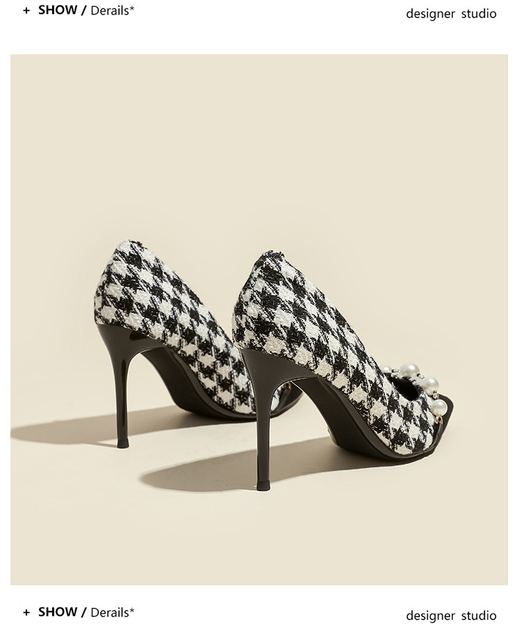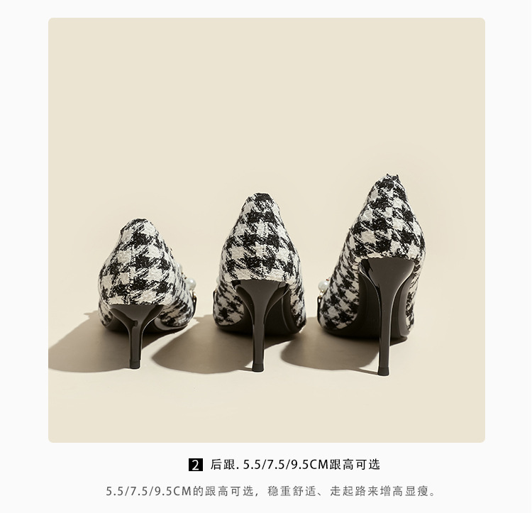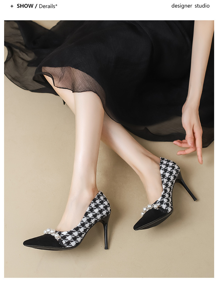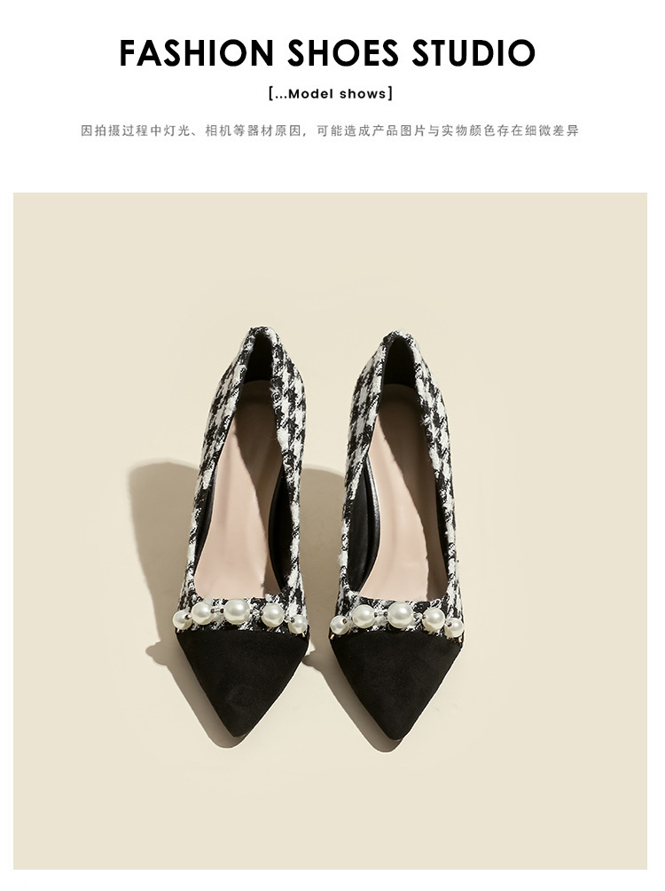 Houndstooth Maomao 하이힐 여자 2024 년 새로운 가을과 겨울 스틸레토 올 매치 전문 우아한 사교계 포인팅 싱글 레이어 신발 여성스토어 가기