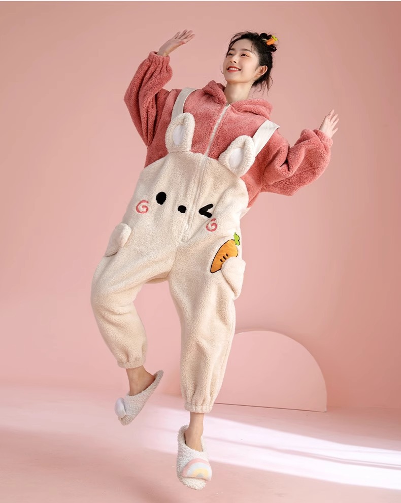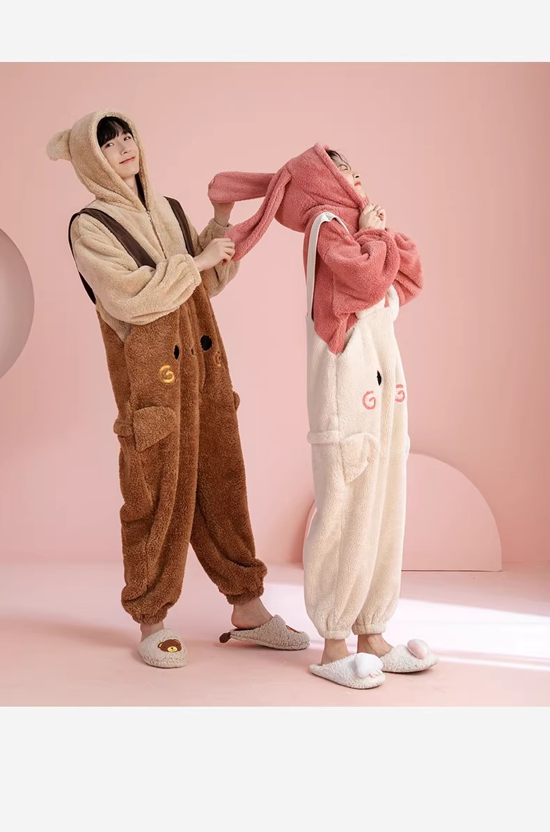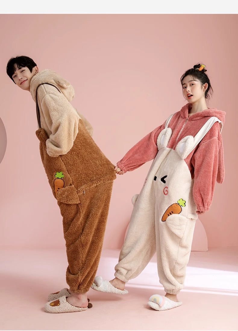 플란넬 커플 잠옷 가을과 겨울 두꺼운 귀여운 산호 양털 홈 옷 여성용 점프 수트 세트 남성용 외복