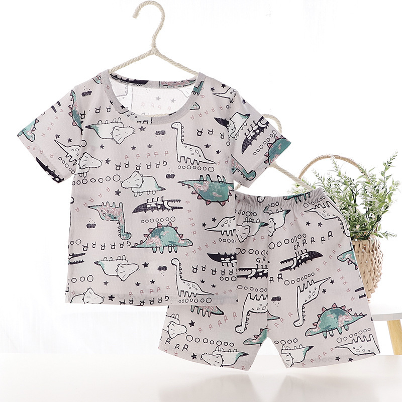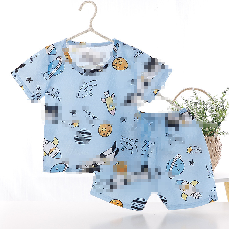 아동용 반팔 반바지 메쉬 세트 홈웨어 남아 여아 만화 순면 에어컨 의류 유아 및 어린이용