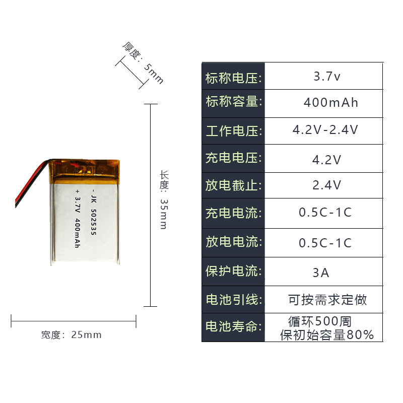 공장 직접 공급 502535 폴리머 리튬 배터리 400mAh 3.7V 산소 측정기 구동 레코더 배터리