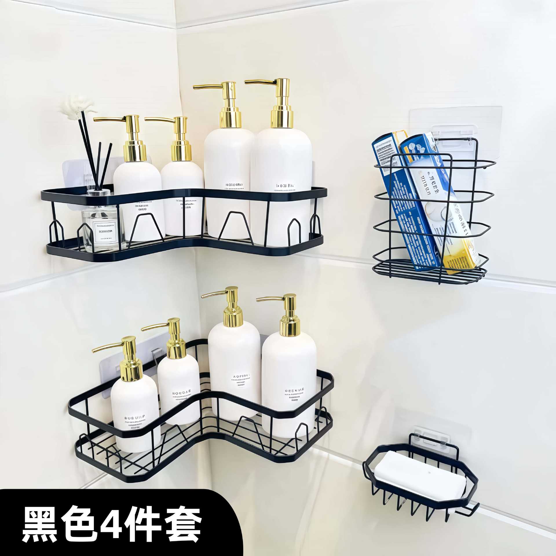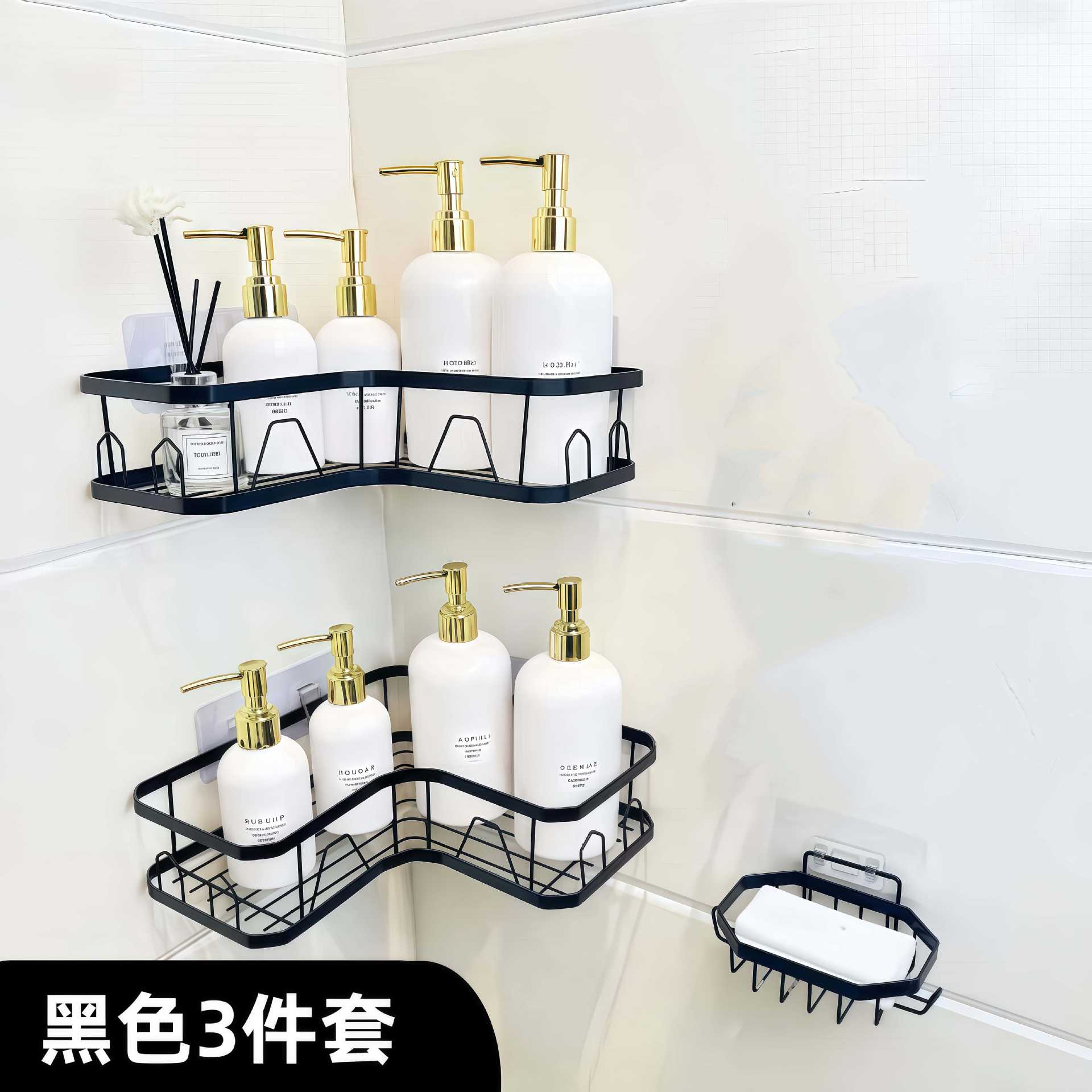 무타공 삼각형 수납선반 욕실 주방 철제 수납선반 수납바구니 화장실 공간절약