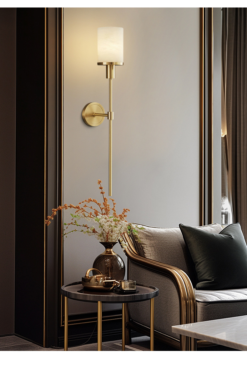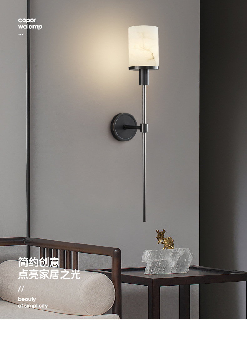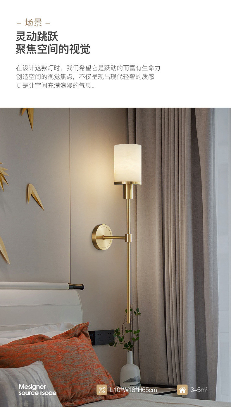 새로운 중국 스타일 모든 구리 천연 대리석 벽 램프 거실 벽 램프 디자인 호텔 홈스테이 연구 침실 램프