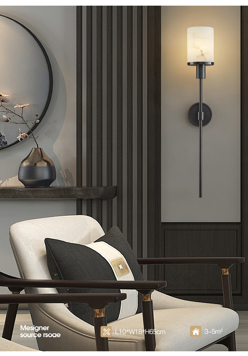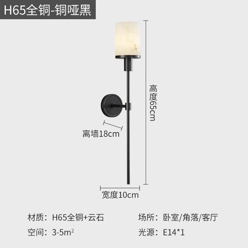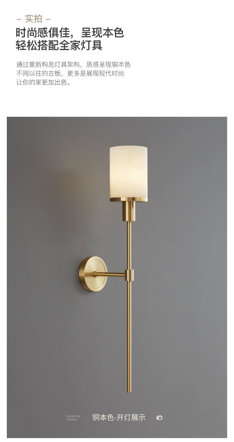 새로운 중국 스타일 모든 구리 천연 대리석 벽 램프 거실 벽 램프 디자인 호텔 홈스테이 연구 침실 램프스토어 가기