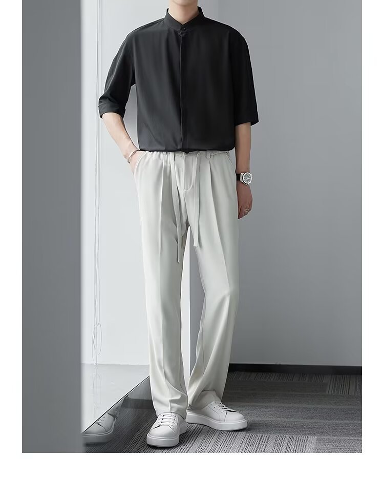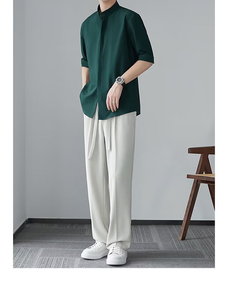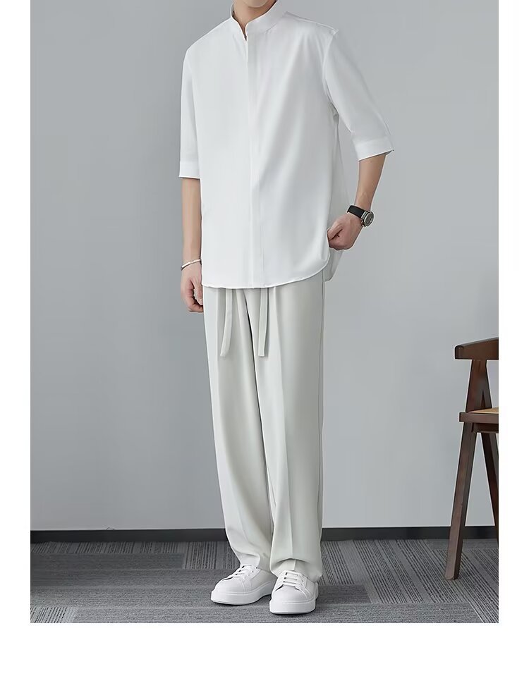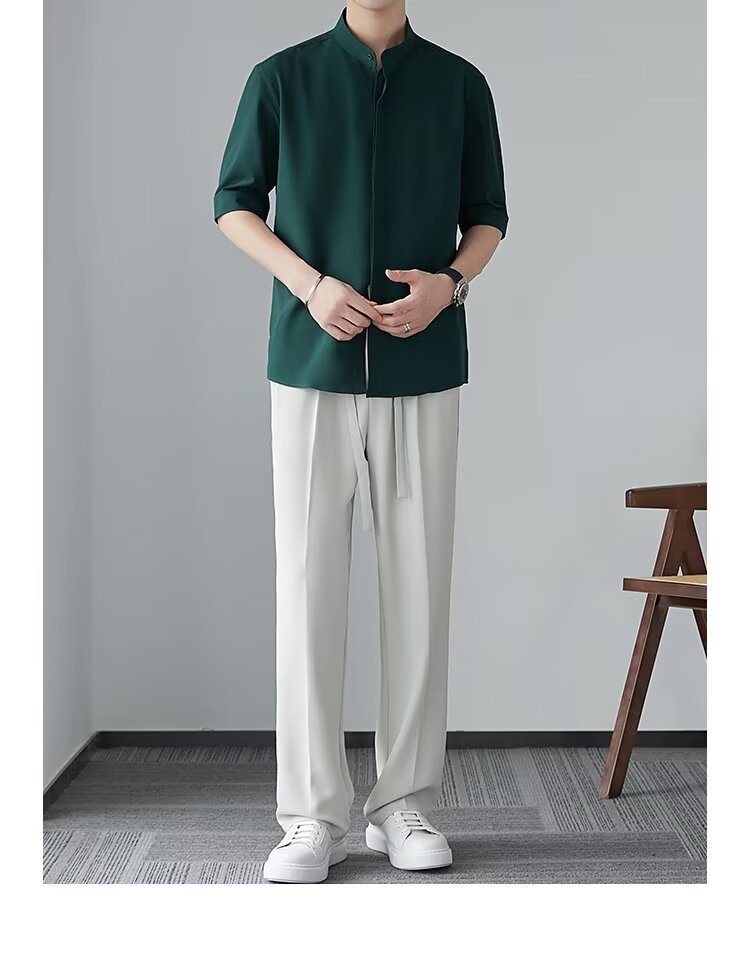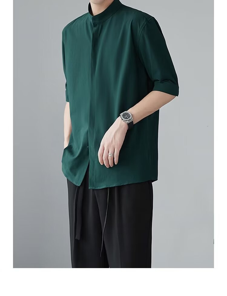 새로운 중국 스타일 수직 칼라 짧은 소매 셔츠 남자의 여름 새로운 틈새 셔츠 고급 아이스 실크 포장 된 중간 소매 셔츠스토어 가기