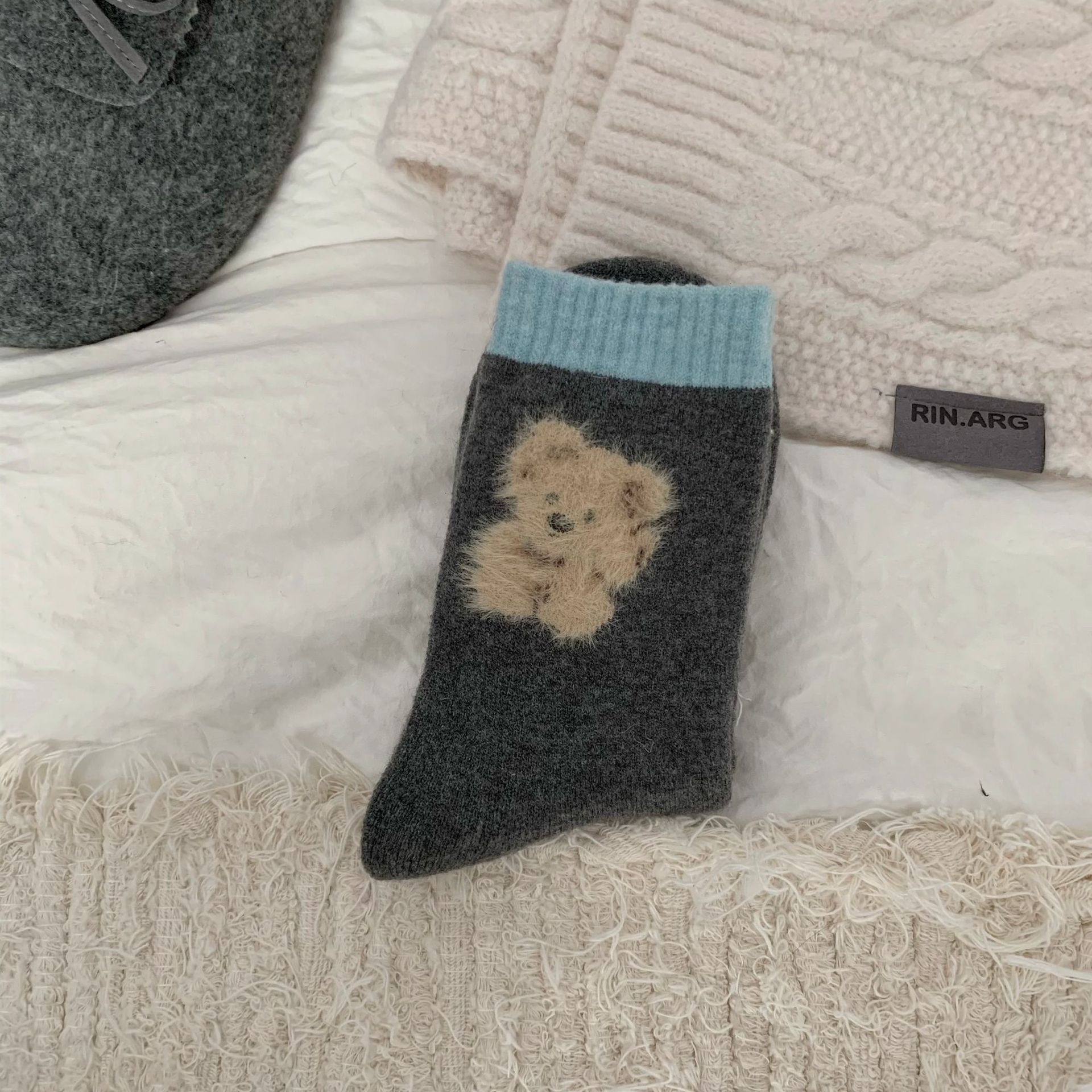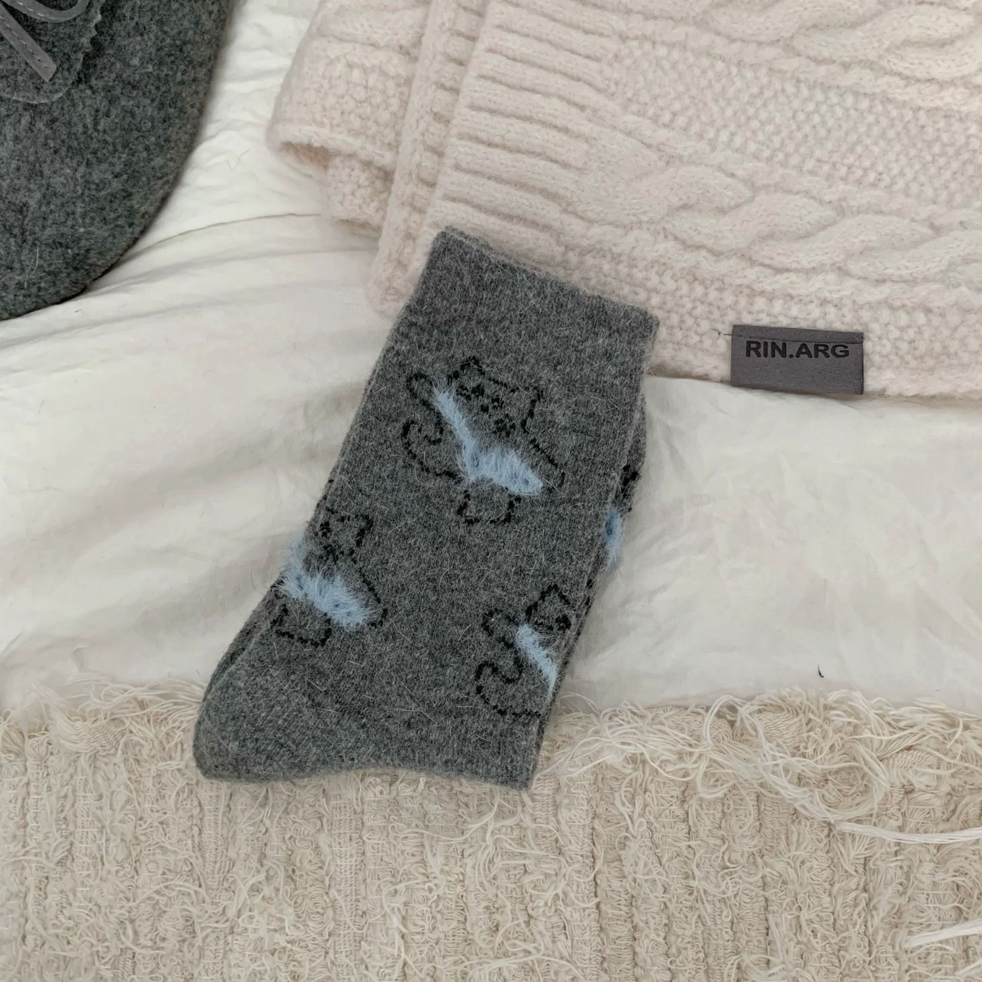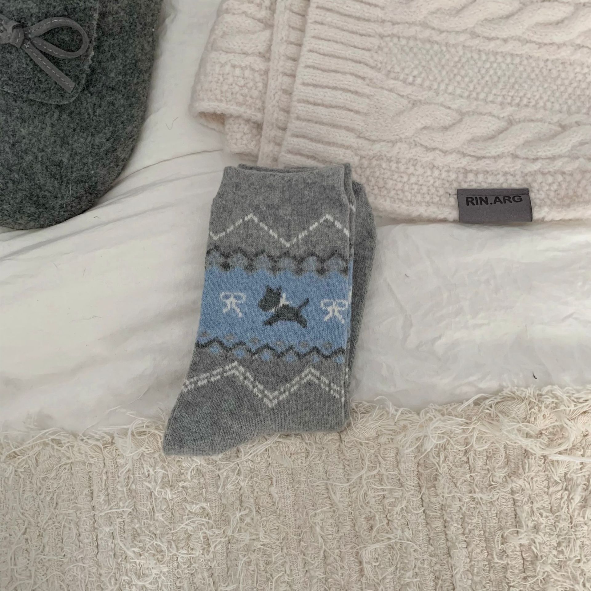 * 회색 파란색 큰 컬렉션 * 작은 빨간색 책은 가을과 겨울 두꺼운 따뜻한 양모 양말 어린이 더미 양말의 조합으로 살고 있습니다.